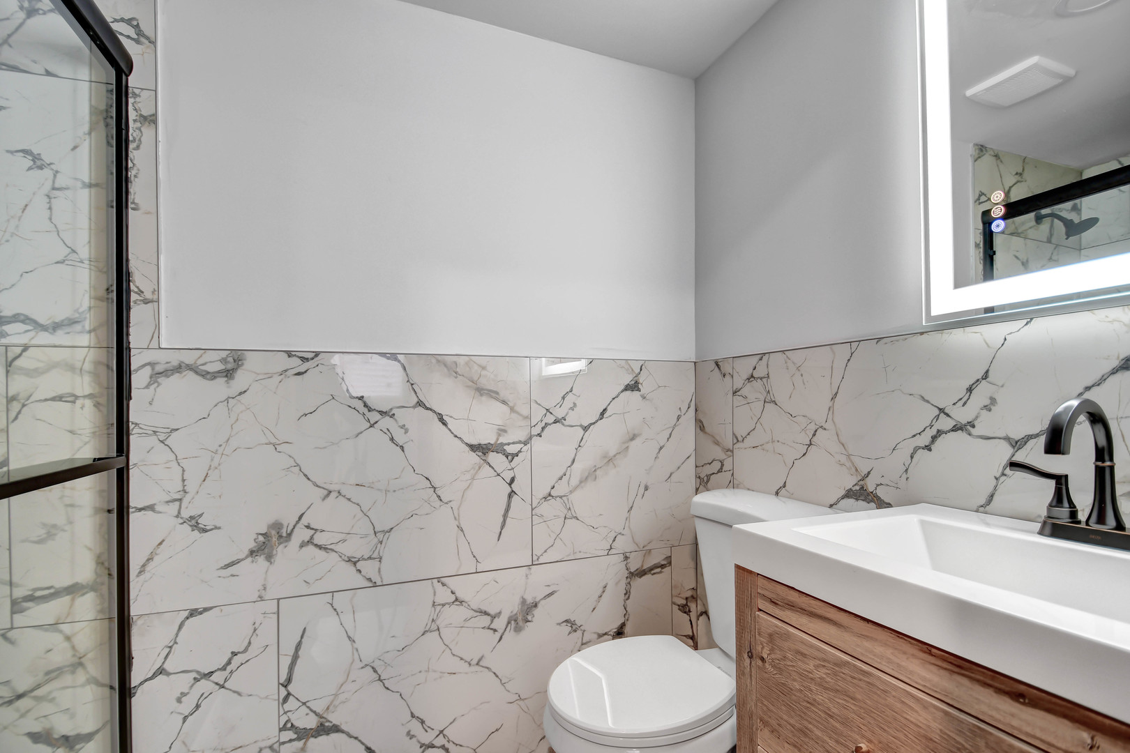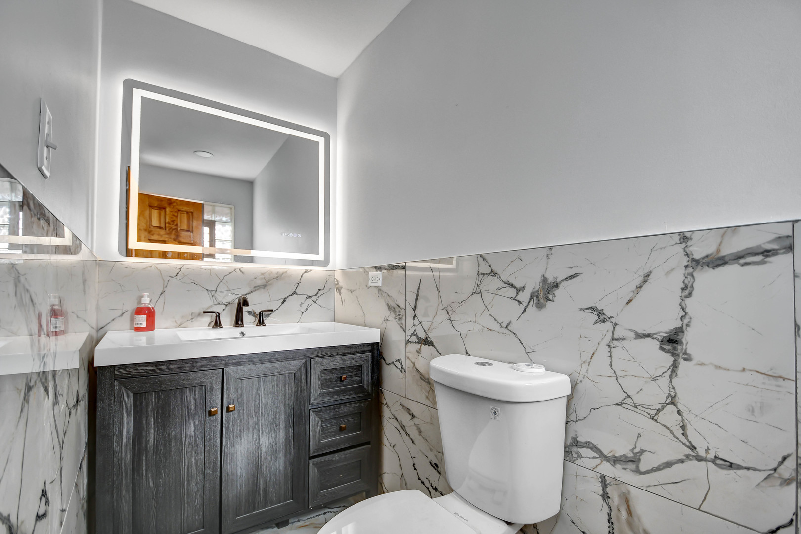 Beautifully practical and thoughtfully designed, this totally renovated, truly move-in-ready solid brick split-level delivers modern style with a flexible layout tailored for today’s lifestyle. Step inside to a bright and open main level showcasing rich hardwood floors, recessed lighting throughout, and a seamless flow between the welcoming living room, kitchen, and family room-ideal for both everyday living and entertaining. The stunning, fully updated kitchen features sleek espresso cabinetry, quartz countertops, modern stainless steel appliances, and a center island with seating, all accented by contemporary pendant lighting. The adjacent family room offers a warm retreat highlighted by an updated fireplace with quartz surround and patio doors leading to an oversized deck, perfect for outdoor entertaining. All bathrooms have been completely renovated with designer marble-inspired porcelain tile, modern vanities, updated fixtures, and spa-like finishes. Upstairs, you’ll find three restful bedrooms, all with hardwood flooring. The lower level provides a spacious recreation room along with a utility room, offering additional flexible living space. With tasteful renovations, durable brick construction, and versatile living areas, this home delivers comfort, style, and value in one exceptional package. Easy to see and ready to impress-schedule your private showing before it’s gone.