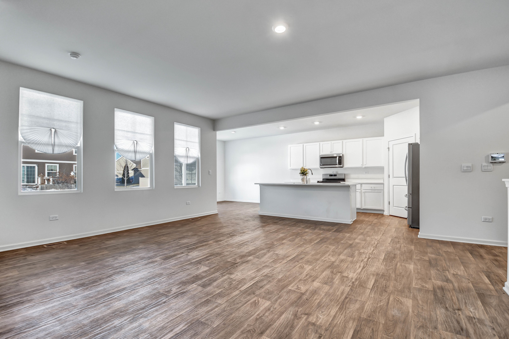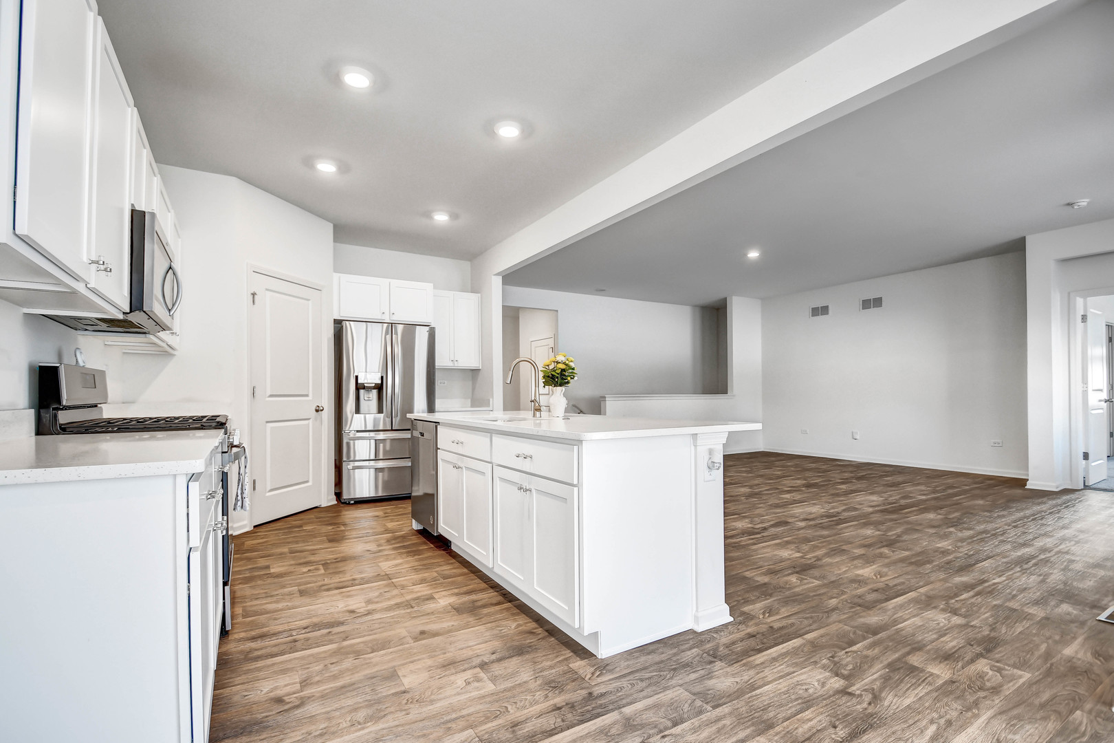 Latest trends and modern design come together beautifully in this 2023-built single-family ranch with basement, located in the highly desirable Springbank community. This popular Fairfield model offers a gracious open-concept floor plan with 9-foot ceilings and recessed lighting throughout. A welcoming gallery-style entry foyer features durable luxury vinyl plank flooring that extends seamlessly through the living room and kitchen. The spacious and relaxing living room flows effortlessly into the thoughtfully designed kitchen showcasing modern white cabinetry, quartz countertops, a large center island that doubles as a breakfast bar, walk-in pantry, complete stainless steel appliance package, and an adjacent formal dining area, all well lit with natural light from large windows & a rear patio door that opens to a covered concrete patio, perfect for outdoor entertaining and relaxing. The home offers four bedrooms, or a flexible three-bedroom plus office or den layout, all with plush carpeting, including a private master bedroom wing with ensuite bath and walk-in closet. Main-level laundry area adds ease to daily living and includes washer and dryer. The expansive three-quarter basement with one-quarter crawl space and large well windows provides excellent storage or a blank canvas for future finishing ideas. Modern technology upgrades include a smart home system with Wi-Fi and Bluetooth connectivity. Additional highlights include a three-car garage with EV charger and an energy-efficient tankless water heater. Enjoy a vibrant community offering a recreation water park center included in the affordable monthly maintenance fee, highly regarded District 202 schools, and a convenient location just minutes from shopping, dining, and fitness centers. Easy to see and even easier to own so schedule your viewing & make it yours!
