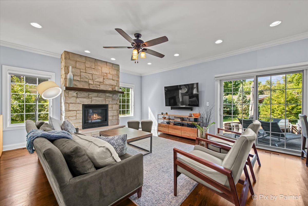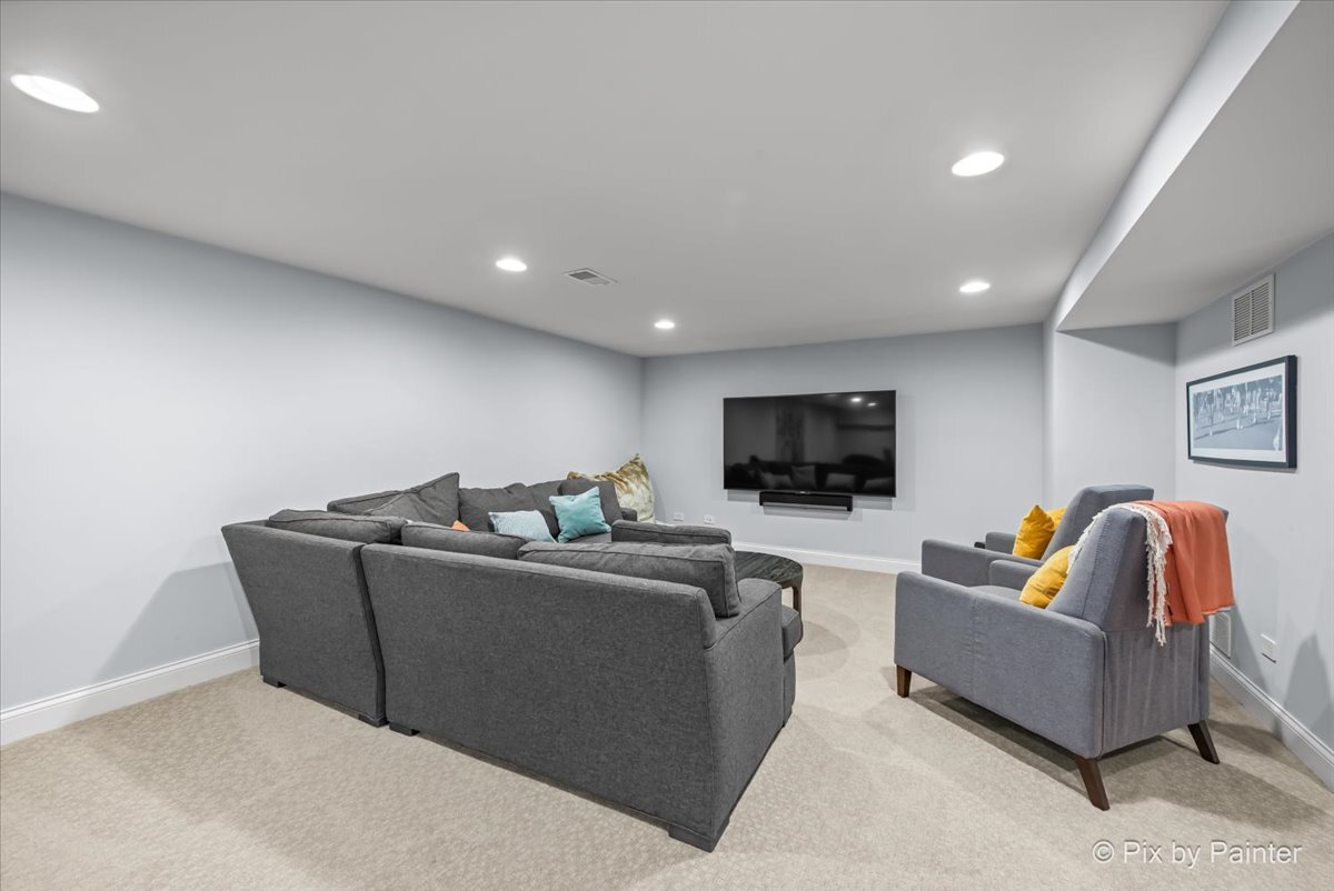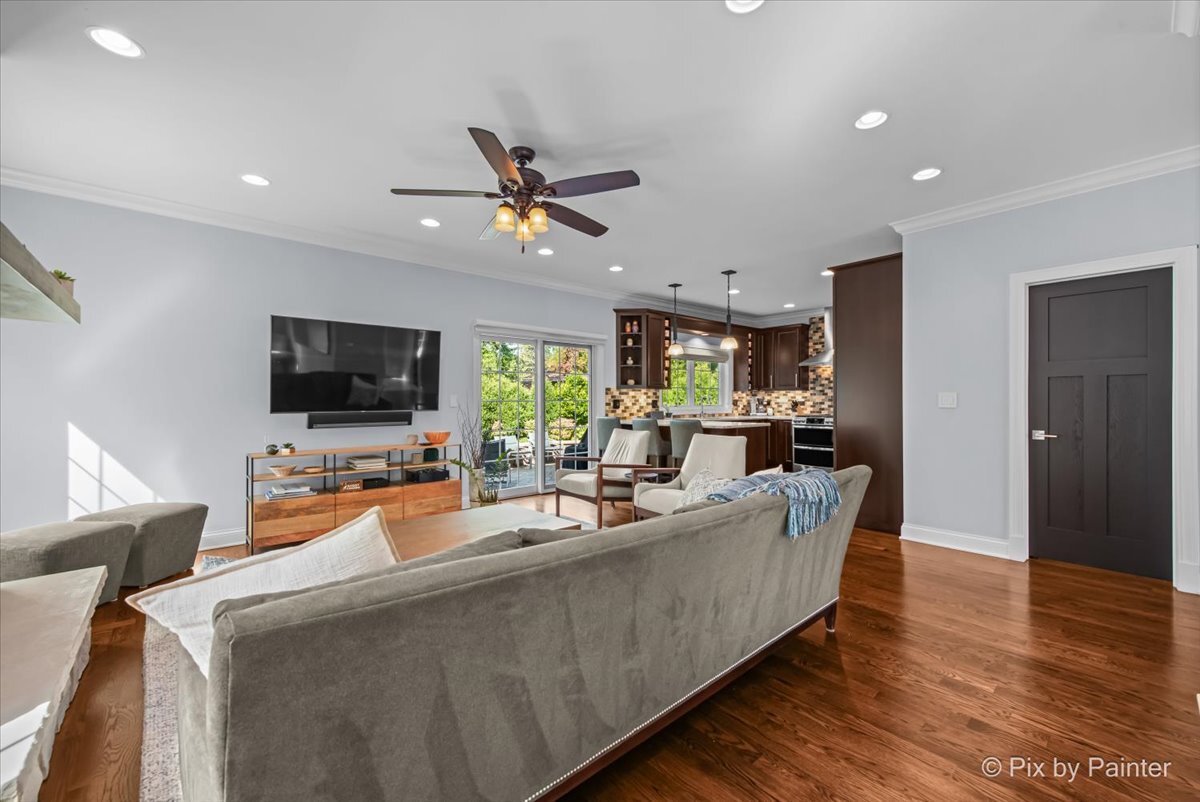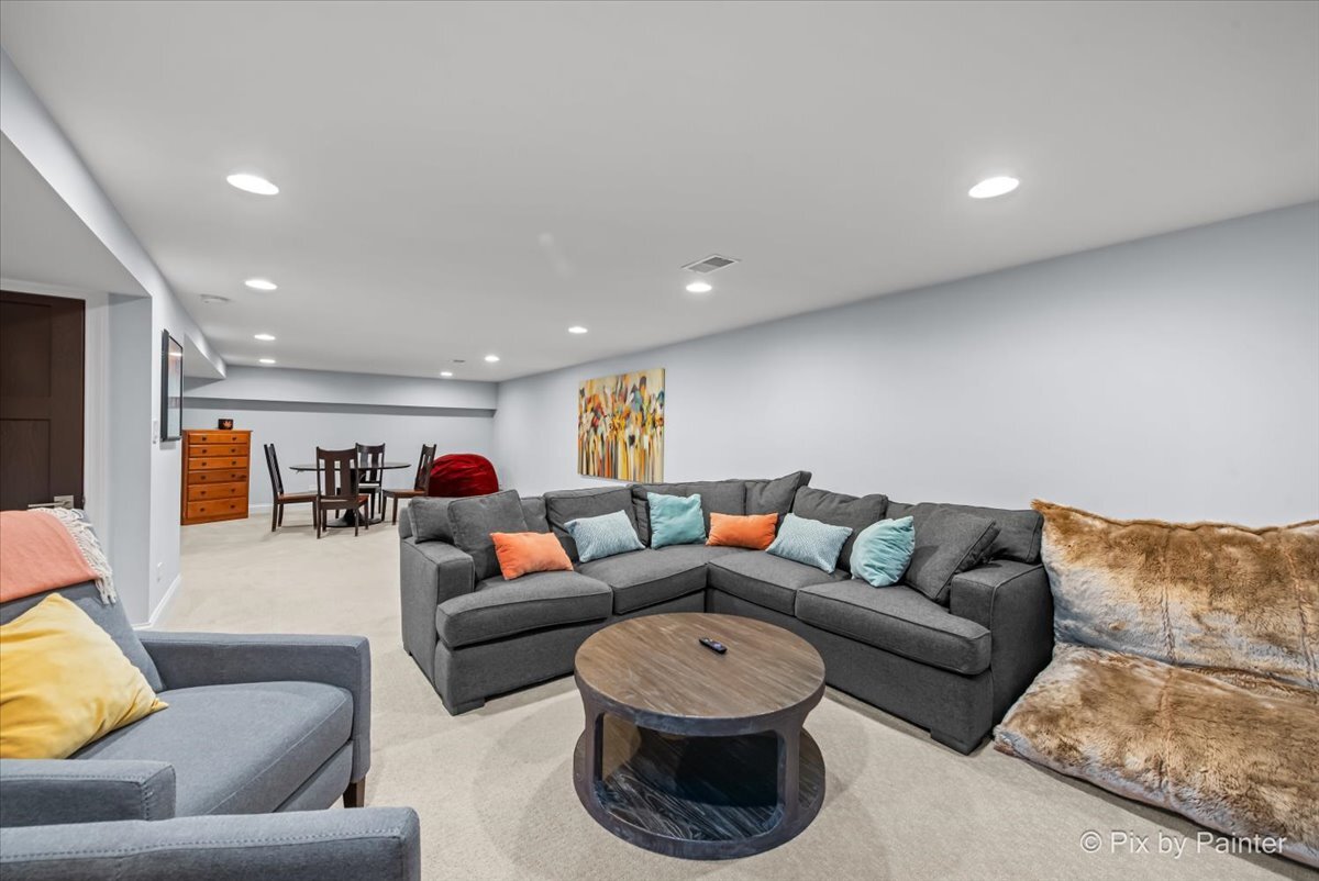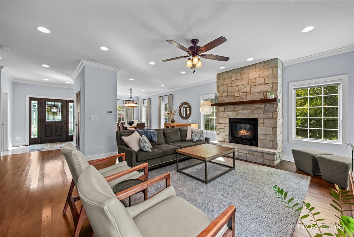 Welcome to 1696 Highland Ave, where refined design meets effortless living. Completely reimagined and REBUILT in 2015 (foundation excluded), this exceptional home offers an open-concept layout with 4 bedrooms, 4.1 bathrooms, a fully finished basement, EV-ready 2-car garage, brick paver patio, and numerous upgrades. The main level features light-filled living and dining areas that connect to the kitchen. Anchored by an elegant fireplace, the living room invites relaxation, while the dining room easily accommodates large gatherings. The kitchen showcases dark cabinetry, neutral countertops, a single-basin stainless sink, Culligan reverse osmosis system, and a full suite of stainless appliances. A well-placed powder room adds convenience, and a flexible room nearby can serve as an office or reading room. Gleaming hardwood floors span the main and upper levels, providing warmth and continuity. Upstairs, the primary suite impresses with double closets and an en suite spa-like bathroom featuring dual sinks, an oversized shower, and a separate whirlpool tub. One secondary bedroom includes a private full bathroom, while two other bedrooms share a dual-access bathroom. A laundry closet completes this level for everyday ease. The finished basement extends the living space with soft carpeting, a versatile bonus room, a full bathroom with steam shower, and a large utility room for storage. Outdoors, enjoy the EV-ready garage with an additional gravel parking space. Entertaining is effortless with a garage refrigerator, detached grill, two outdoor Sonos speakers, Unilock brick paver patio with fire pit, and included furniture. Additional highlights include professionally designed closets, room-darkening blinds upstairs, solid wood interior doors, and professional landscaping with perennials and sideline Arborvitae trees for extra privacy. NEW UPDATES include: steam shower in basement (2025), kitchen refrigerator (2025), concrete driveway sealed (2024), water heater with instant hot water (2024), sump pump with backup battery (2024), air ducts cleaned (2024), water softener (2023), Culligan reverse osmosis system (2023), concrete driveway replaced (2022), microwave (approx. 2021), dishwasher (approx. 2020), range with double oven (approx. 2019), two smart thermostats (within last 5 yrs), garbage disposal (within last 5 yrs). Every improvement has been executed by professionals for quality and longevity. Located near highly rated schools, including Glenbrook North High School, I-94 and I-294, running trails, golf courses, and retail, this residence combines thoughtful design, meticulous upkeep, and lasting comfort!