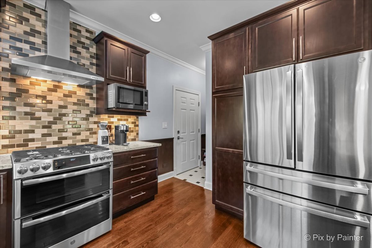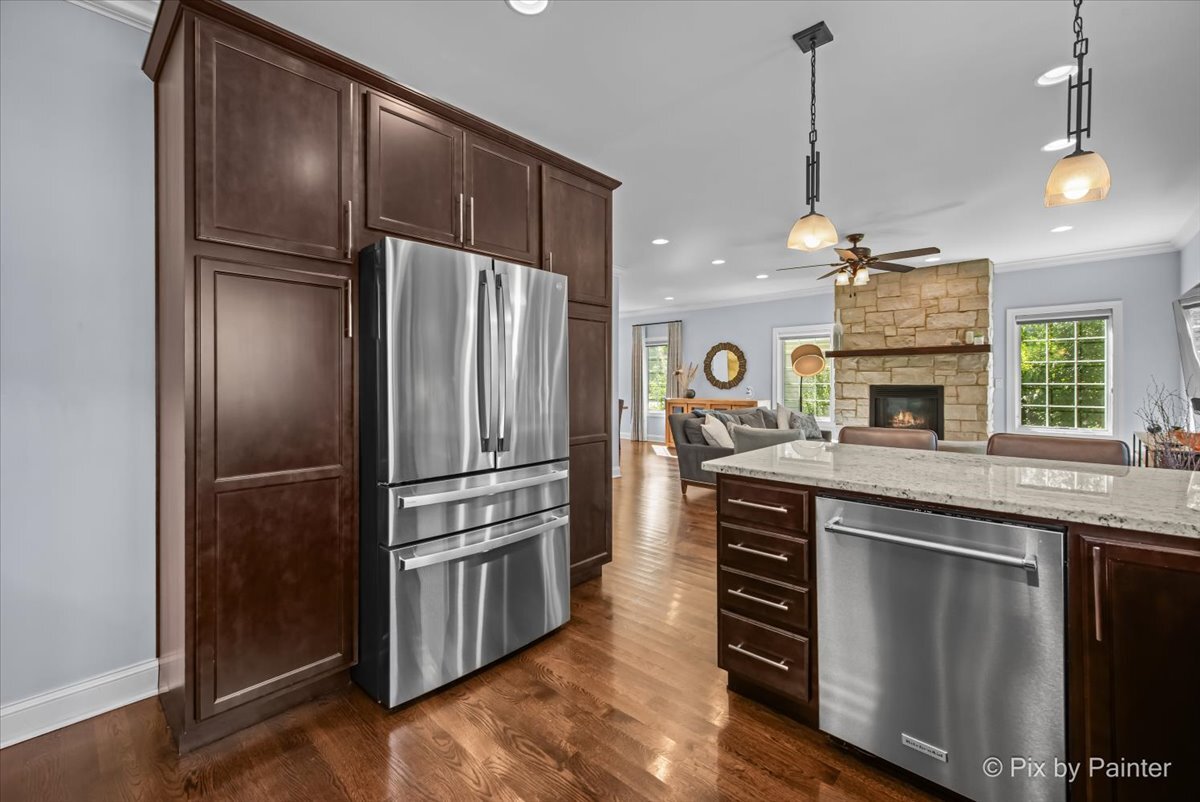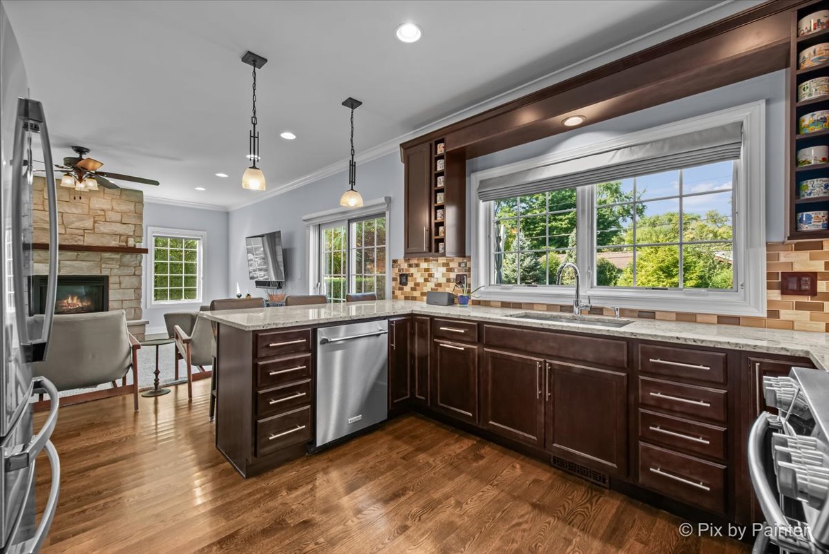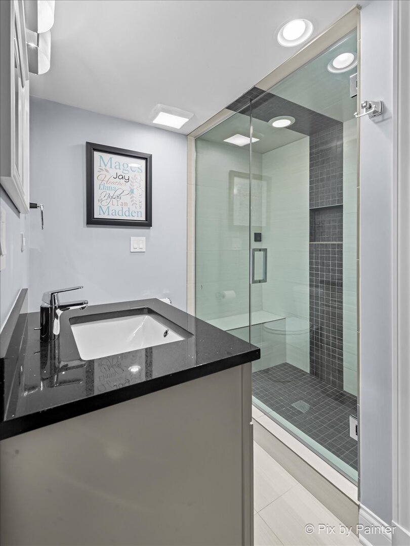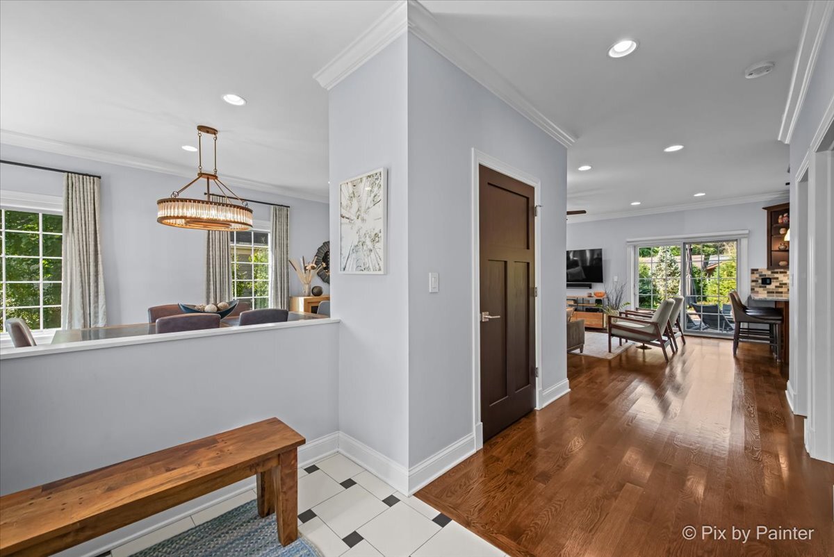 Welcome to 1696 Highland Ave, where refined design meets effortless living. Completely reimagined and REBUILT in 2015 (foundation excluded), this exceptional home offers an open-concept layout with 4 bedrooms, 4.1 bathrooms, a fully finished basement, EV-ready 2-car garage, brick paver patio, and numerous upgrades. The main level features light-filled living and dining areas that connect to the kitchen. Anchored by an elegant fireplace, the living room invites relaxation, while the dining room easily accommodates large gatherings. The kitchen showcases dark cabinetry, neutral countertops, a single-basin stainless sink, Culligan reverse osmosis system, and a full suite of stainless appliances. A well-placed powder room adds convenience, and a flexible room nearby can serve as an office or reading room. Gleaming hardwood floors span the main and upper levels, providing warmth and continuity. Upstairs, the primary suite impresses with double closets and an en suite spa-like bathroom featuring dual sinks, an oversized shower, and a separate whirlpool tub. One secondary bedroom includes a private full bathroom, while two other bedrooms share a dual-access bathroom. A laundry closet completes this level for everyday ease. The finished basement extends the living space with soft carpeting, a versatile bonus room, a full bathroom with steam shower, and a large utility room for storage. Outdoors, enjoy the EV-ready garage with an additional gravel parking space. Entertaining is effortless with a garage refrigerator, detached grill, two outdoor Sonos speakers, Unilock brick paver patio with fire pit, and included furniture. Additional highlights include professionally designed closets, room-darkening blinds upstairs, solid wood interior doors, and professional landscaping with perennials and sideline Arborvitae trees for extra privacy. NEW UPDATES include: steam shower in basement (2025), kitchen refrigerator (2025), concrete driveway sealed (2024), water heater with instant hot water (2024), sump pump with backup battery (2024), air ducts cleaned (2024), water softener (2023), Culligan reverse osmosis system (2023), concrete driveway replaced (2022), microwave (approx. 2021), dishwasher (approx. 2020), range with double oven (approx. 2019), two smart thermostats (within last 5 yrs), garbage disposal (within last 5 yrs). Every improvement has been executed by professionals for quality and longevity. Located near highly rated schools, including Glenbrook North High School, I-94 and I-294, running trails, golf courses, and retail, this residence combines thoughtful design, meticulous upkeep, and lasting comfort!