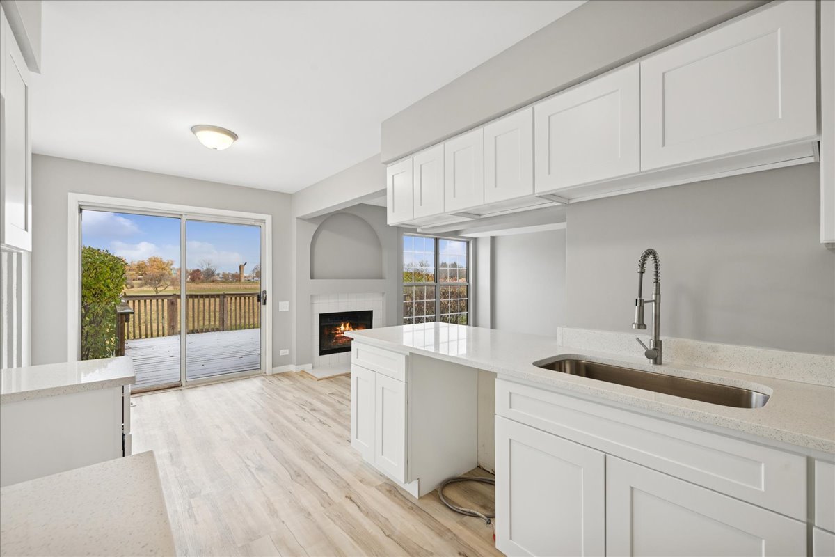 Fantastic 3-bedroom, 1.1-bath townhome nestled on a premium lot in the sought-after College Green subdivision. Completely remodeled light/bright kitchen featuring white cabinetry, new sink/faucet, and solid tops. The dining area, featuring a sliding door that opens to the large deck, is perfect for grilling and outdoor entertaining. Freshly painted interior, new carpeting, and new flooring throughout! The spacious, window-filled living room features a fireplace and offers gorgeous views of the open space and prairie. Both the main floor bath and the upper full bath have been newly renovated, featuring new vanities, mirrors, and fixtures. The second floor features three spacious bedrooms with ample closet space and a convenient laundry area. The attached garage offers handy added storage space. Conveniently located near Rt. 20, Randall Road, and Elgin Community College, this townhome is a gem. Beautifully nestled location backing to a walking path and open space!
