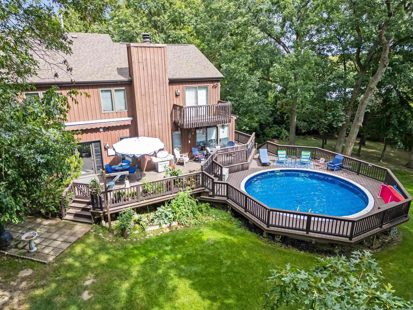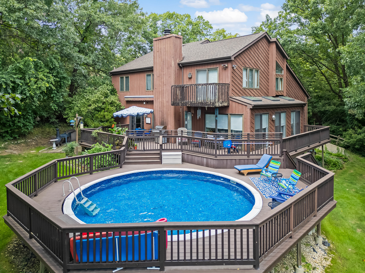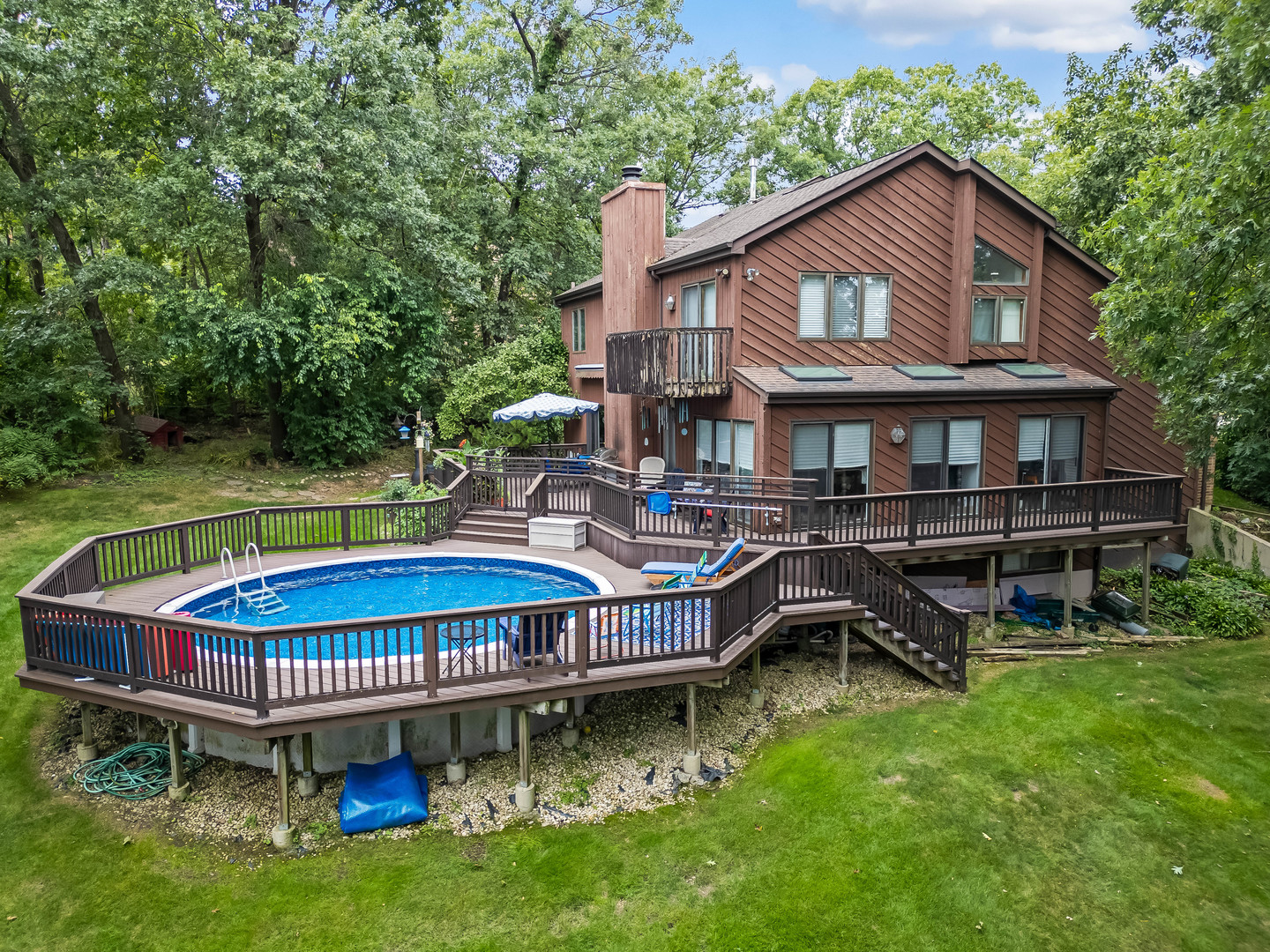 Tucked away on a beautiful, private wooded lot this four-bedroom, 2.5-bath Burr Ridge home offers the perfect blend of privacy and convenience. The inviting floor plan features a spacious living room with vaulted ceiling. The family room with fireplace opens to the kitchen and an expansive four-season sunroom overlooking the serene backyard. Step outside to your own private retreat – a newer trek deck and above ground swimming pool for entertaining. The three-car attached garage provides plenty of space for storage. The home’s full basement with additional flexibility for recreation is partially finished with a huge storage room. Some of the features include: six panel doors, hardwood floors, a newer architectural roof and a 100′ fenced dog run. This property combines the privacy of a wooded setting, the beauty of mature trees and lush landscaping while still being just minutes from I-55, I-294, and Route 83 for easy access to downtown Chicago and convenient shopping. An amazing opportunity to make this your forever home in beautiful Burr Ridge! This well cared for home is being conveyed “as is”.
