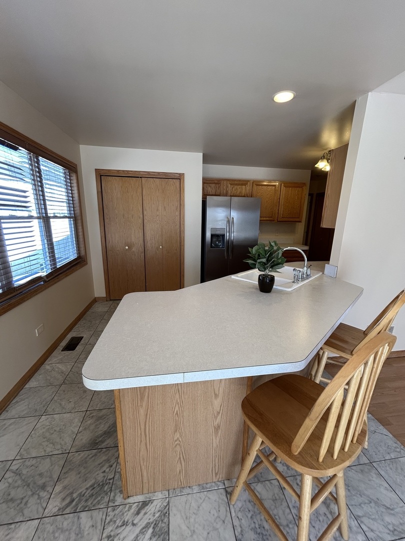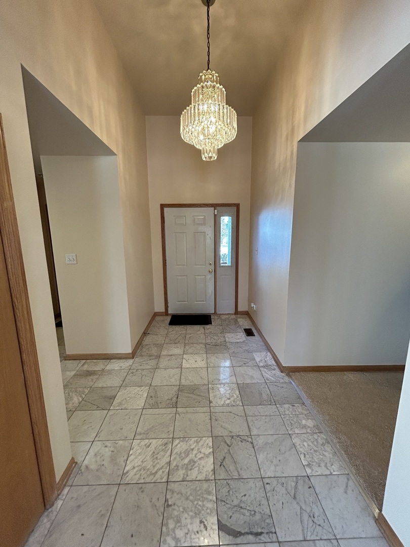 Charming 3 bedroom 2 bath ranch on a quiet cul-de-sac is move in ready. Recent updates include fresh paint, new carpeting throughout and new stainless appliances (warranty included), and central unit installed in 2023. Galley kitchen has marble floors, a large pantry, and opens to attached dining room and living room that features cathedral ceiling and cozy fireplace. There is a sliding door off the dining room that opens to a 48 x 16 deck, and big back yard ideal for entertaining. Other features include a spacious master bedroom with tray ceiling, full private bath with jacuzzi tub, and walk in closet. The partially finished basement offers even more space, with a family room, office area, and a bonus room that could be playroom or exercise area. This home has it all. Comfort, style and convenience. Don’t wait to schedule your showing. Owner is a Licensed Realtor in Illinois.