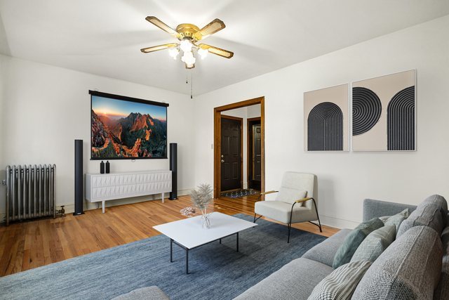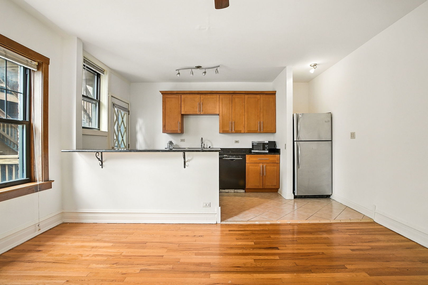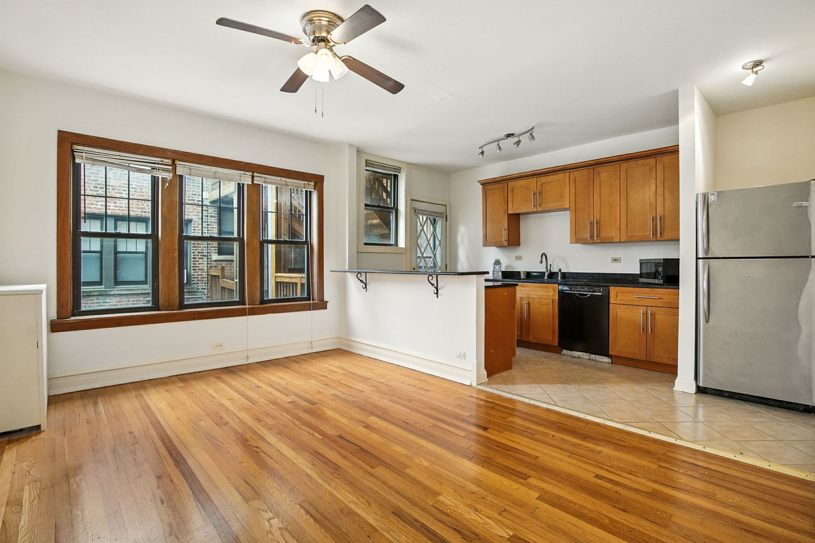 Welcome to this beautiful, updated 2-bedroom, 1-bathroom condo, ideally located just steps from the University of Chicago Campus. The layout is both functional and inviting, featuring stunning wood floors that flow throughout the entire unit. As you enter, you are greeted with a spacious living room that provides the perfect space for relaxation. The kitchen boasts of granite counters and an open layout, making it a delightful spot for cooking and socializing. Home has been freshly painted throughout, and the condo is move-in ready! Common laundry room available in the basement. Enjoy the tranquil courtyard as you walk up to the entry. Whether you are looking for an investment in a cozy home to occupy, this is the place for you! Call today to view!
