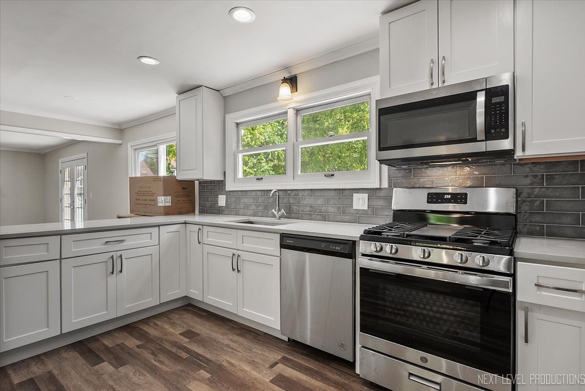 You don’t have to settle! This home has the updates you have been waiting for! Freshly painted and reimagined with too many updates to mention. New carpet, new windows, new LVP floors. Updated kitchen with 42-inch cabinets, soft close drawers, pull out shelving, quartz tops and brand new stainless-steel appliances, new faucet, new lighting and multiple pantry closet options. Gorgeous master bathroom with new dual raised vanities, widespread faucets, illuminating mirror, gorgeous walk-in shower with custom shower door, new lighting, new tile, new vanity top, and new toilet. Hall bath features new tile, new dual raised vanities, new widespread faucet, new lighting, and new tile shower with built in niche and new shower door. Great corner lot, with deck and patio, sprinkler system close to school, park, restaurants, and shopping. All this plus a finished basement with a full bathroom!