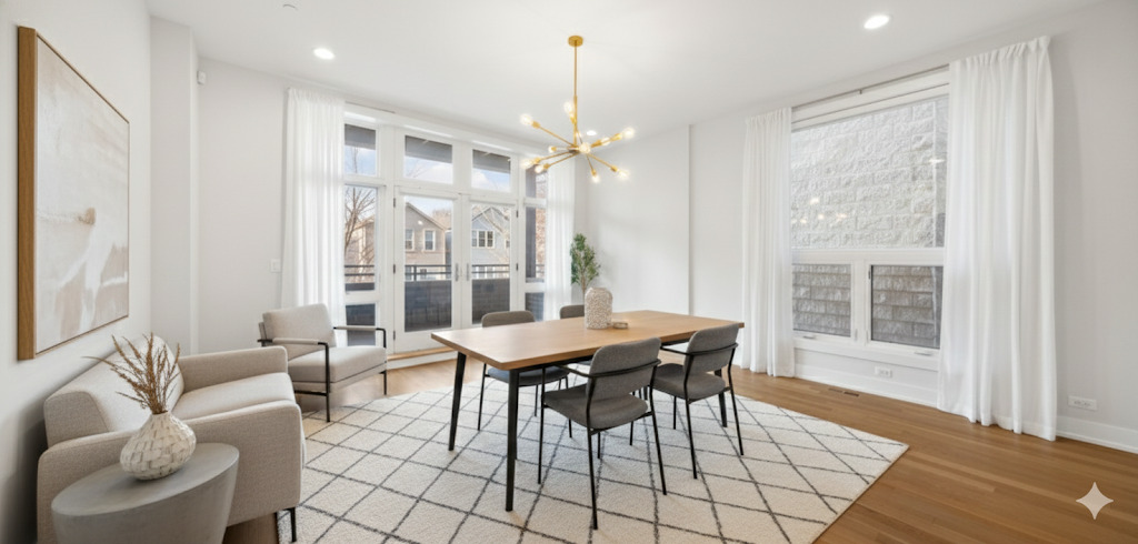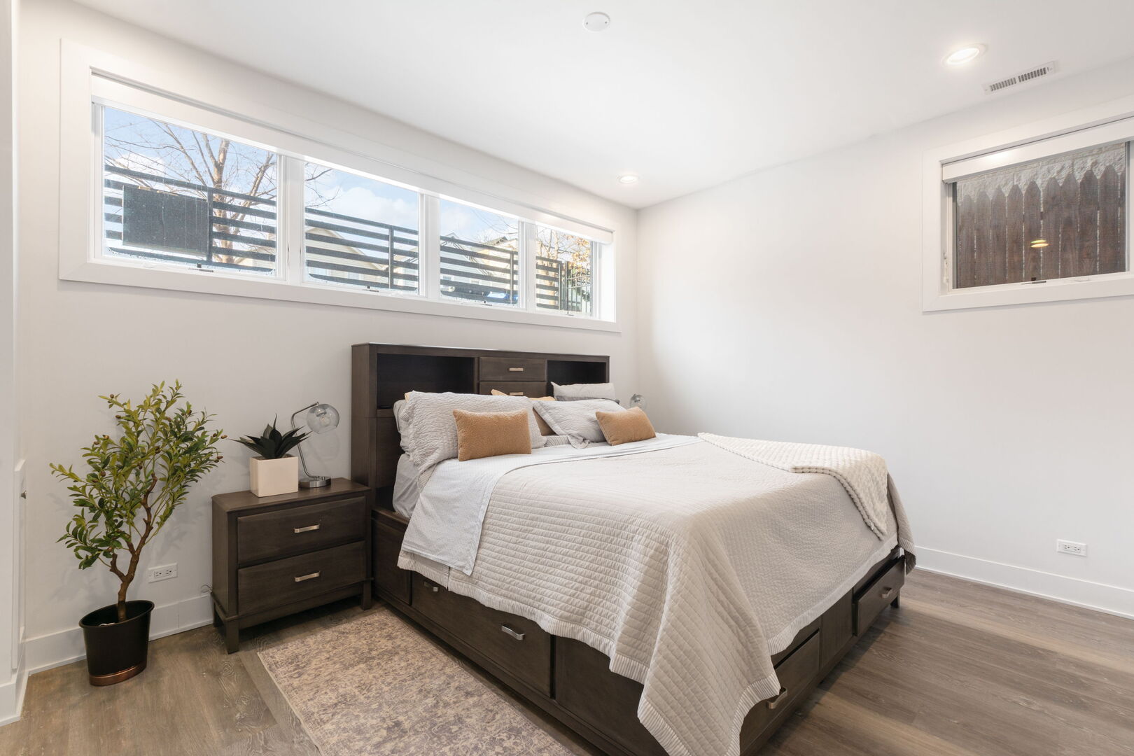 Believe you really can have it all. This stunning 2021 newer construction duplex down lives like a single family home and has been very lightly lived in. Enjoy three private outdoor spaces and an ideal 2,000 sq ft layout with a full entertaining level above and a quiet, cozy sleeping level below-all within a all owners allbrick building. The main level features a bright white kitchen with stainless steel appliances, opening to a front dining or formal living area with its own private balcony. A spacious rear family room offers an electric fireplace, custom builtins, and direct access to the back grilling deck with awning-the perfect setup for hosting. A stylish half bath and generous coat closet complete this inviting floor. Downstairs, retreat to a luxury primary suite with a walk in closet and a hotel inspired bath. Two additional large bedrooms-equal in size-offer full closets, and the convenience of sidebyside laundry is right where you need it. Additional highlights include electric blinds on the main level and primary suite, under stair storage, and one included parking space (northernmost), with easy street parking for guests. Delightful Surprise: A massive 3 car garage rooftop-a blank canvas ready for your outdoor oasis, garden, or entertainment vision. All of this sits on what may be one of the sweetest blocks in Pilsen, just steps from a park with a playground and green space, plus quick access to the highway and 18th Street.