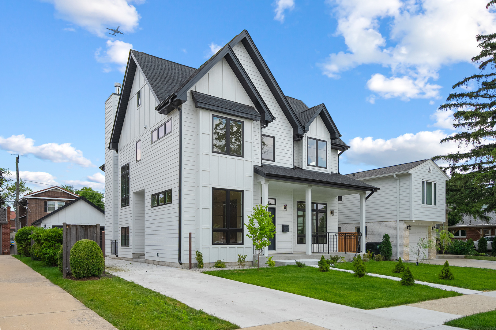 Construction complete and the result is stunning! Introducing, expertly crafted new construction SFH in the best Park Ridge school district. Fully functional floor plan featuring 5 specious bedrooms, 4 full bathrooms and one half bath. Main level with 10′ ceilings, beautiful light hardwood floors, and large windows bring lots of natural light. Chef quality kitchen featuring professional grade appliances, huge island with countertop and bar seating, modern open upper shelving with under cabinet lighting, pass through butler pantry with wet bar and wine fridge and pantry closet. Specious family room with contemporary fireplace, mudroom. Cozy master suite features walk-in closet, and inspiring master bath with full body spray steam shower with rainshower head, freestanding soaking tub, two sinks with quartz countertops, and heated flooring. Three an additional bedrooms with ensuite baths and hall storage closet. Convenient laundry room, with side-by-side washer/dryer, cabinetry and sink complete the level. Finished basement includes recreation room with full wet bar, guest bedrooms, ensuite bath, and second laundry room, wine cellar, bathroom with sauna. Thoughtful extras inc smart thermostat, custom built-out closets, skylights, mudroom, and 2HVAC systems. Fully enclosed yard with landscaping and new sod and detached two-car. Side driveway. Stunning, top quality new construction home by experienced developer. This is truly beautiful home… don’t miss the opportunity to call it your own! 50 x 132 lot in a great neighborhood of Park Ridge! Excellent location with easy access to 90, 294, Metra and CTA blue line. Top rated schools and beautifully kept tree lined streets.