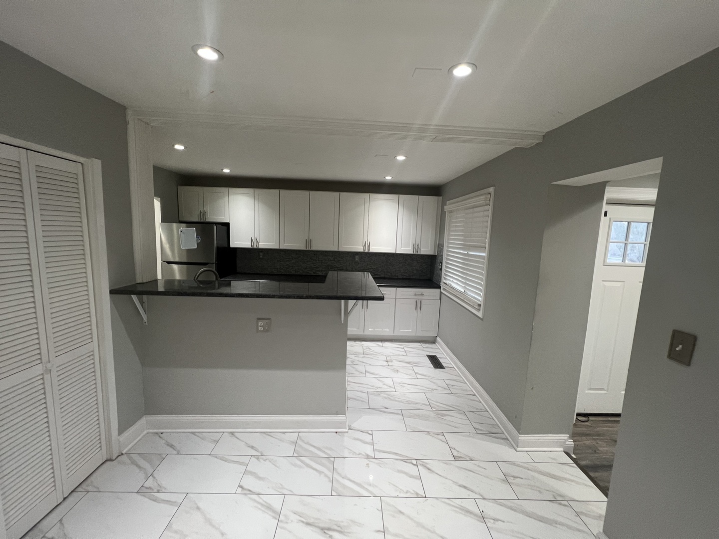 Welcome to this charming, ranch offering modern finishes and effortless living. Step inside to a bright and inviting open-concept living space featuring recessed lighting, neutral paint, and stylish wood-look flooring throughout. The spacious living room flows seamlessly into the updated kitchen, perfect for entertaining and everyday living. The kitchen boasts sleek white cabinetry, contemporary backsplash, black countertops, stainless steel appliances, and a convenient breakfast bar. Perfect for first-time buyers, downsizers, or investors-this home is ready for its new owner. Schedule your private showing today! Property is being sold As-Is