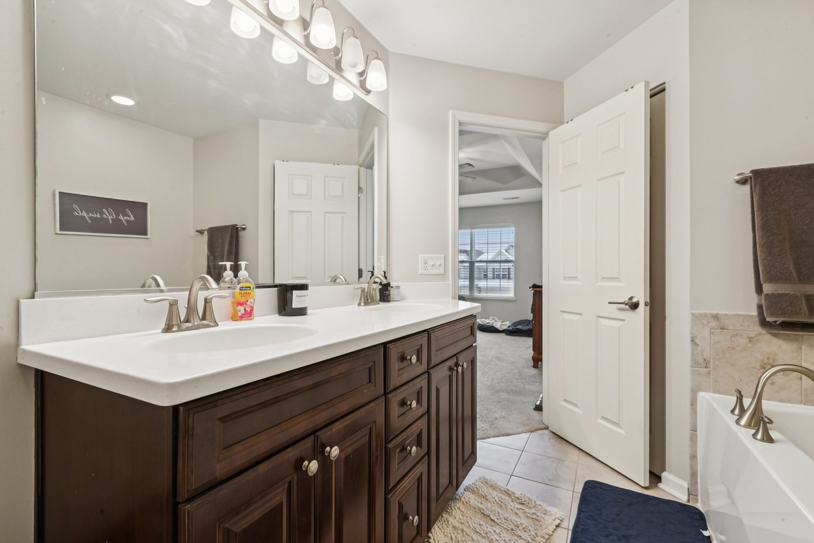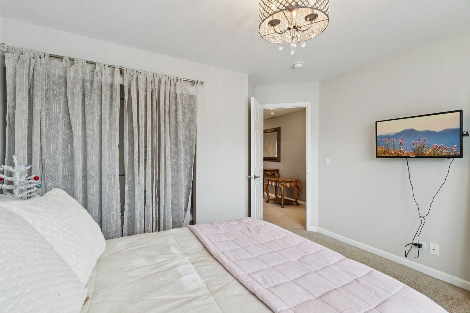 Built in 2016, this upgraded 3-bedroom, 2.5-bath “Courtney” floorplan offers an open main level with engineered hardwood floors, iron stair rails, and abundant natural light. The gourmet kitchen features 42″ white cabinets, granite countertops, stainless steel appliances, and a breakfast bar, opening to the dining area with patio access. The owner’s suite includes a tray ceiling, two custom walk-in closets, and a luxury bath with dual vanities, oversized tub, and separate shower. Two additional bedrooms, a full hall bath, and the conveniently located second-floor laundry complete the upper level. The finished basement provides flexible recreation and media space. Outside, enjoy a paver patio with seating wall and a rare arborvitae privacy screen. Additional features include crown molding, updated paint, and a 2-car garage. Direct access to the Great Western Trail and close proximity to the Randall Road corridor add to the convenience.