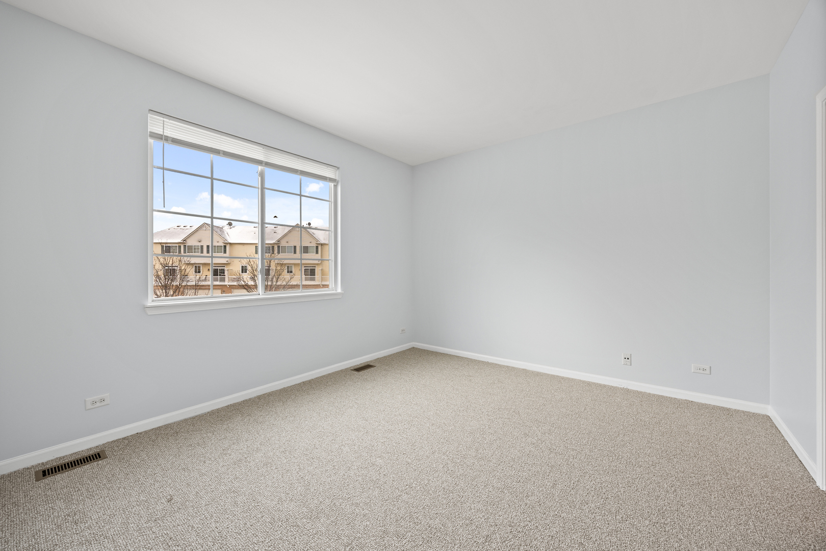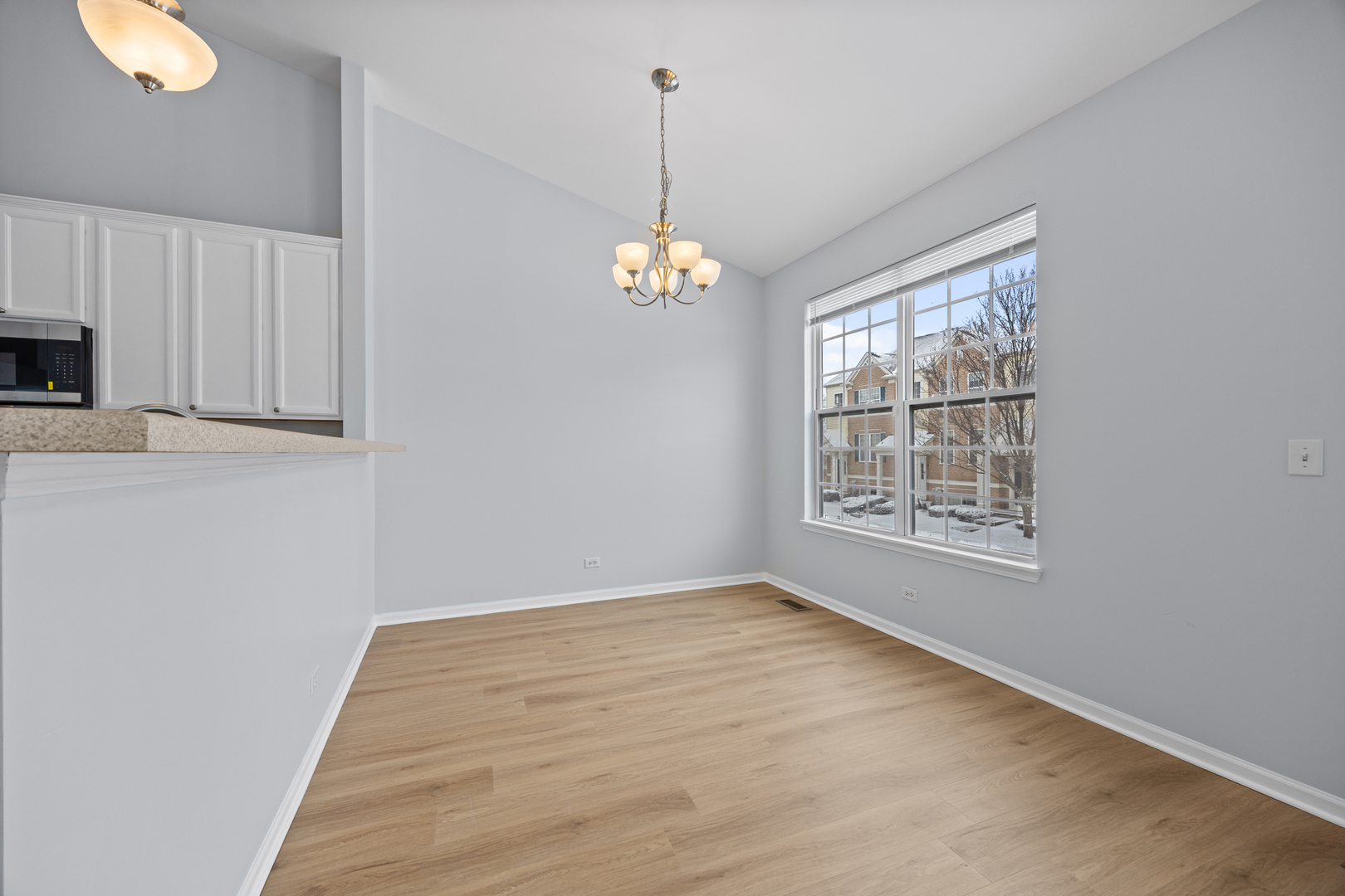 Move-in ready 3 bedroom/3 bathroom townhome in Hanover Park. This home offers new vinyl flooring throughout and new carpet in all bedrooms. The updated kitchen includes brand-new stainless-steel appliances and opens to a combined dining and living area with vaulted ceilings, creating a bright and open feel. Sliding doors off the living room lead to a balcony. The spacious primary suite includes an attached full bathroom and a walk-in closet. Additional highlights include a new in-unit washer and dryer, attached 2-car garage, and two additional exterior parking spaces in the driveway.