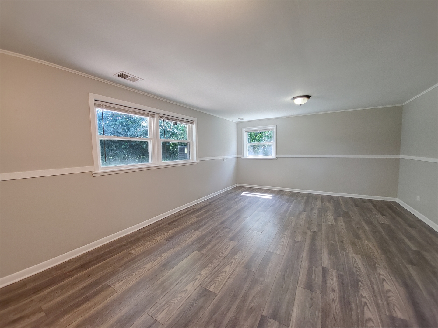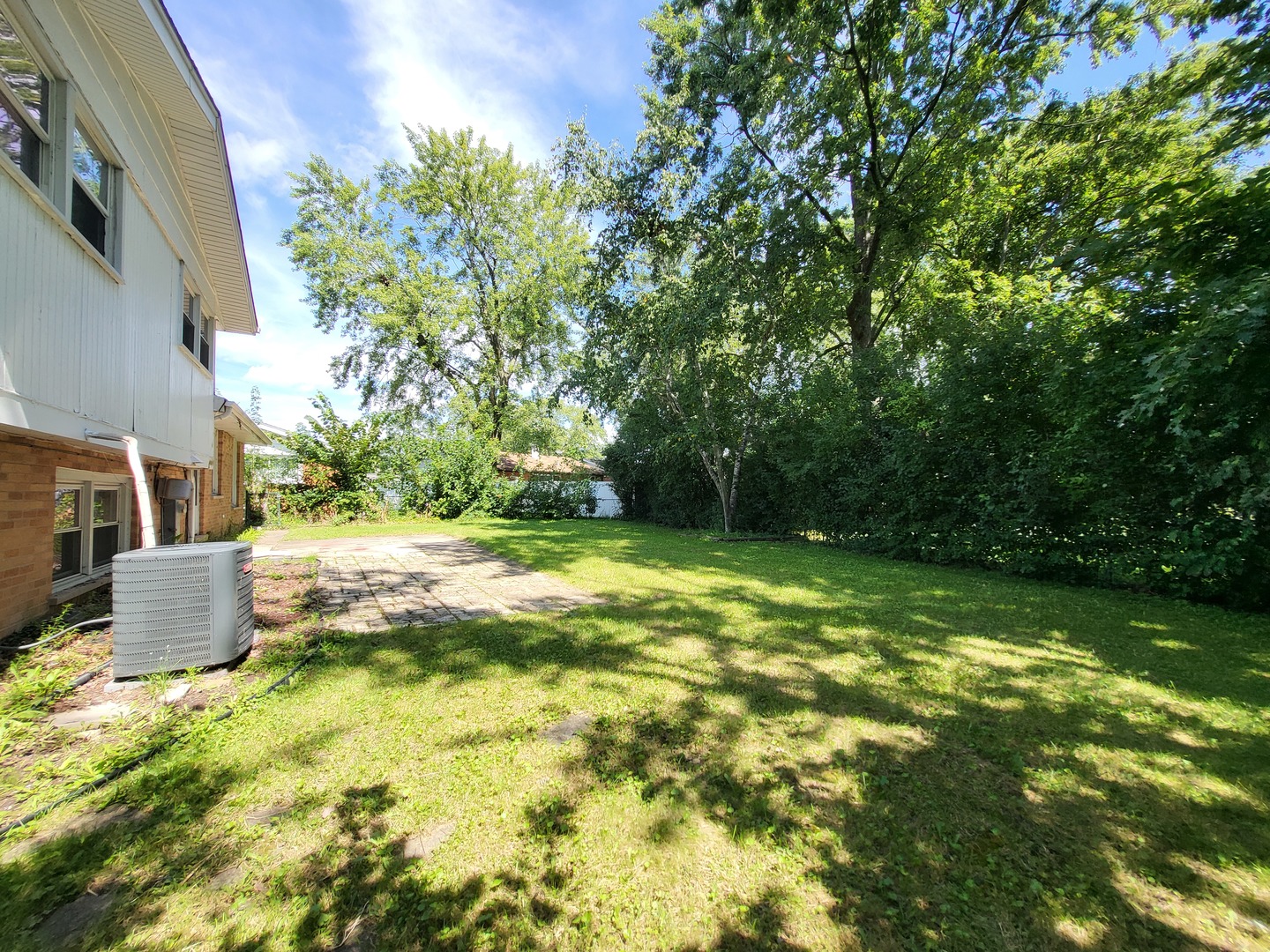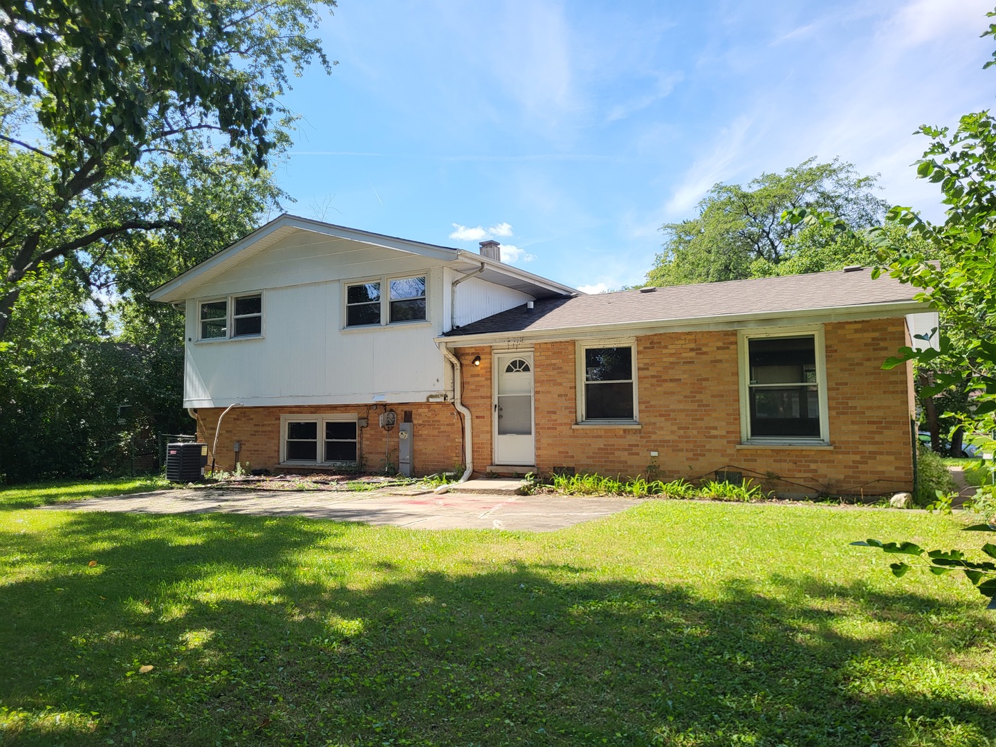 Fresh, light-filled split level (true back-split) in a quiet Hazel Crest pocket where a ranch facade surprises with two stacked levels of living inside. The main level opens to a long, sunlit living/dining space with neutral paint and durable flooring, flowing into an eat-in kitchen with extensive cabinet storage, tile backsplash, and direct access to the yard. Up a half-flight are three comfortable bedrooms with generous closets and a crisp hall bath. Down a half-flight, the oversized rec room is ideal for movie nights or play space, served by a stylish full bath with walk-in shower. A handy powder room on the main level keeps everyday living easy. Outside, enjoy a broad patio shaded by mature trees and a wide lawn great for gatherings, gardening, or a weekend playset. An attached 2-car garage and an extra-deep driveway provide ample parking. Practical perks include vinyl windows, central A/C, and a bright laundry/utility zone with extra storage. Convenient location near Hazel Crest Metra, quick access to I-57/294/80, and close to parks, and everyday shopping. Move-in ready with room to make it your own.