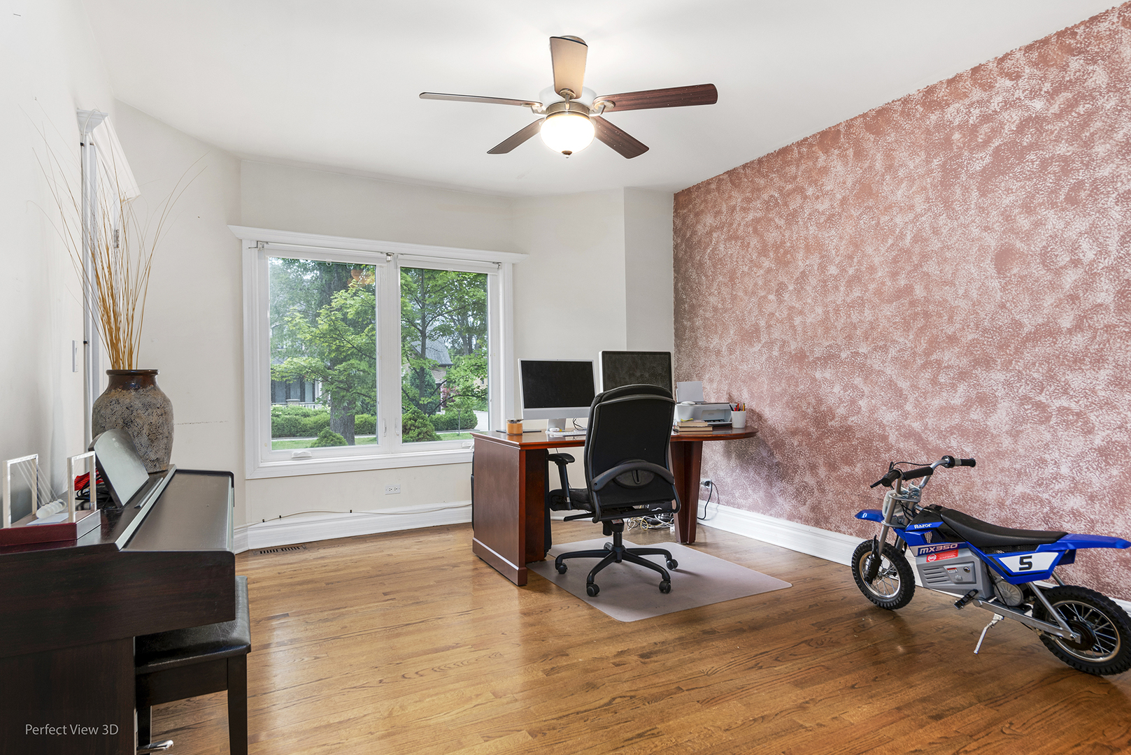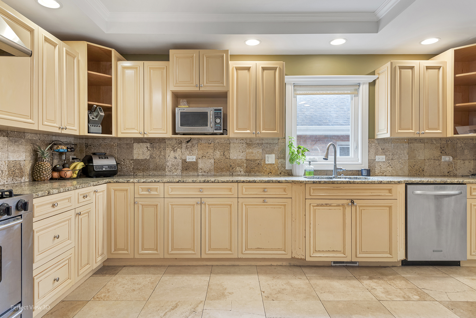 Priced to Sell! Welcome to this fabulous 5 bedroom Park Ridge home on a quiet, tree-lined street! With 4 upper-level bedrooms, 4 full bathrooms, and over 2,600 sq ft of living space, this home offers room to grow and make it your own. Step into the impressive two-story foyer with a grand staircase and soaring ceilings. The main level features a warm front living room with fireplace, a formal dining room, and a bright eat-in kitchen with stainless steel appliances, granite countertops, and sunny views of the backyard. A convenient first-floor bedroom and full bath complete the main level. Upstairs, you’ll find three spacious bedrooms and two full baths, including a primary suite with walk-in closet and a private balcony overlooking the patio and back yard. The finished basement offers a large recreation area with a bar, an office/bedroom, a full bath, laundry room and plenty of storage. Enjoy outdoor entertaining on the brick patio in the beautiful backyard. A two-car garage adds convenience. Located steps from Woodland Park (playground,picnic pavillion, basketball, soccer field and pickleball courts), 1/2 mile to Dee Road Metra, and close to shopping, Lutheran General Hospital, and top-rated Park Ridge elementary, middle and high schools (choice of Maine East or Maine South). Close to elementary school (no busy streets to cross). School bus service to middle school. This well-loved home has great bones and is ready for your cosmetic updates-a wonderful opportunity for buyers looking for value and space in a prime location. Home is being sold “as is.”