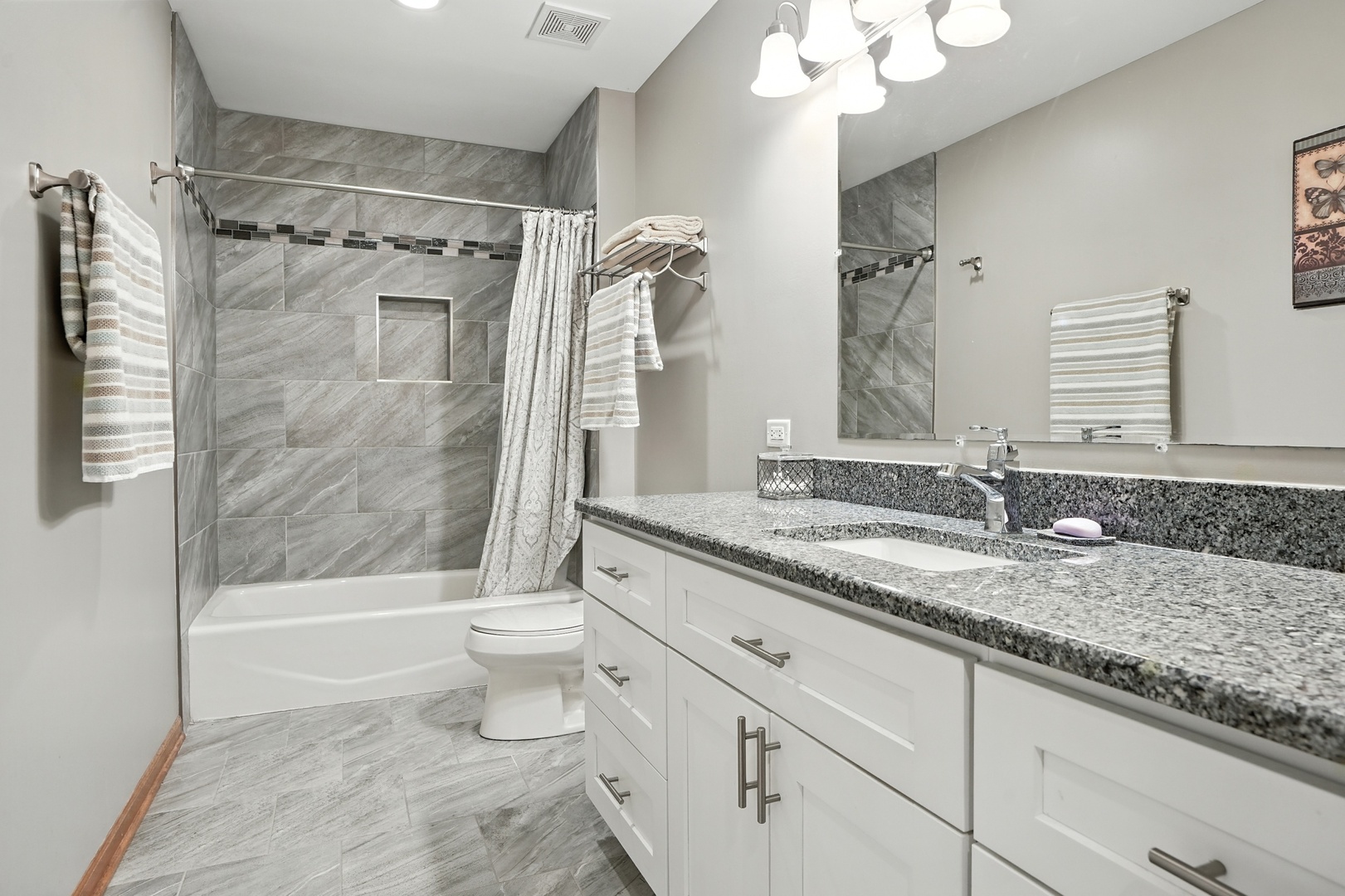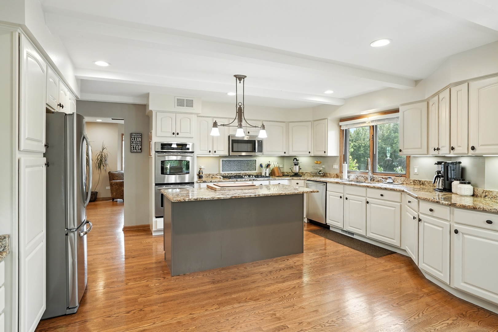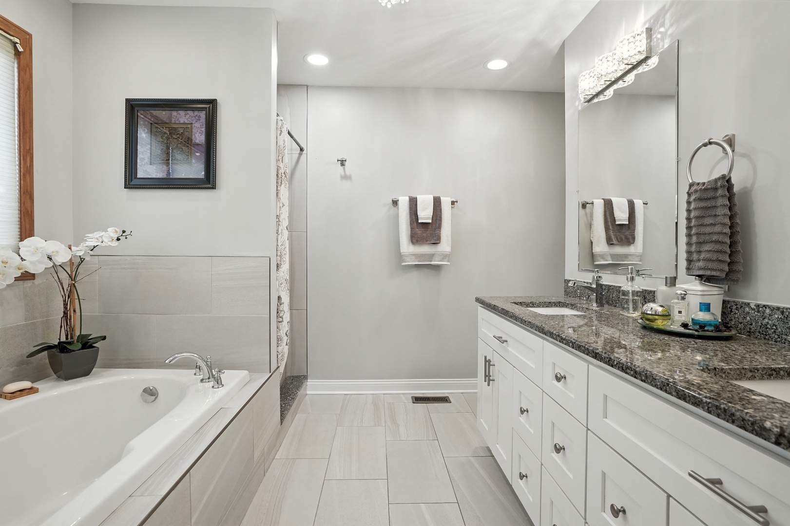 Stunning 4 bedroom, 3.5 Bathroom 1.5 Story masterpiece W Full FINISHED basement, MAIN FLOOR MASTER SUITE, 3 car attached garage & Private backyard oasis W mature trees & paver patio! All sitting on an oversized corner lot! This large open floor plan features a huge eat-in kitchen W gleaming white cabinetry, contrast island W breakfast bar, granite countertops, stainless steel appliances & direct access to private yard, Oversized family room W soaring 19 Ft ceilings, floor to ceiling brick fireplace, Main floor master bedroom W walk-in closet, Ensuite master bathroom W double bowl sinks, walk-in shower & separate tub, Extravagant two story foyer W custom staircase, Second Floor W 3 additional nicely sized bedrooms & 2 full bathrooms, Bedroom 3 W private bathroom, Full finished basement W second family room, fireplace & possible 5th bedroom! Nothing to do but move right in! Great location! Near Shopping, Dining & Interstate access! Come see today!