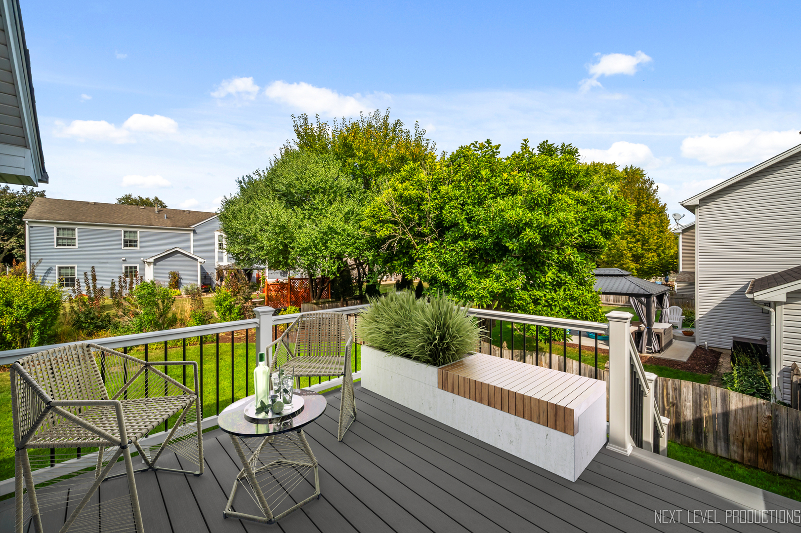 Welcome to absolute perfection! This fully remodeled home exudes sophistication at every turn, beginning with a striking new front door and wood staircase that set the tone for the exquisite details and high end finishes throughout. The expansive living room boasts crown molding and oversized windows that flood the space with natural light, while the gourmet eat-in kitchen impresses with custom cabinetry/hardware, featuring soft close doors and drawers, pull out shelving, under-cabinet lighting, quartz countertops, marble backsplash, custom black sink, pot-filler, premium Forno Cafe white appliances, and a seamless transition through sliding glass doors with built-in blinds to a Trex deck designed for outdoor living! The luxurious primary suite showcases crown molding, dual wall closets with custom doors and access to a spa-inspired bath with a wood vanity, vessel sink, and shower/tub combination. Bedroom two with custom closet doors too! The lower level continues with a large sunlit family room, two generously sized bedrooms with custom closet doors, and a stunning designer bath featuring a marble-topped vanity and an oversized walk-in shower with wood & slate accents. A state-of-the-art laundry room offers custom cabinetry, epoxy flooring, utility sink, and stacked washer/dryer, while the heated two-car attached garage with epoxy flooring and built-in storage enhances both style and function. With all new HVAC, appliances, plumbing, lighting, custom blinds, impeccable landscaping with irrigation system, and a coveted location close to all amenities, this home delivers the perfect blend of modern luxury and timeless appeal. No detail was overlooked in this meticulous renovation. See list of extensive improvements in additional documents.