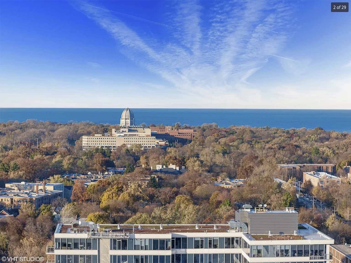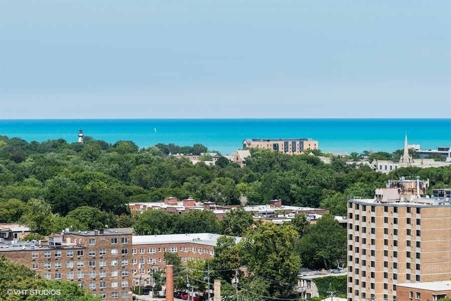 Beautiful Vistas 280-degree unique view from this 25th-floor condo!!! We are on the upper floors, so you are able to see the Northshore and the lake. A must-see! On TOP of the World. Ready to move in. Open floor plan, granite counters, and maple cabinets in kitchen, newer engineered hardwood floors throughout, huge floor-to-ceiling windows in every room (wellness), in-unit laundry, and balcony. Spacious bedrooms and beautiful baths. Huge walk-in closet in primary bedroom, heated parking garage #189 & storage locker #104 included. All of these in a well-managed building with amenities that include 24-hour door staff, pool, jacuzzi, fitness center, 4th-floor deck with Room & Board, patio furniture, a business center, bike room, indoor heated parking garage, EV charging for electric cars available, and golf putting green. 5 health reasons to move to Optima Views: Internal gym & parking. Walk everywhere & get your 8,000 steps in. Natural light abounds. Near large water, parks & health centers. Farmers market steps away, 2 trains a sprint away, and a Social club for longevity. Time to put yourself and your health 1st, Evanston is unique & so are you! No special assessments! Upper-level units are rare.