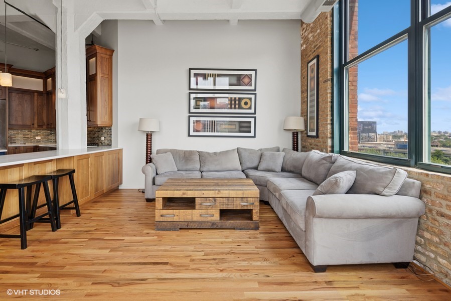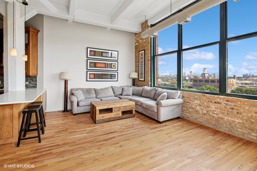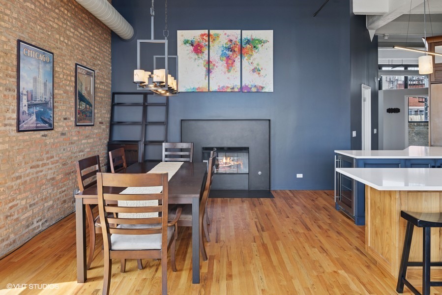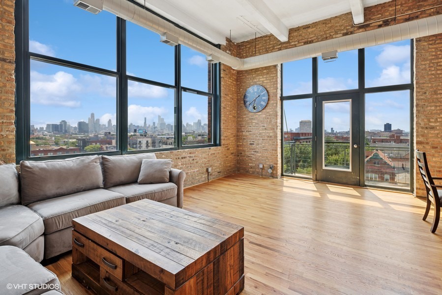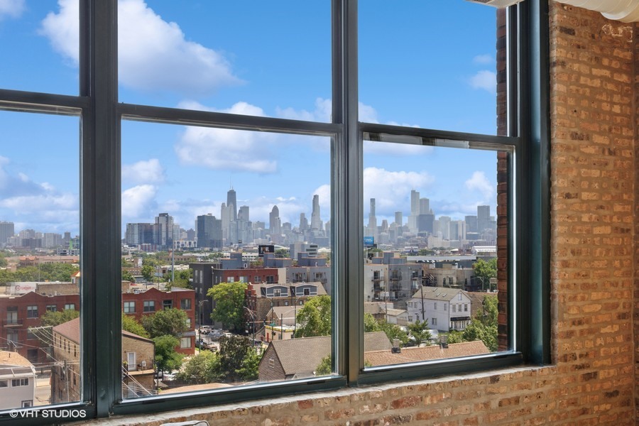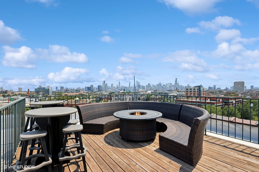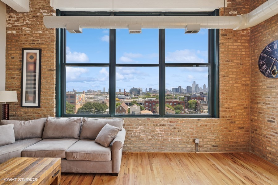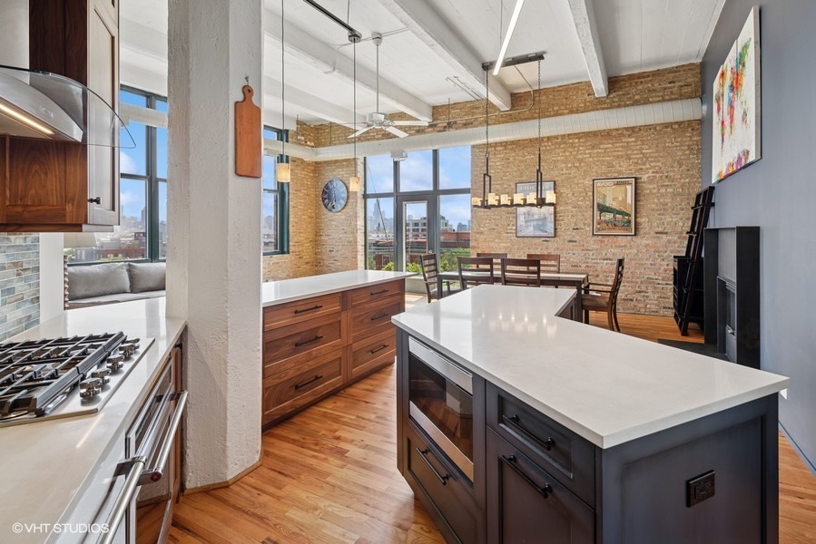 Welcome to the historic Bucktown Comptometer loft building!! This is the one you have been waiting for!! THIS PENTHOUSE UNIT WITH UNOBSTRUCTED VIEWS OF THE CHICAGO SKYLINE ARE AMAZING!! This is a completely renovated HUGE Southeast corner 2BR/2Bth 1680 sq ft loft with gigantic windows that you must see. The unit has wide open large living spaces, exposed brick walls, massive 14 ft ceiling heights, hardwood floors, wood burning fireplace in family room and primary bedroom, two outdoor spaces, a huge full concrete patio off the front of the unit and private balcony with Chicago skyline views off the family room. Recently gutted modern baths and kitchen with white quartz counters. The loft has concrete between floors that ensures quiet enjoyment. Coveted one car attached Garage parking included.This is a PRIME Bucktown location just across the street from from Walsh Park and the main entrance to the scenic and highly desirable 606 Trail. This Chicago Park District trail is a 2.7 mile scenic walk, bike, run trail that goes through Bucktown, Logan Square and Humbolt Park. It’s truly something to see!!! Seven minute walking distance to Clybourn Metra stop. Easy walk to Damen Blue line and Bucktown/Wicker Park’s vast array of dining and entertainment options!!!