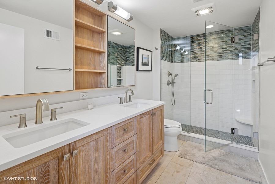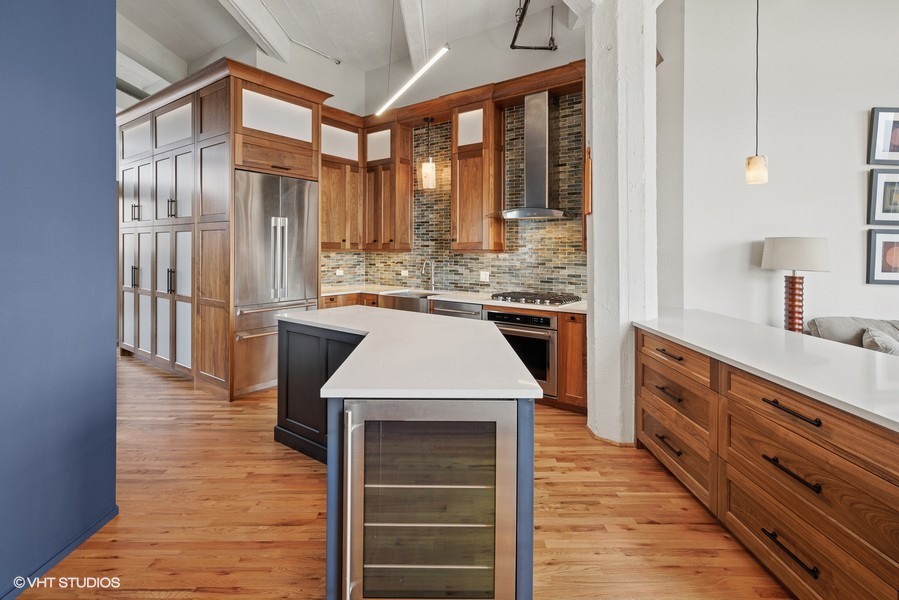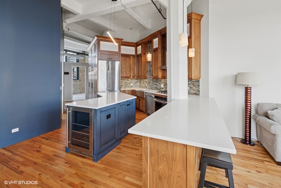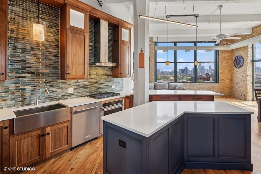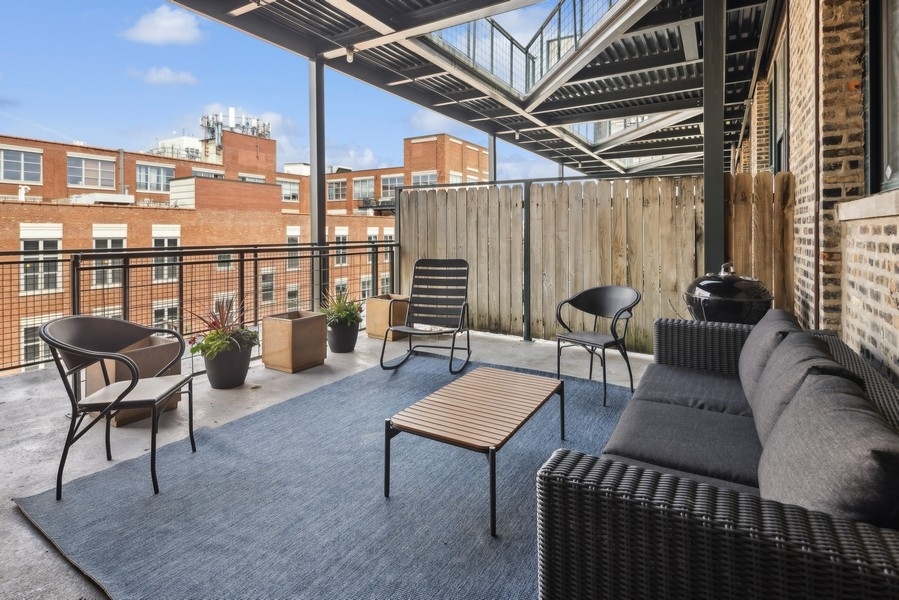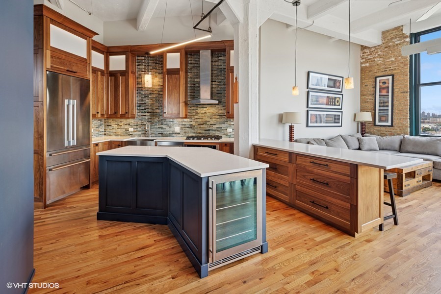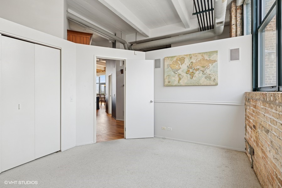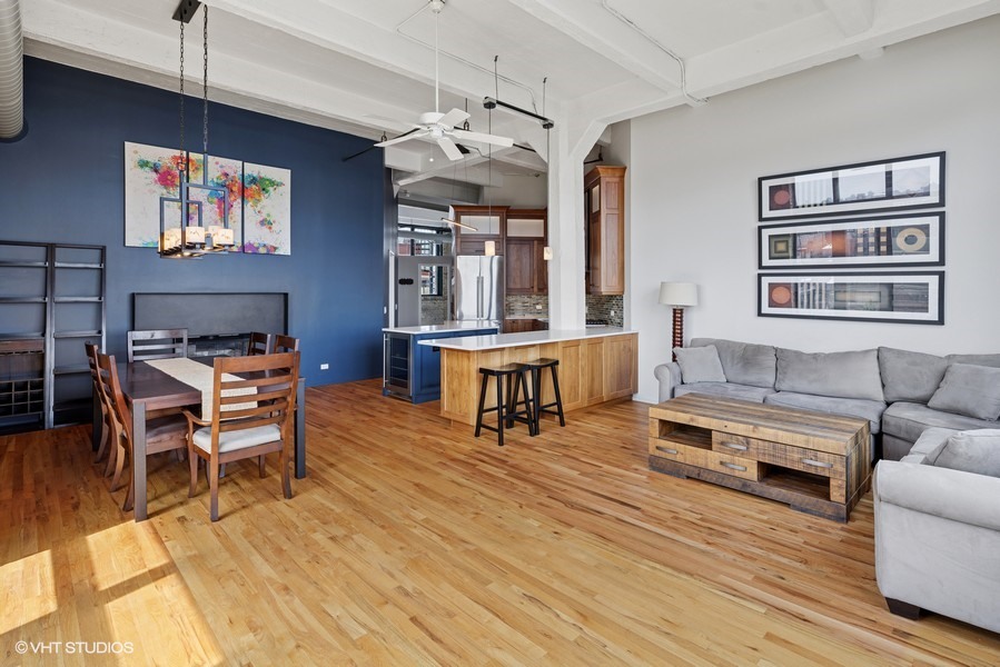 Welcome to the historic Bucktown Comptometer loft building!! This is the one you have been waiting for!! THIS PENTHOUSE UNIT WITH UNOBSTRUCTED VIEWS OF THE CHICAGO SKYLINE ARE AMAZING!! This is a completely renovated HUGE Southeast corner 2BR/2Bth 1680 sq ft loft with gigantic windows that you must see. The unit has wide open large living spaces, exposed brick walls, massive 14 ft ceiling heights, hardwood floors, wood burning fireplace in family room and primary bedroom, two outdoor spaces, a huge full concrete patio off the front of the unit and private balcony with Chicago skyline views off the family room. Recently gutted modern baths and kitchen with white quartz counters. The loft has concrete between floors that ensures quiet enjoyment. Coveted one car attached Garage parking included.This is a PRIME Bucktown location just across the street from from Walsh Park and the main entrance to the scenic and highly desirable 606 Trail. This Chicago Park District trail is a 2.7 mile scenic walk, bike, run trail that goes through Bucktown, Logan Square and Humbolt Park. It’s truly something to see!!! Seven minute walking distance to Clybourn Metra stop. Easy walk to Damen Blue line and Bucktown/Wicker Park’s vast array of dining and entertainment options!!!