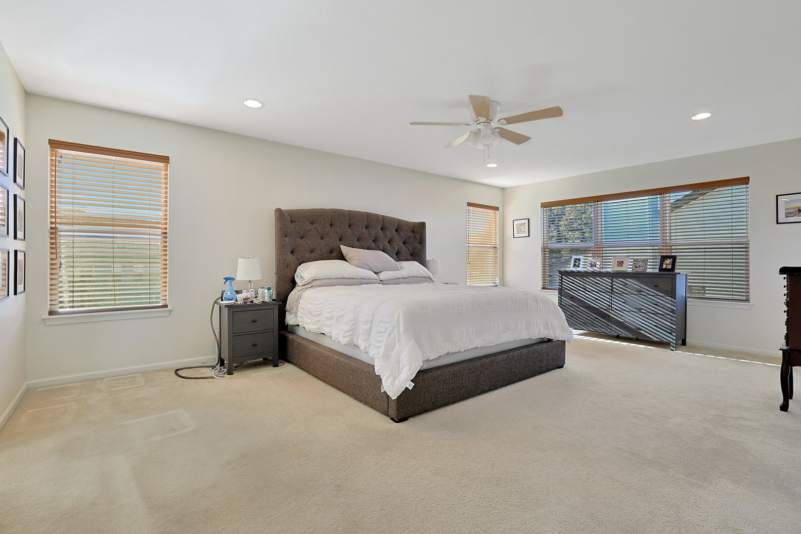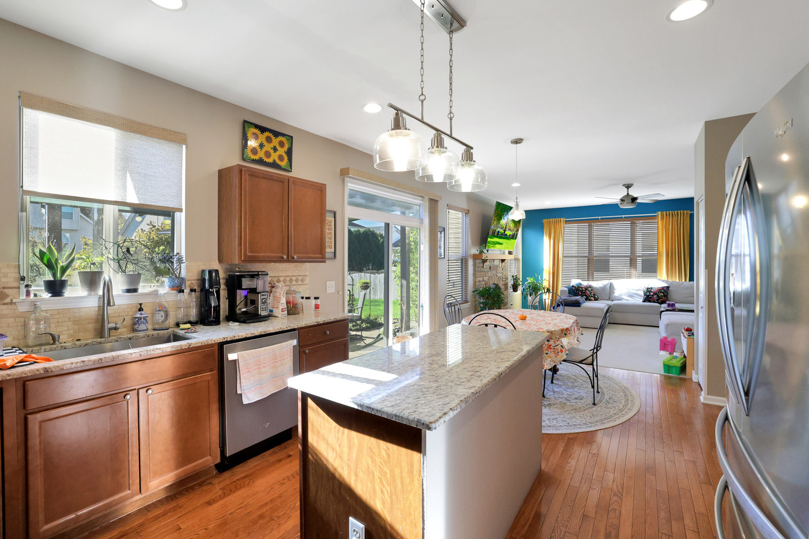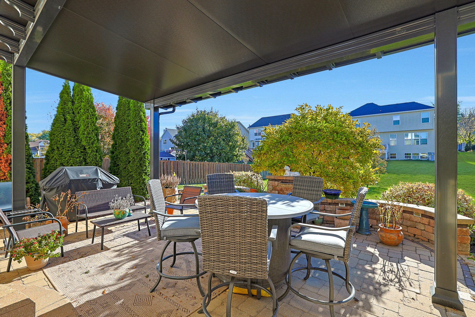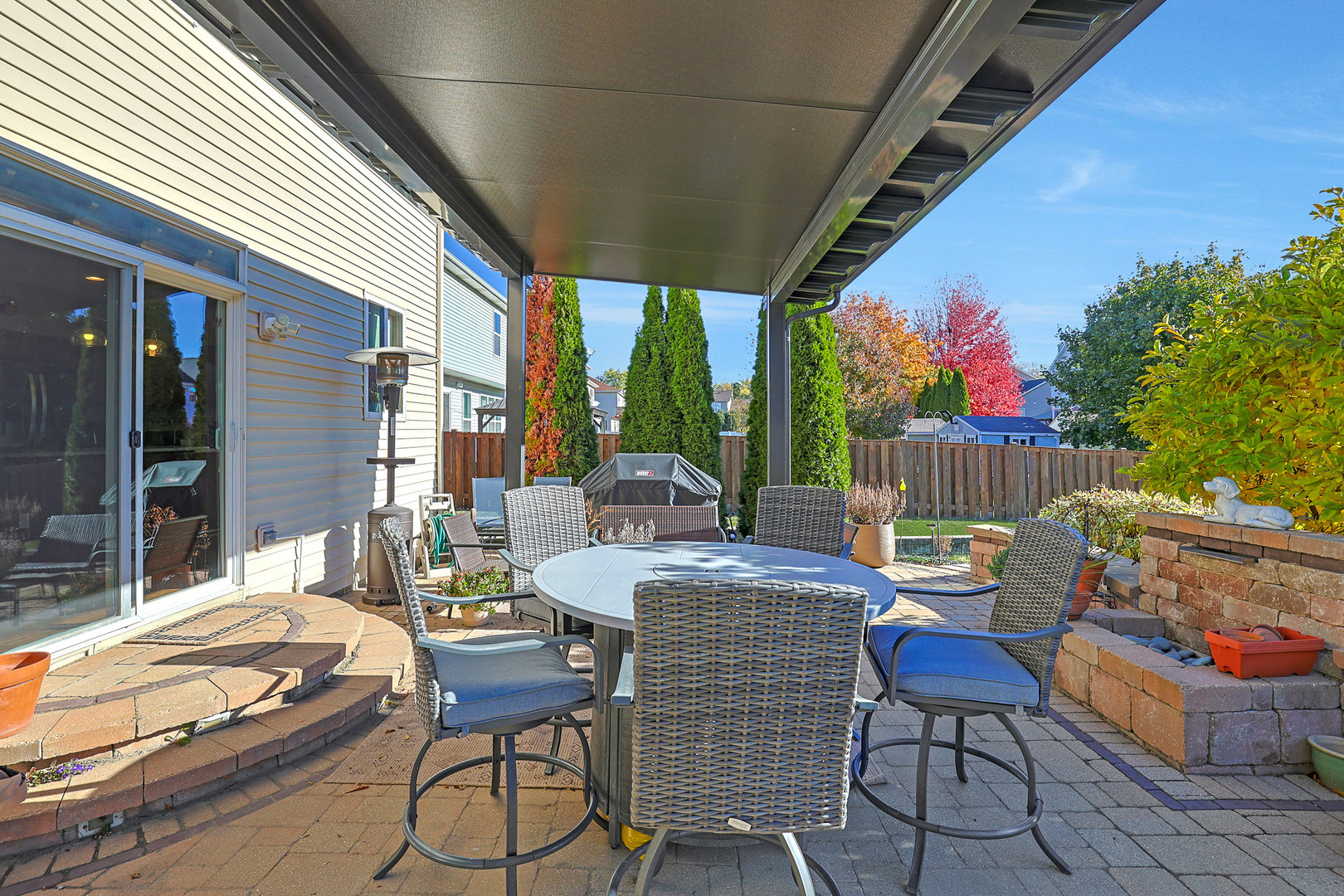Outstanding 2 story brick and vinyl with 4 bedrooms, 3 1/2 baths with full finished basement with 3100 sq ft of living space plus full finished basement. Huge paver brick patio with pergola. Interior features hardwood floor foyer, kitchen and eating area. Big LR/DR combo. Huge family room with loads of windows and brick wood burning fireplace. Kitchen features loads of maple cabinets, granite counters, ceramic backsplash, island center, stainless steel appliances. Master bedroom can accommodate big furniture with a big walk-in closet. Master bath with double sinks, soaking tub and glass shower. 2-4 bedrooms all decent size. Hall bath features double sinks. Full finished basement with theater room and full bath. Newer furnace/AC and hot water tank. This home has solar panels. Come see this clean home.