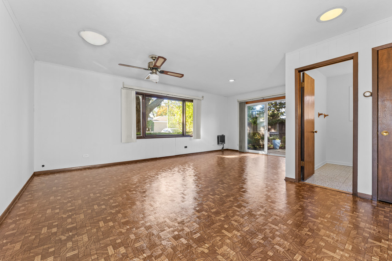 Still time to be in your new home for the holidays! This three-bedroom ranch home offers lots of great features. The oversized windows and ceiling-mounted sun tubes flood the rooms with natural light, making the spaces feel open, airy, and cheerful. Oak hardwood flooring adds a touch of classic warmth while being durable and easy to maintain. The kitchen is open to both the living room and family room- a layout that combines efficient design with flexible spaces for family living and entertaining. A large family room addition to the rear of the home will be your family’s favorite hang-out! And the inviting patio right off the family room, is very private and offers a perfect spot for dining and grilling. The basement boasts a hip, classic 1960s dry bar for parties- plus a rec room, a utility/laundry room, and a bonus room that would make a great craft room or office. There’s also a spacious two-car garage with extra space perfect for a workbench and wall-mounted shelving or pegboards to keep tools and equipment organized. Just painted throughout in a neutral, modern tone so it is move-in ready! Brand new refrigerator.Within 2-3 blocks of grocery shopping, multiple churches and an elementary school, great Park District parks, and a variety of restaurants. Minutes away from Lake Park, which features Lake Opeka, a 40 acre sailing and fishing lake bordered by a par 3 golf course and the very-popular Foxtail on the Lake restaurant. Walkable to downtown Des Plaines, where your family can enjoy a top notch public library, a live music venue, lots of restaurants, or catch the Metra train to downtown Chicago. COME SEE THIS MOVE-IN READY HOME! This property is not in a flood zone or close to a flood zone.