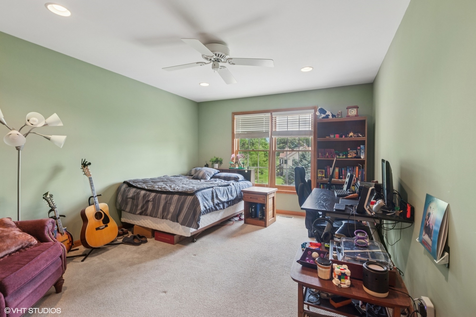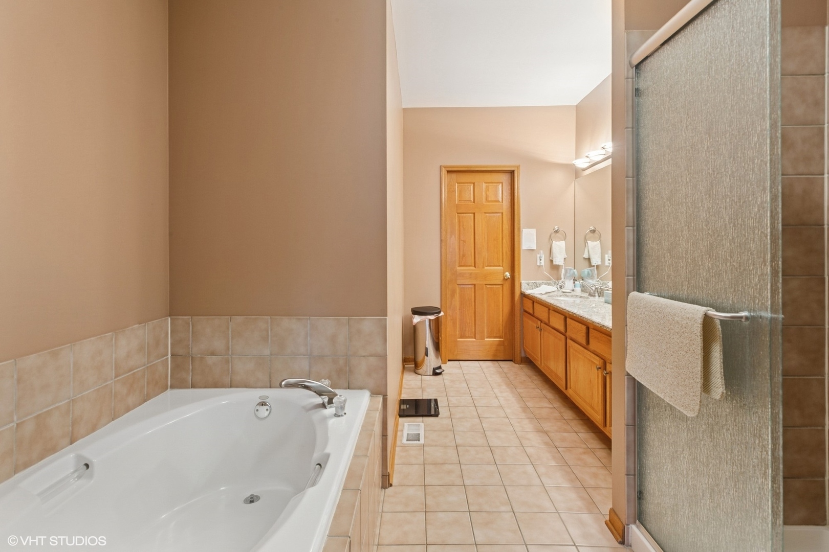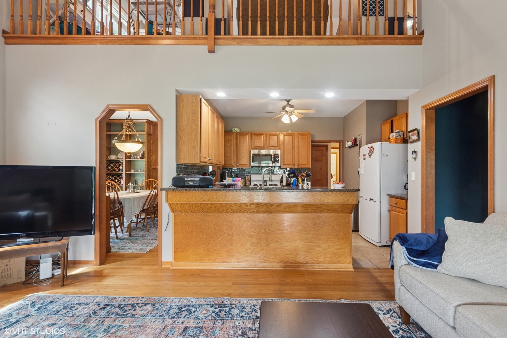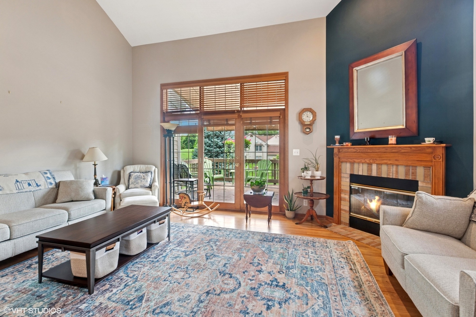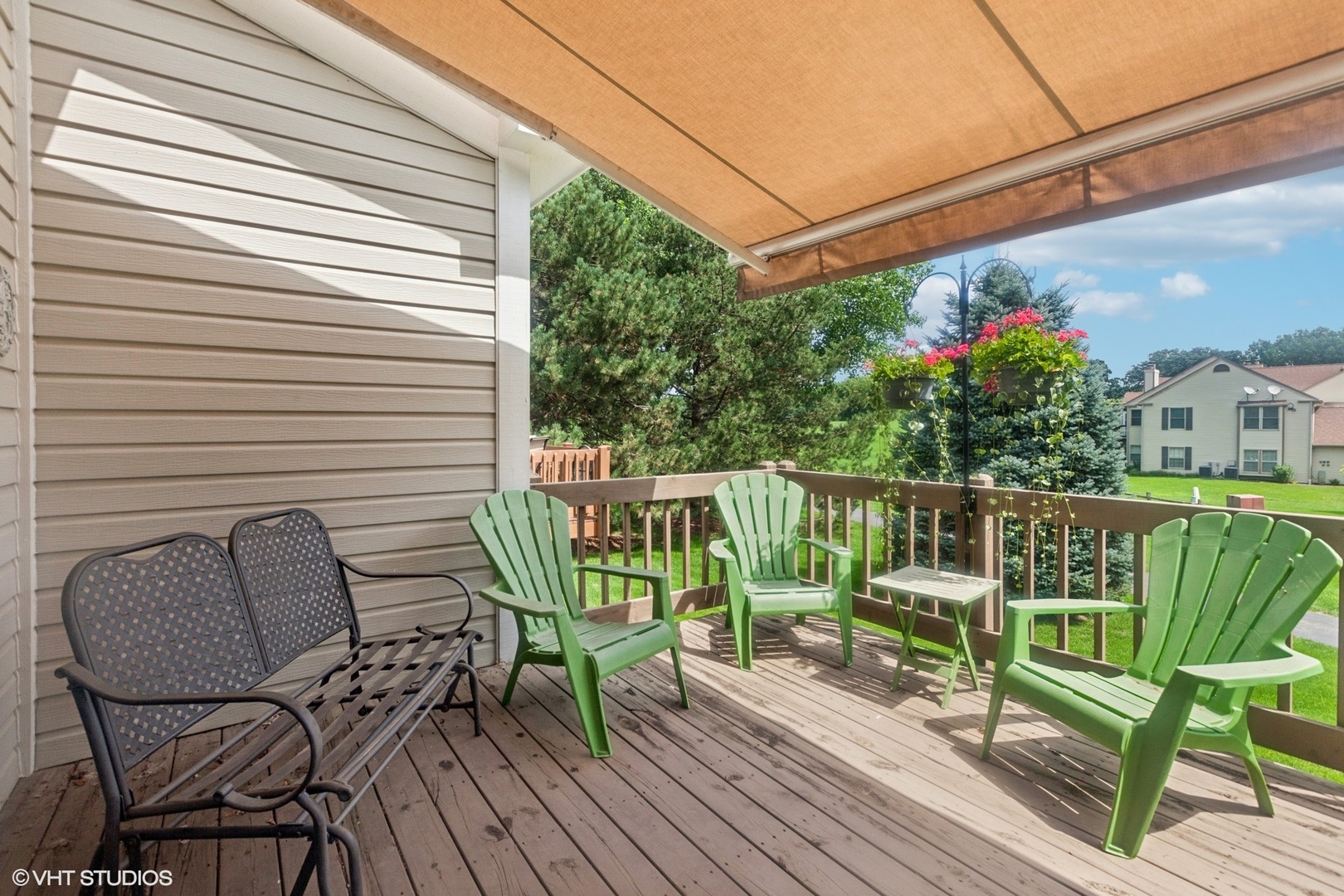This well maintained townhome is nestled in the desirable Townes of Fox Chase subdivision with plank hardwood & ceramic flooring. Enjoy the convenience of a desirable & spacious 1ST FLOOR PRIMARY Bedroom Suite with double sinks, shower with grab-bars, soaking tub and fully organized shelving & hanging areas in the large walk-in closet. The Kitchen has granite countertops, custom cabinetry with ample space, tile backsplash, a breakfast bar & opens to a bright, cozy family room with a fireplace. Step outside to a private back deck (12’x13′) with a natural gas grill connection and a motorized awning with a patio (12’x13′) below, perfect for outdoor living. The Dining & Library/Living room area is another relaxing spot. The second floor greets you with a roomy loft overlooking the family room & is ideal for an office, reading, studying, enjoying music or playing games. Featuring a total of 3 bedrooms, 2.5 baths, Ceiling fans & can lighting throughout and a full, unfinished look-out basement, the home boasts nearly 2,300 square feet of living space. This lovely home offers a picturesque backdrop of a walking path and nearby water feature. Updates include: 2022 Roof, Windows & Gutters Replaced. 2020 Hot Water Heater and Toilets, 3X Reverse Osmosis Filter. 2019 Furnace & A/C Replaced (serviced every 6 mts). The Garage is organized with storge racks & hooks. The Townes of Fox Chase community is ideally situated on the East side of St. Charles with D303 schools, parks, trails, and shopping. Move-in ready, this home awaits your approval for townhome living at its finest!