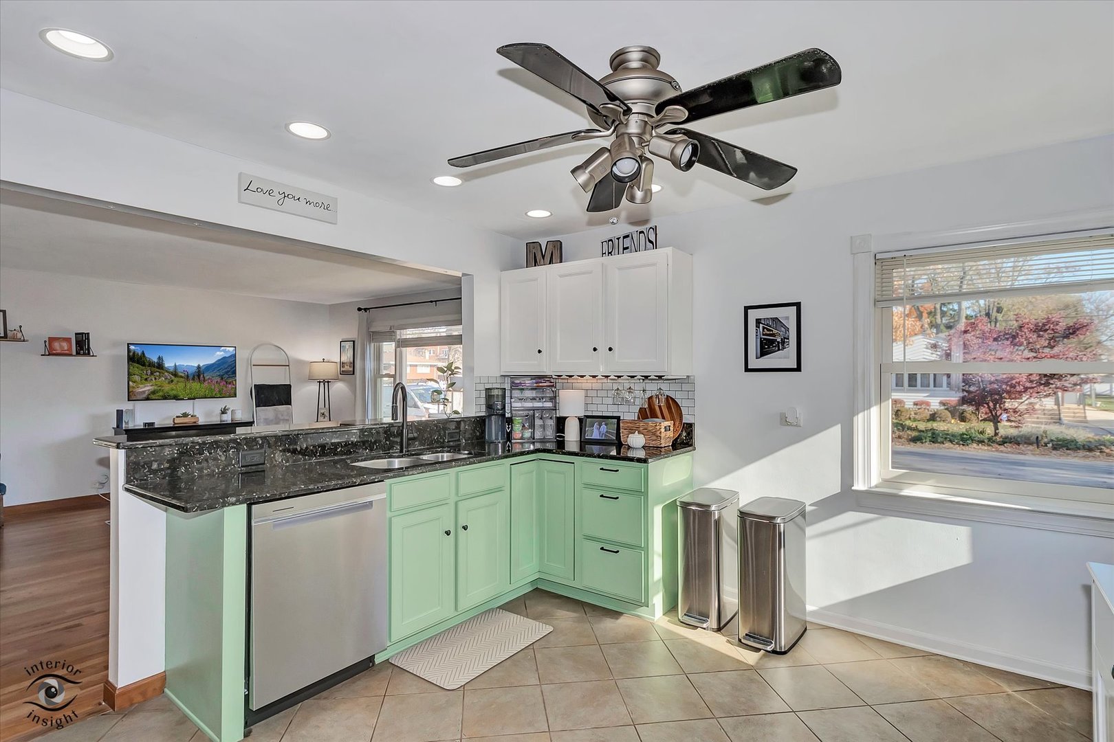 Beautifully Renovated Home Just Steps from Downtown Tinley Park! Welcome to this fully updated 2-bedroom, 1-bathroom gem perfectly located near downtown Tinley Park! This home offers a bright, open floor plan with modern finishes throughout. The eat-in kitchen features granite countertops, stainless steel appliances, a breakfast bar, and recessed lighting-perfect for everyday living or entertaining. The dining room with built-ins flows seamlessly into the living room, both featuring gorgeous hardwood floors. The remodeled full bath includes stylish updates, and the spacious bedrooms provide ample comfort. Upgrades since 2020 include: Radon mitigation system, New stainless steel stove, New roof above front entry, 1-car garage with added electric, floodlights, and opener, Newer outdoor and basement electric outlets, Newer Range, Dishwasher, Refrigerator, Hot Water Heater and Fence. New Patio in 2024. Enjoy the large backyard, unfinished basement with laundry area (full-size washer/dryer + utility sink), and unbeatable location near train, downtown, expressways, parks, and schools. Move-in ready and loaded with charm-don’t miss this incredible opportunity!