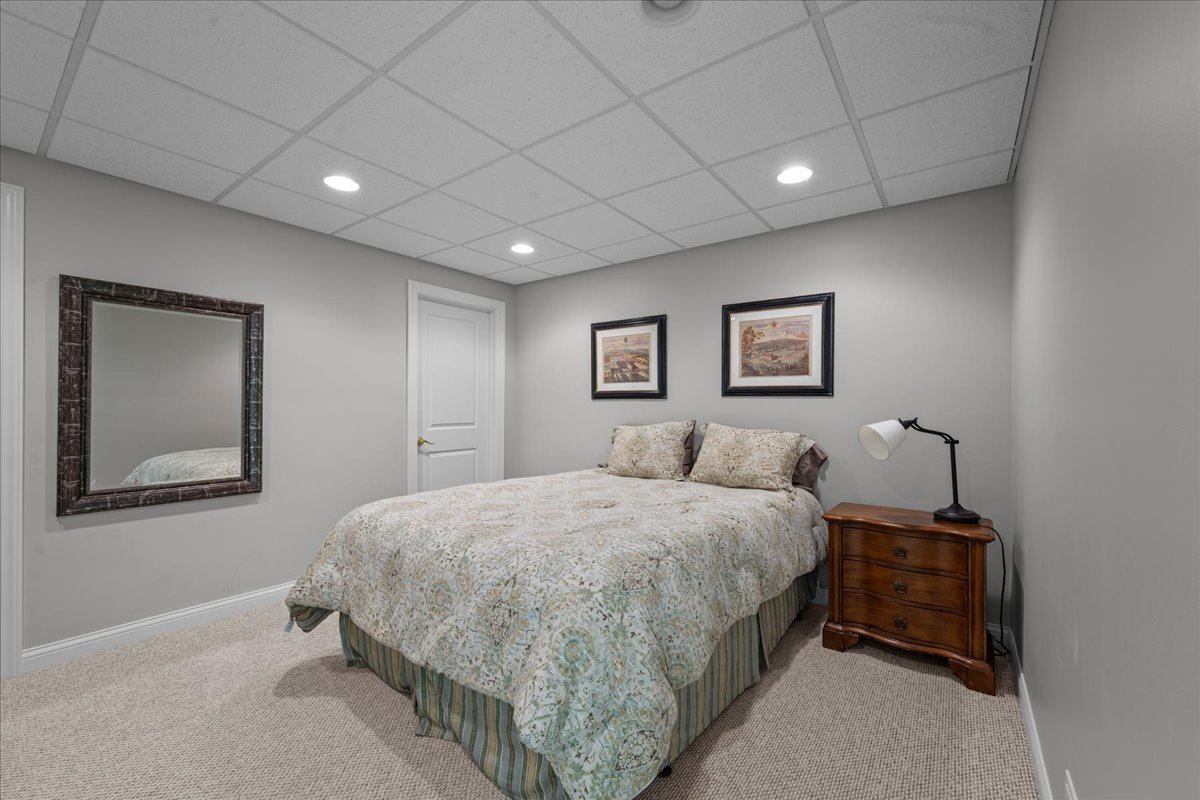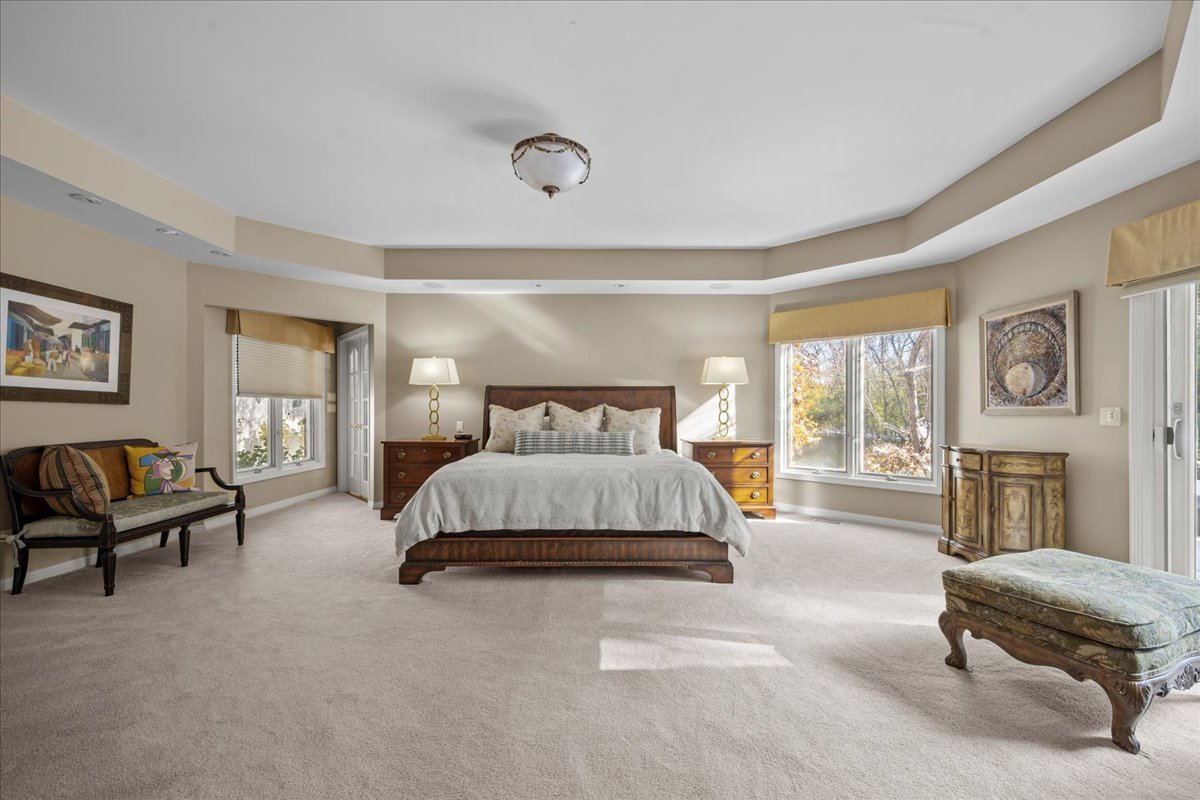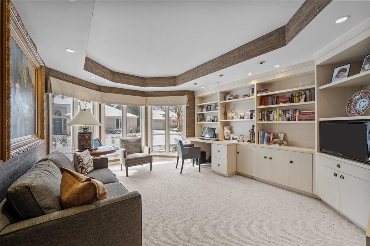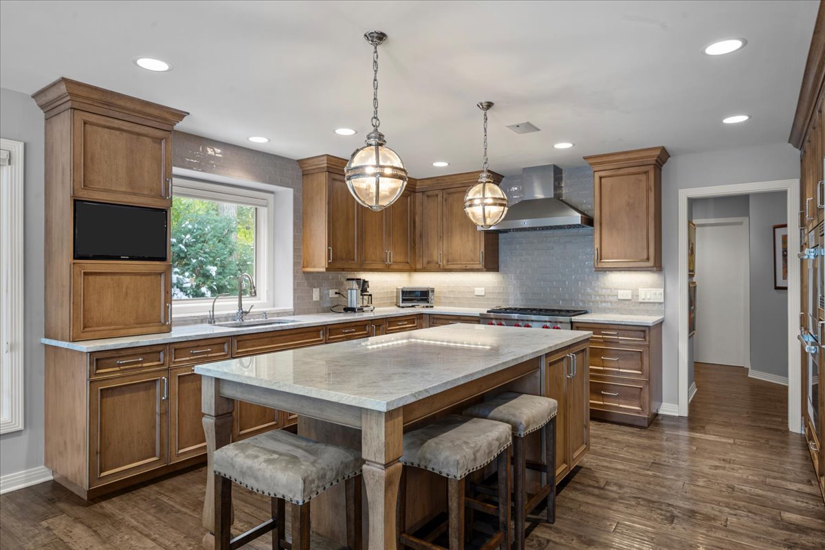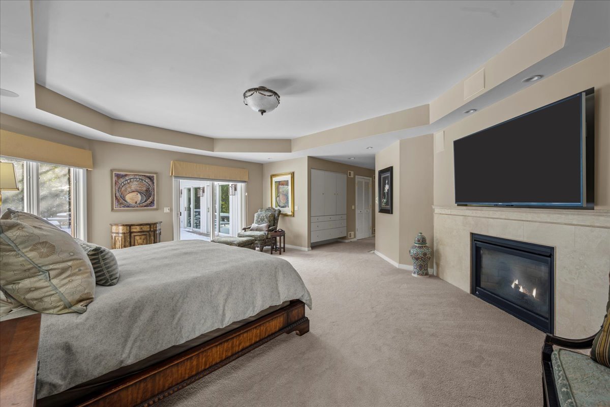Fabulous ranch in maintenance-free Hybernia offers effortless single-level living with upscale finishes throughout. The inviting great room features vaulted ceilings and a newly designed stone fireplace flanked by custom cabinetry. Floor-to-ceiling windows and sliders from the living room and kitchen open to a redesigned Trex deck overlooking serene pond views. The renovated kitchen is a cook’s dream-quartz countertops, custom cabinetry providing ample storage, a large island, and high-end appliances including a wine refrigerator. An oversized third bedroom easily functions as a den or home office. The primary suite is a private retreat with a fireplace and cozy sitting area. The spacious primary bath has a walk-in closet, walls of built-ins, skylights, a whirlpool tub, and a separate shower. Recessed lighting highlights the home’s clean, contemporary lines,while hardwood flooring flows throughout the main public areas. The finished lower level expands living space with a generous recreation area, an additional bedroom, and a full bath. Practical upgrades include a heated garage with epoxy flooring and an EV charger. Meticulously updated and thoughtfully designed, this Hybernia ranch blends comfort, style, and low-maintenance living for an effortless, luxurious lifestyle.