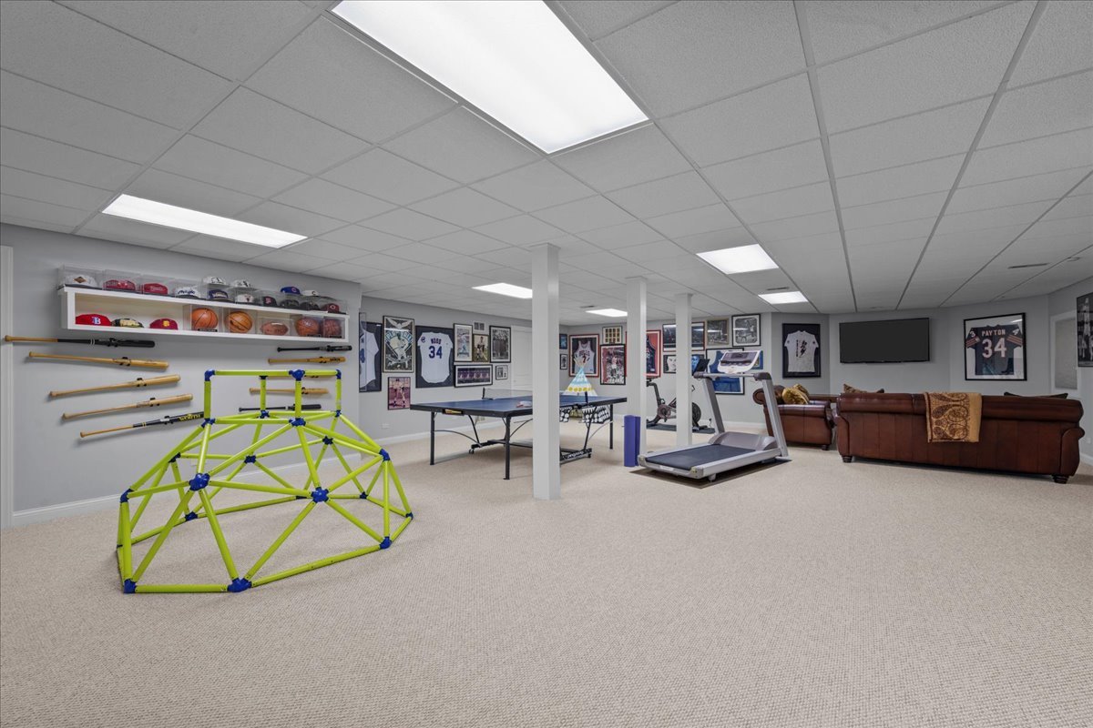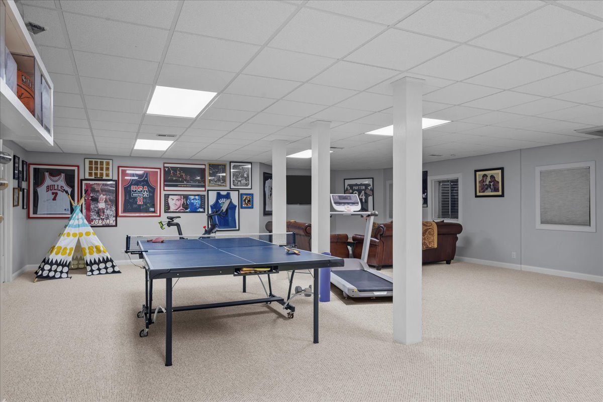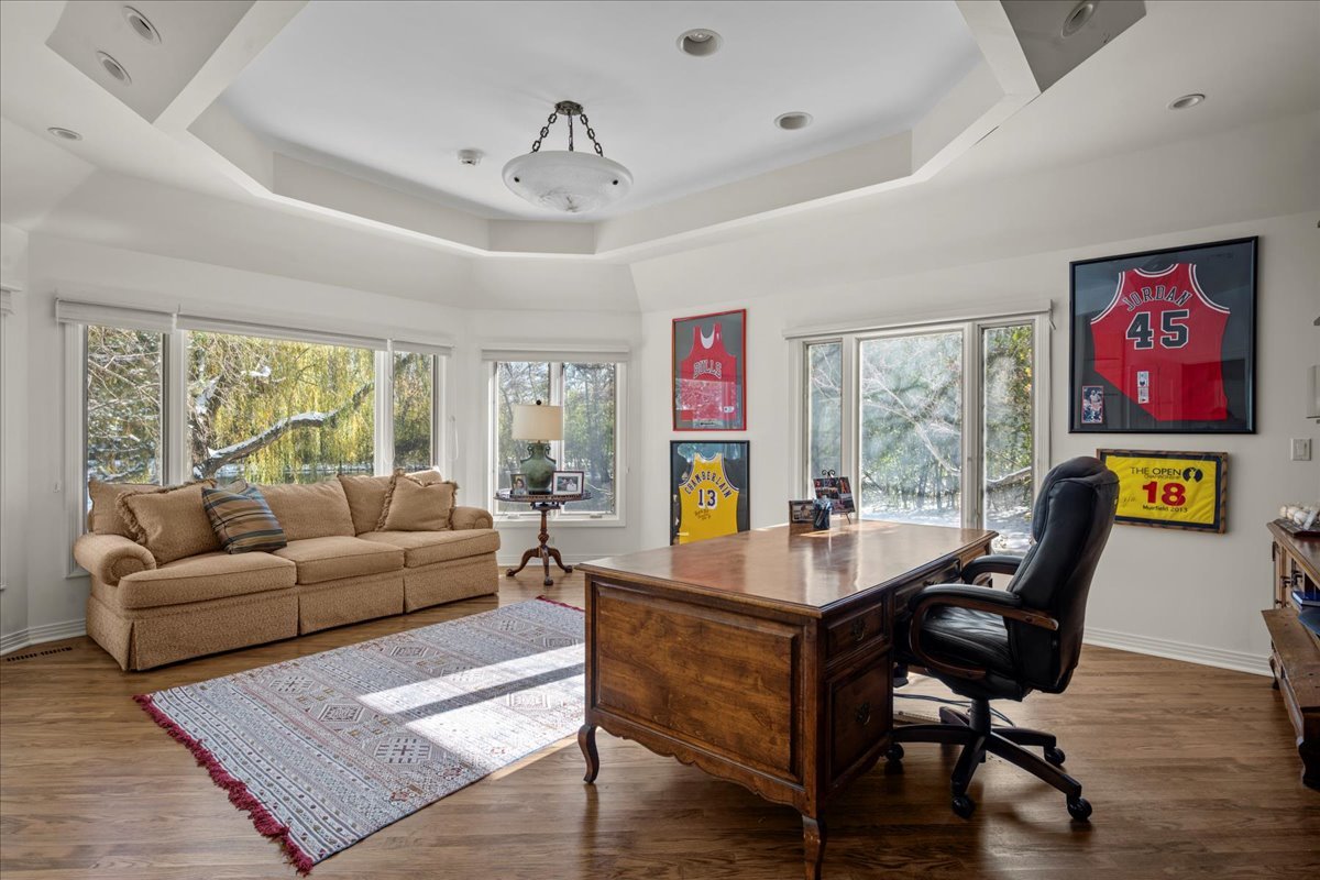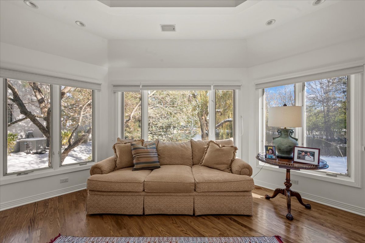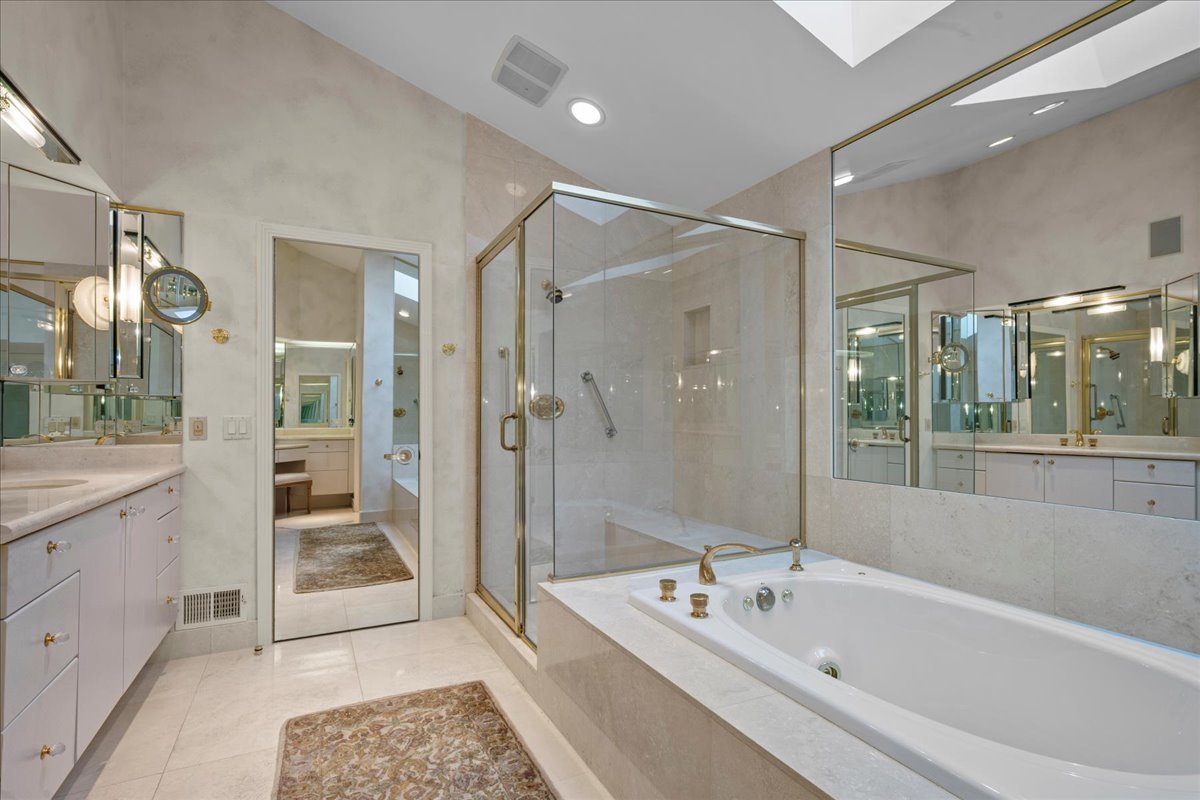 Fabulous ranch in maintenance-free Hybernia offers effortless single-level living with upscale finishes throughout. The inviting great room features vaulted ceilings and a newly designed stone fireplace flanked by custom cabinetry. Floor-to-ceiling windows and sliders from the living room and kitchen open to a redesigned Trex deck overlooking serene pond views. The renovated kitchen is a cook’s dream-quartz countertops, custom cabinetry providing ample storage, a large island, and high-end appliances including a wine refrigerator. An oversized third bedroom easily functions as a den or home office. The primary suite is a private retreat with a fireplace and cozy sitting area. The spacious primary bath has a walk-in closet, walls of built-ins, skylights, a whirlpool tub, and a separate shower. Recessed lighting highlights the home’s clean, contemporary lines,while hardwood flooring flows throughout the main public areas. The finished lower level expands living space with a generous recreation area, an additional bedroom, and a full bath. Practical upgrades include a heated garage with epoxy flooring and an EV charger. Meticulously updated and thoughtfully designed, this Hybernia ranch blends comfort, style, and low-maintenance living for an effortless, luxurious lifestyle.