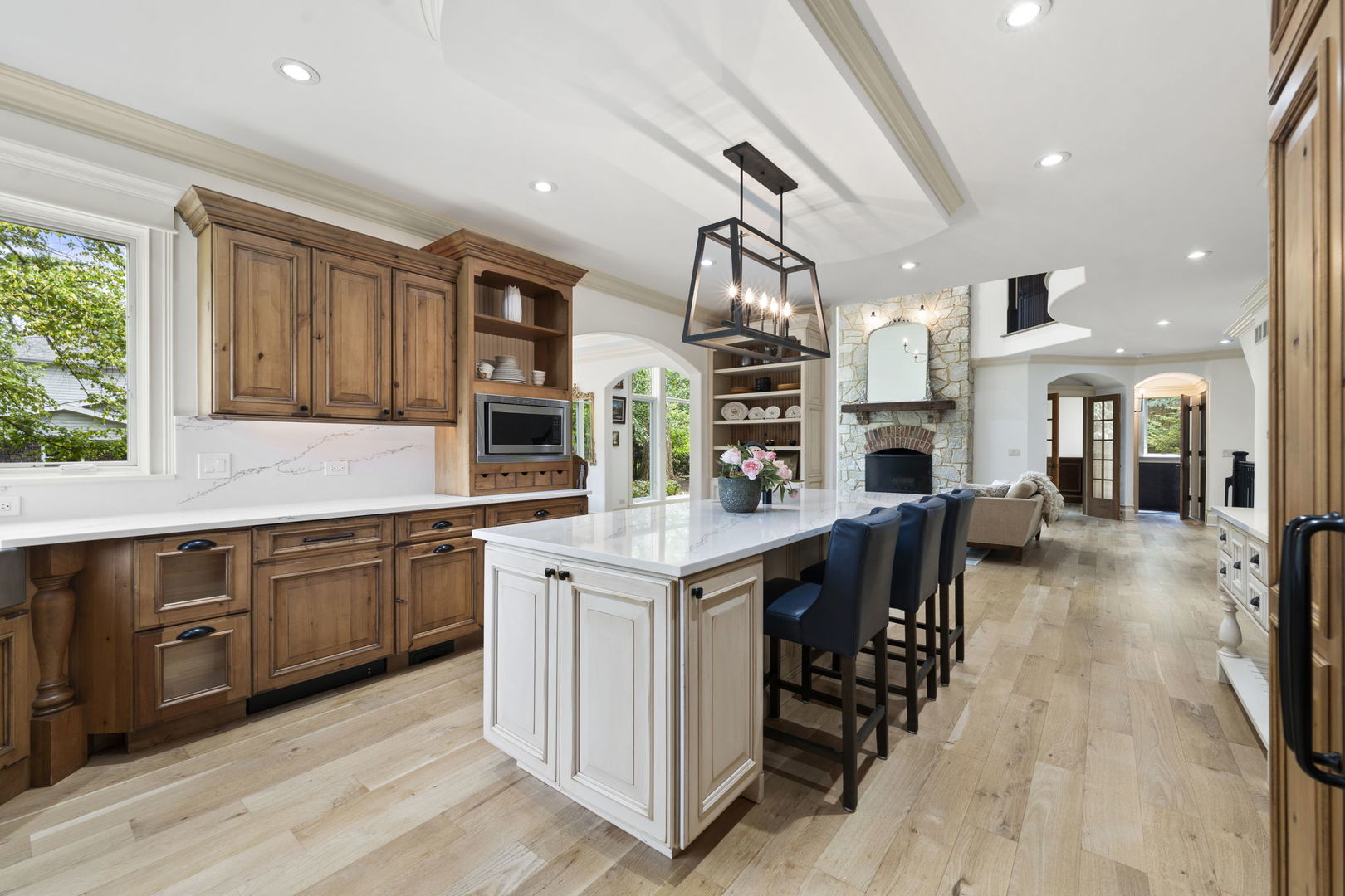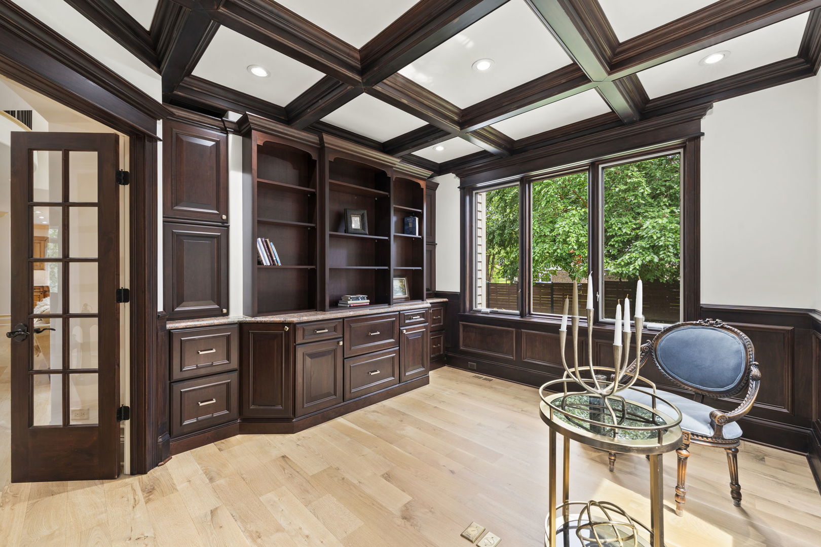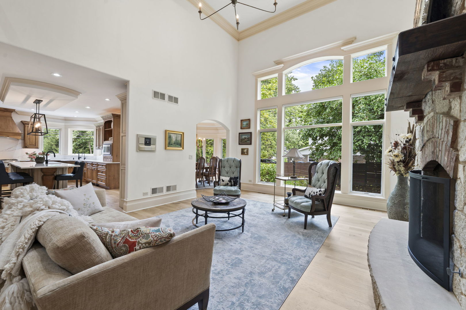 1727 Stoddard – A Masterpiece of Design and Craftsmanship Tucked away on a wooded corner lot, this custom-built estate blends timeless elegance with modern luxury. Built in 2007, the home offers more than 6,000 square feet of exquisitely finished living space across three levels – a rare offering in one of the area’s most sought-after neighborhoods. Step inside and experience a dramatic two-story great room, where soaring ceilings, intricate millwork, and custom cabinetry set the tone for refined living. Every detail is thoughtfully curated – from the sweeping dual-access staircase to the gleaming blonde oak hardwood floors. The gourmet kitchen is a culinary work of art, featuring premium appliances, rich finishes, and a sunlit breakfast room that flows seamlessly into the inviting family room. Formal living and dining rooms, a private den, and dual laundry rooms on the first and second floors offer both elegance and practicality. Upstairs, the luxurious primary suite is a retreat unto itself – complete with a spa-inspired bath, an expansive walk-in closet, and a private exercise room. Three additional bedrooms, including a Jack-and-Jill suite, provide comfort and style for family and guests. The fully finished lower level extends the living space with two more bedrooms, a recreation room, a full bath, and a relaxing sauna. Outside, the paver driveway and patio are framed by professionally landscaped grounds, enhanced by an in-ground sprinkler system. Dual heating and cooling ensure year-round comfort. This is more than a home – it’s a statement of style, comfort, and prestige. Rarely does a residence of this caliber become available.