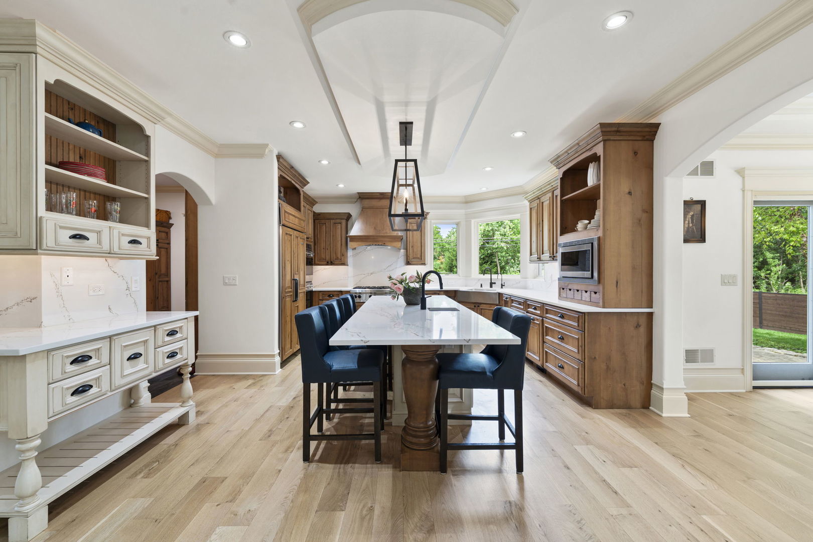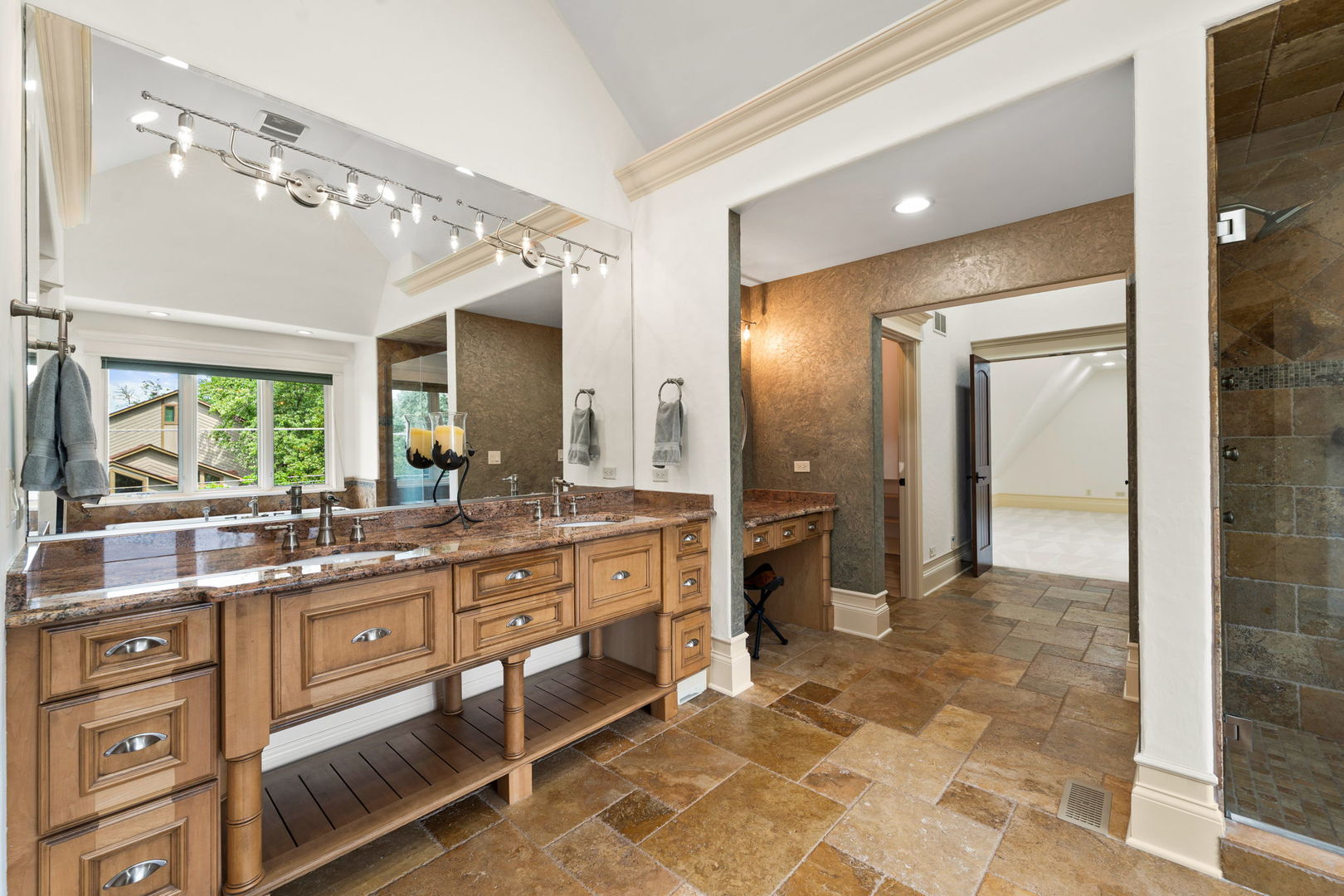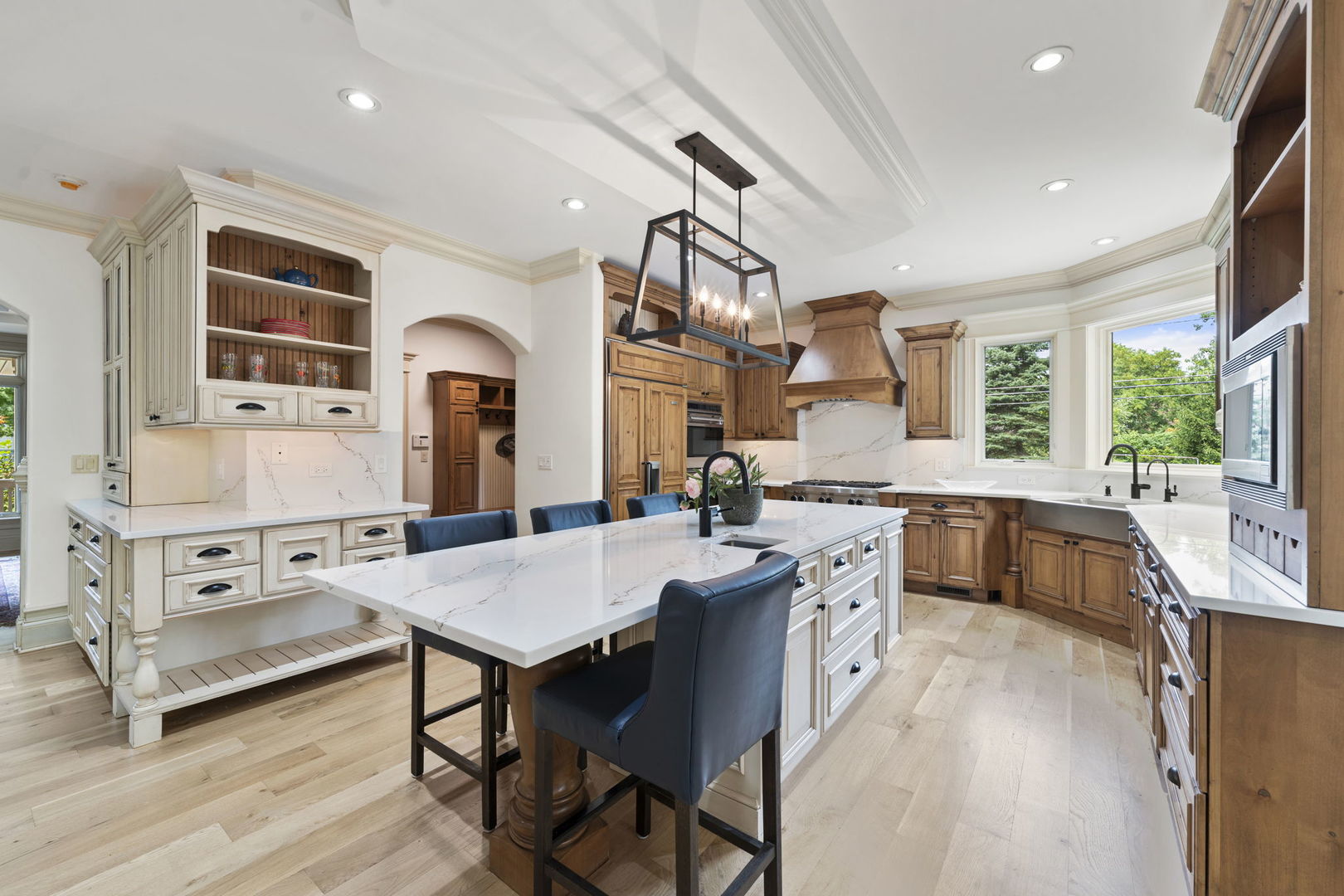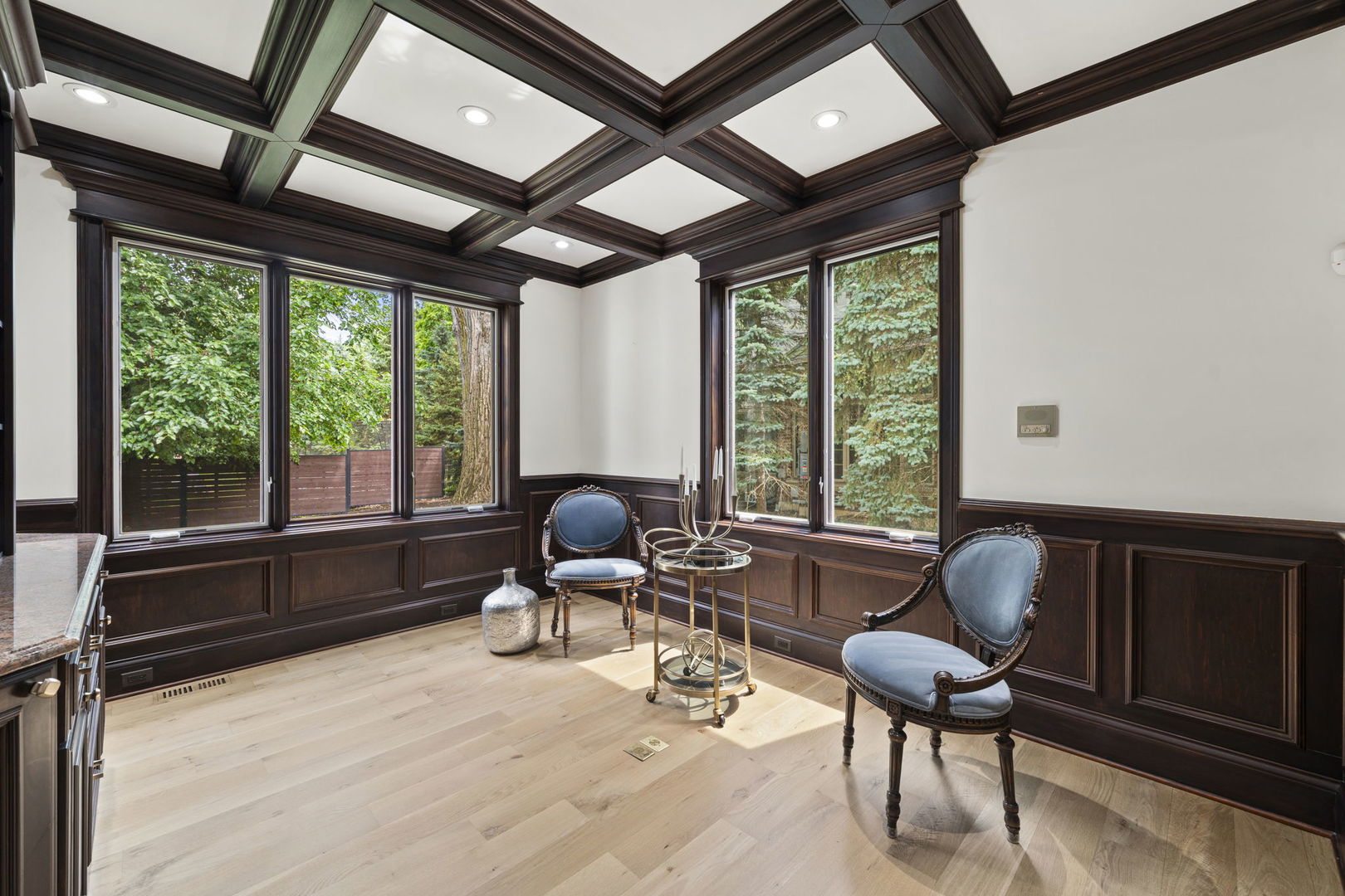 1727 Stoddard – A Masterpiece of Design and Craftsmanship Tucked away on a wooded corner lot, this custom-built estate blends timeless elegance with modern luxury. Built in 2007, the home offers more than 6,000 square feet of exquisitely finished living space across three levels – a rare offering in one of the area’s most sought-after neighborhoods. Step inside and experience a dramatic two-story great room, where soaring ceilings, intricate millwork, and custom cabinetry set the tone for refined living. Every detail is thoughtfully curated – from the sweeping dual-access staircase to the gleaming blonde oak hardwood floors. The gourmet kitchen is a culinary work of art, featuring premium appliances, rich finishes, and a sunlit breakfast room that flows seamlessly into the inviting family room. Formal living and dining rooms, a private den, and dual laundry rooms on the first and second floors offer both elegance and practicality. Upstairs, the luxurious primary suite is a retreat unto itself – complete with a spa-inspired bath, an expansive walk-in closet, and a private exercise room. Three additional bedrooms, including a Jack-and-Jill suite, provide comfort and style for family and guests. The fully finished lower level extends the living space with two more bedrooms, a recreation room, a full bath, and a relaxing sauna. Outside, the paver driveway and patio are framed by professionally landscaped grounds, enhanced by an in-ground sprinkler system. Dual heating and cooling ensure year-round comfort. This is more than a home – it’s a statement of style, comfort, and prestige. Rarely does a residence of this caliber become available.
