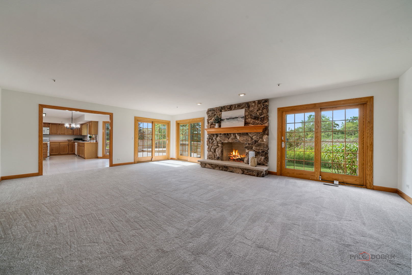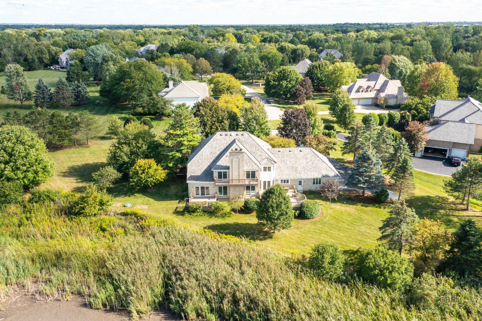 Stunning All-Brick Home on Over 4 Acres!!! AWARD WINNING ELEMENTARY SCHOOLS AND STEVENSON HIGH SCHOOL DISTIRCT! BRAND NEW 2025 CARPET AND NEW 2024 ANDERSEN WINDOWS ON MAIN AND SECOND LEVELS! Nestled in a quiet cul-de-sac, this gorgeous 4 bedroom, 4.1 bath home offers luxury, space, and serene pond views on an expansive 4+ acre lot. Step into the grand two-story foyer and feel immediately at home. Perfect for entertaining, the elegant formal dining and living rooms provide ample space for gatherings. The spacious family room is the heart of the home, featuring a stone gas fireplace and access to the large deck, ideal for indoor-outdoor living. The gourmet kitchen boasts a center island with breakfast bar, abundant cabinetry, a huge walk-in pantry, and a bright eating area with deck access. A highlight of the main level is the private office, leading into a sun-drenched sunroom with vaulted ceilings and deck access – a perfect retreat. A convenient laundry room and half bath complete the main level. Upstairs, your luxurious primary suite awaits, offering a vaulted ceiling, two walk-in closets, a charming brick gas fireplace, and a private balcony with tranquil pond views – perfect for enjoying your morning coffee. The second bedroom features its own private ensuite and walk-in closet, while the third and fourth bedrooms share a spacious hall bath. The finished basement includes a full bath and offers endless potential – create your dream rec room, gym, theater, or guest suite. Additional highlights include a 3-car garage, abundant storage, and proximity to Buffalo Creek Forest Preserve – perfect for nature lovers! This one-of-a-kind home offers privacy, elegance, and space – don’t miss your chance to make it yours!