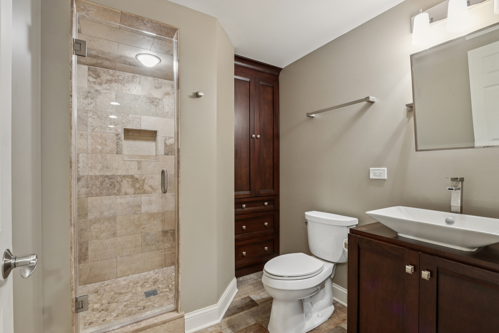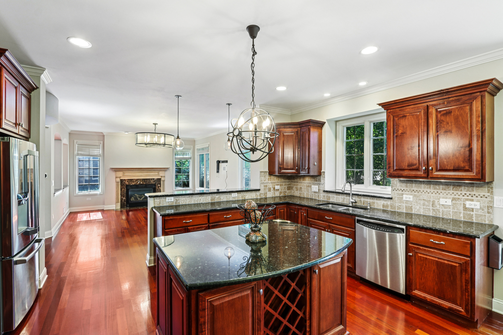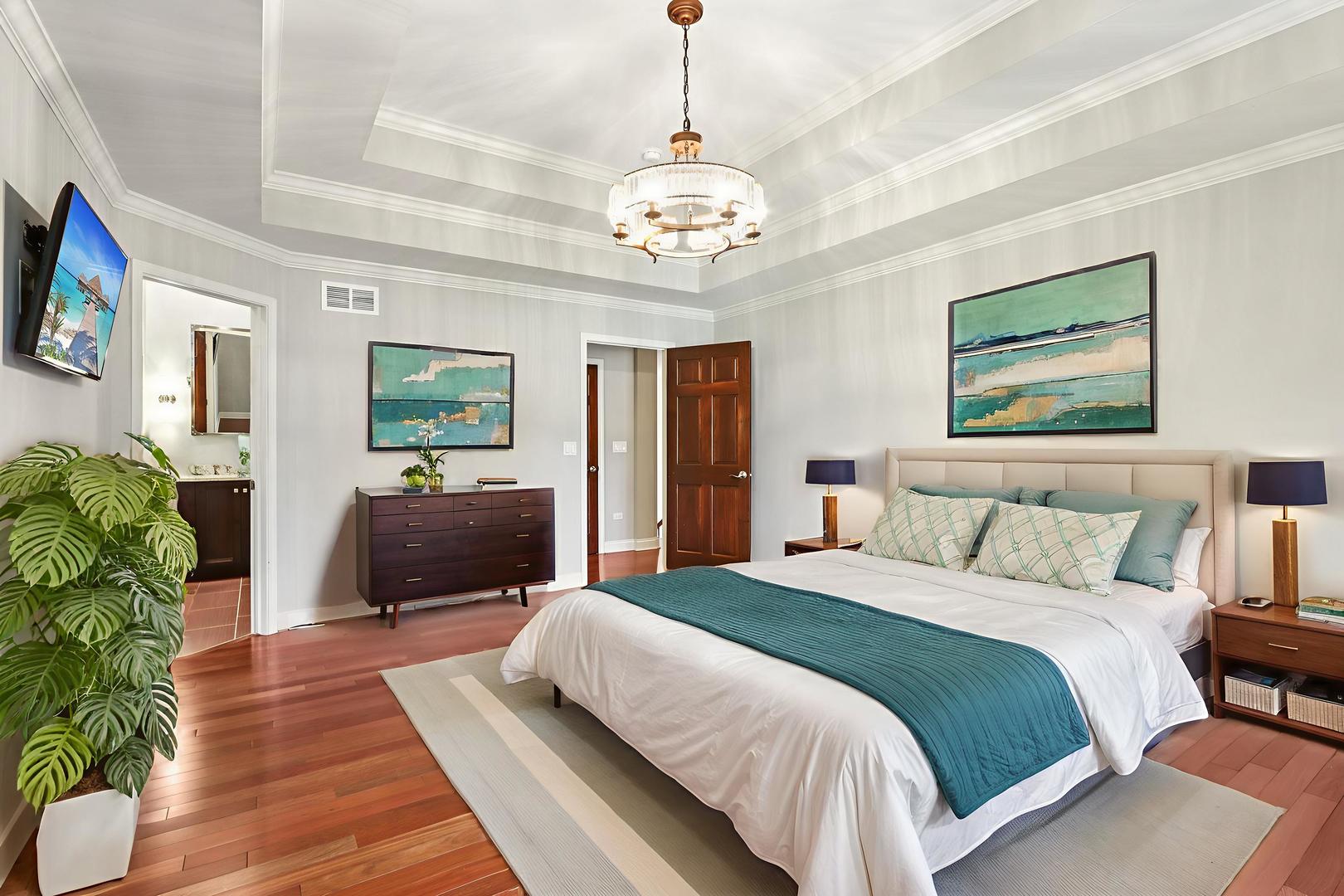 Prepare to be impressed by this exceptional 3-bedroom, 3.1-bath end-unit townhome, ideally situated in the heart of La Toscana. Backing to a lush tree line and neighboring homes, this residence offers enhanced privacy and tranquility in a premium interior location. Step inside to discover a home rich in high-end finishes. Freshly painted in a neutral palette, the residence features gleaming hardwood floors, granite countertops, stainless steel appliances, elegant crown molding, and Pella windows throughout. Each bedroom features a walk-in closet equipped with custom organizers for optimal storage and functionality. The open-concept design showcases a spacious family room with a direct-vent fireplace that flows seamlessly into the kitchen-perfect for entertaining. Enjoy soaring volume ceilings and oversized windows that flood the home with natural light and showcase serene views. The fully finished basement is a showstopper, equipped with state-of-the-art Control4 smart home technology and entertainment system, wet bar includes two compact refrigerator, and a compact dishwasher, full bath, plus an unfinished storage/mechanical area for added convenience. Retreat to the luxurious Pottery Barn-inspired primary suite, featuring a completely renovated spa-like bath with a walk-in rain shower, body sprayers, soaking tub, and private water closet. Additional highlights: 2-car attached garage, New AC (2023), Trex deck boards (2023), New roof (2024), Hot Water heater(2024), Video doorbell, Superior construction with double-insulated walls for soundproofing and energy efficiency! Enjoy true maintenance-free living with a top performing HOA that covers snow removal, landscaping, lawn care, exterior wood trim, decks, irrigation system, and more. Located in award-winning Naperville School District 203 and just 10 minutes from the Metra station, Riverwalk, and vibrant downtown Naperville shopping and dining.