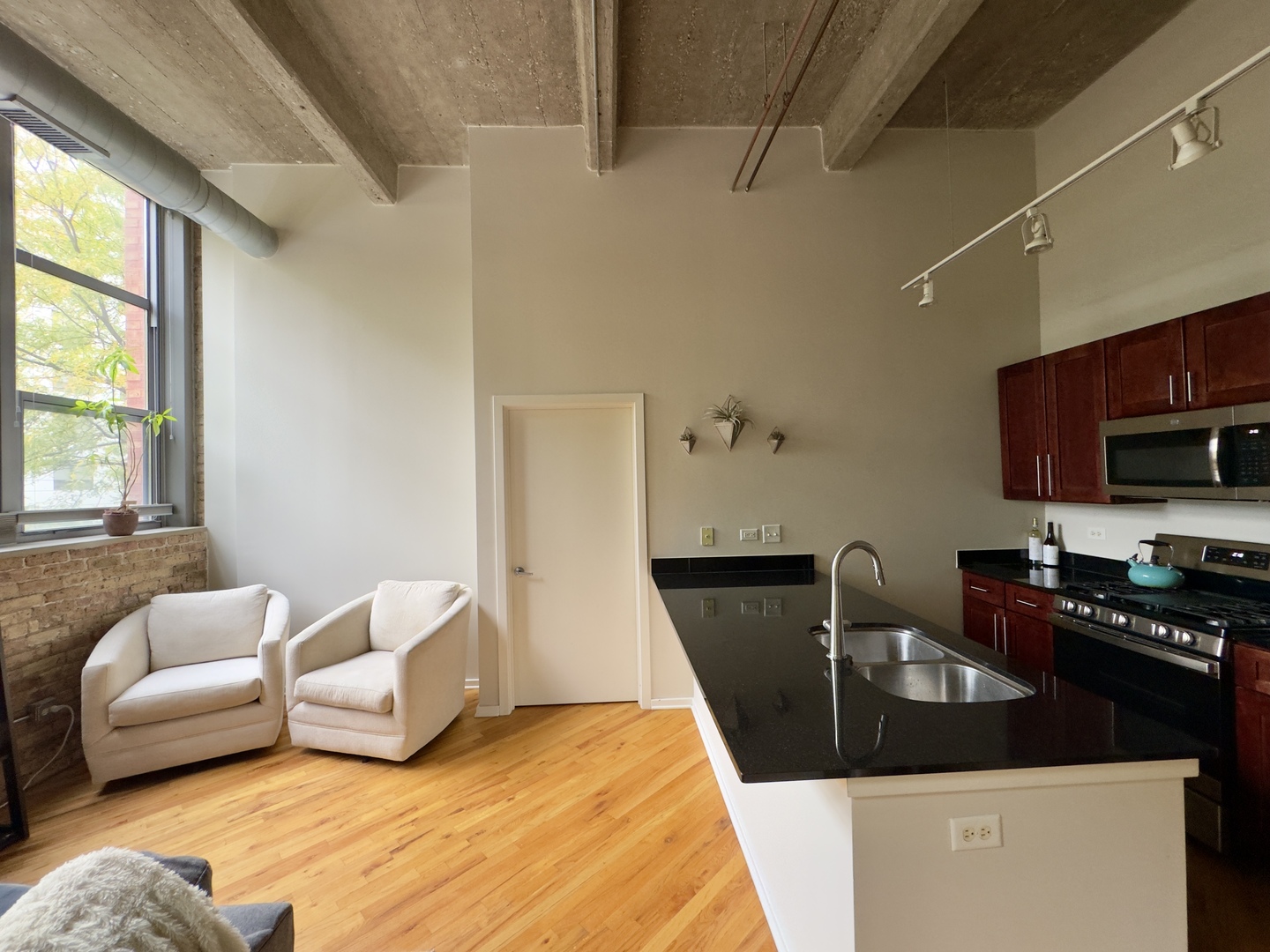 The concrete loft you’ve been waiting for in Bucktown. Towering ceiling heights of nearly 14 ft are only the beginning. Granite counters, stainless steel appliances (gas range), and in unit laundry check the boxes of what you expect, but theres so much more. Featuring uninhibited Western exposure and enormous windows in every living space, this is a loft that shines with natural light all day long. The split floor plan includes a REAL fully enclosed second bedroom along with a second full bath. Perfect for roommates, family, guests, or a flex space to work from home. This is a full amenity building: fitness center, party room, landscaped courtyard, sundeck with 3 natural gas grills, and a secure lobby with Amazon package lockers. Heated garage parking is included and it’s just steps away. Professionally managed with 24hr maintenance. With a premium exposure, end of the hallway location, and parking space in the building right below the unit, this condo lives like a luxury hotel. Just steps away from the 606, Club Lucky, Lottie’s, 6 corners, and all that Bucktown has to offer!