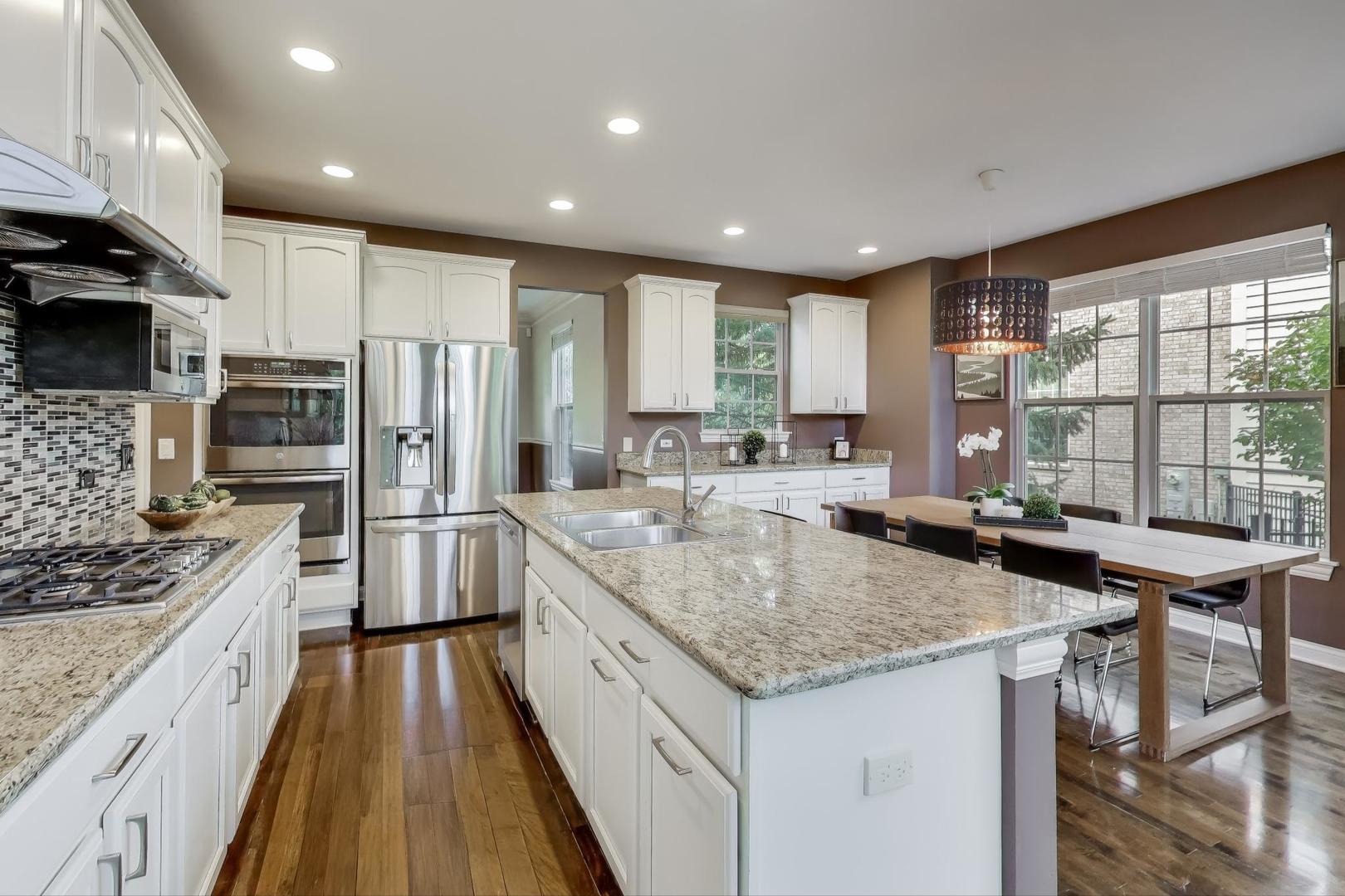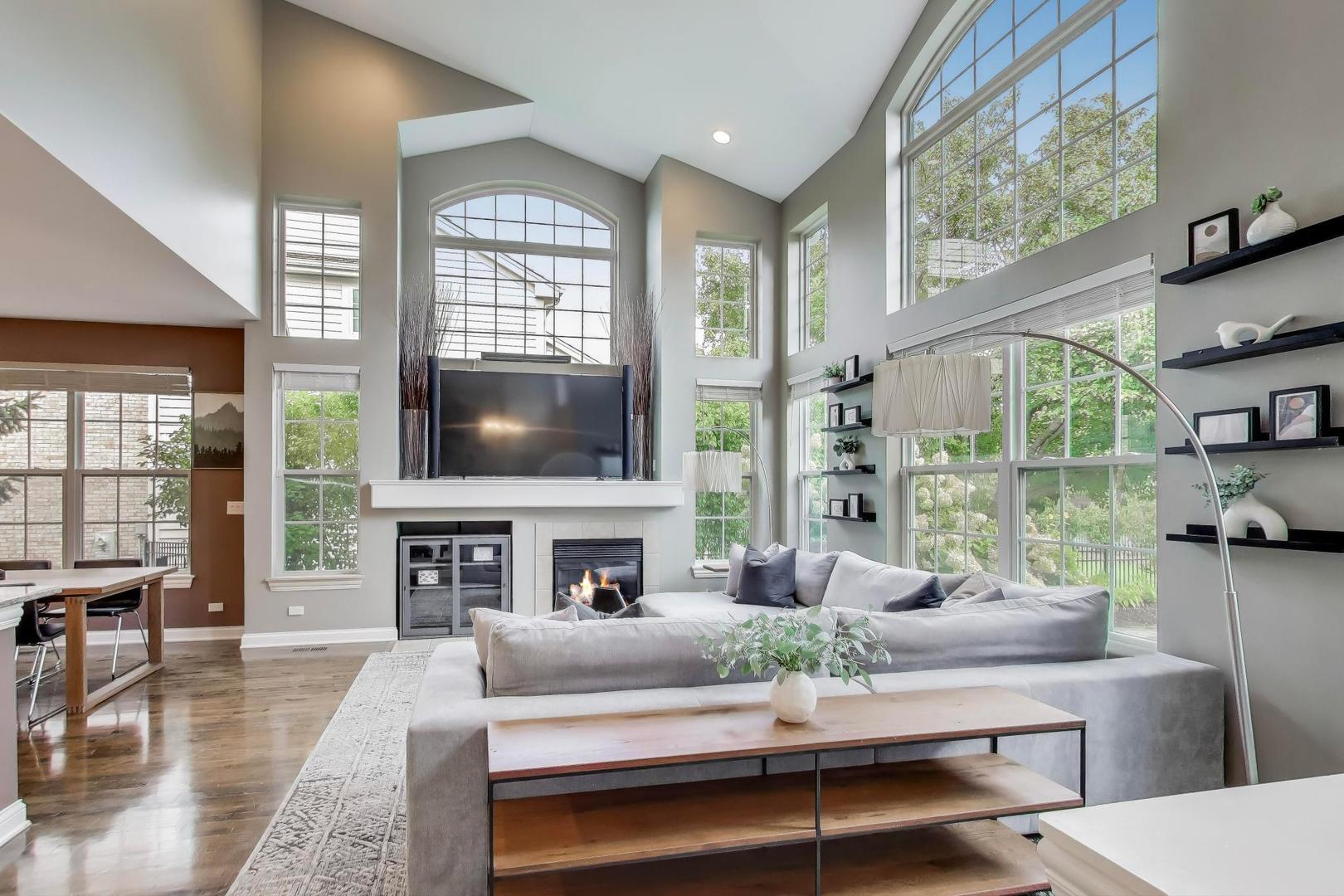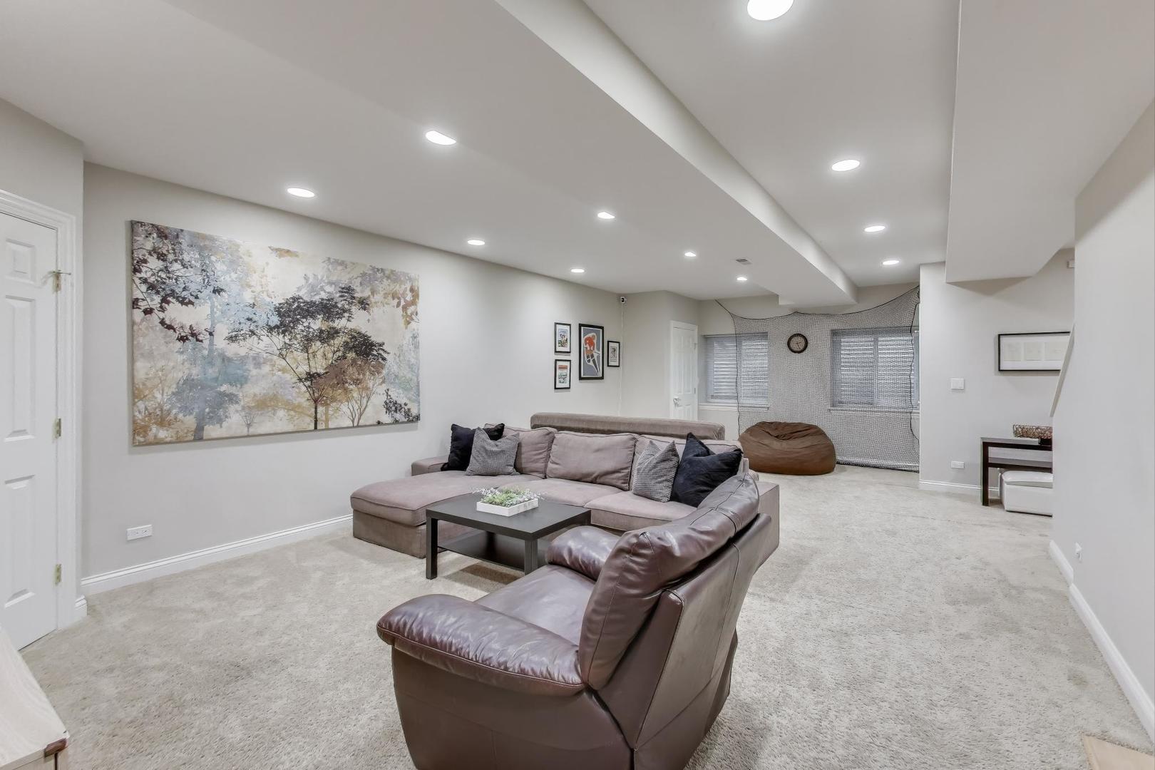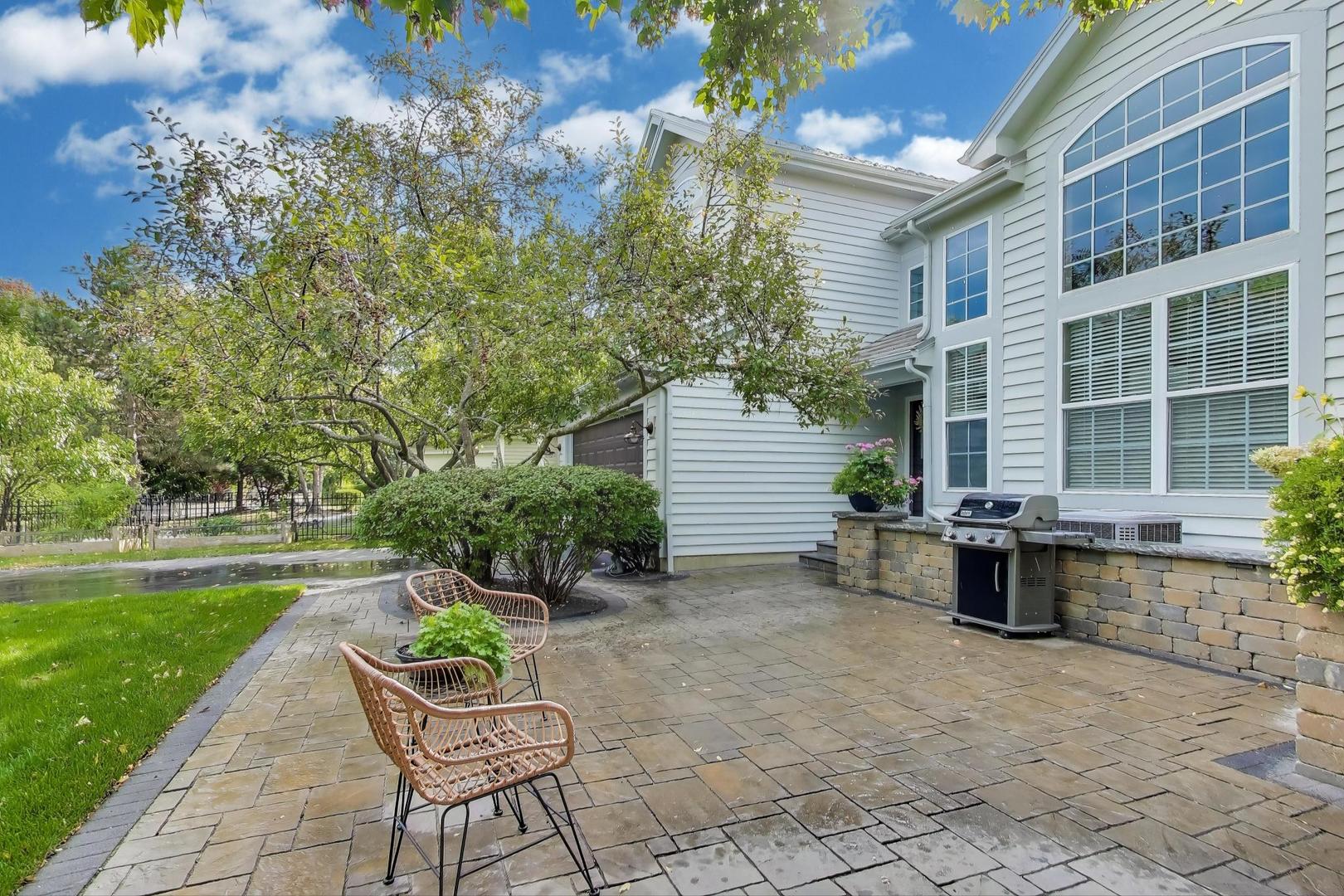 Perfectly positioned in the heart of The Glen, this residence opens with a welcoming front porch and a dramatic two-story foyer with soaring ceilings, setting the stage for elegance throughout. Expansive living and dining rooms provide the perfect backdrop for entertaining, while sleek hardwood floors and modern finishes enhance every space. The chef’s kitchen features a large center island with seating, double ovens, high-end appliances, and a pantry, flowing seamlessly into the grand family room with cathedral ceilings, floor-to-ceiling windows, and a striking fireplace overlooking the backyard. A versatile main-level office, convenient laundry/mudroom, and an elegant powder room add comfort and functionality. The primary suite is a serene retreat with cathedral ceilings, an impressive walk-in closet, and a spa bath designed for relaxation, complete with a whirlpool tub, separate walk-in shower, and dual vanities. Three additional bedrooms and a full bath complete the second level. The finished lower level offers over 1,500 square feet of recreation space with a large entertainment area, 5th bedroom currently being used as gym, full bath, and generous storage. Outdoors, a landscaped yard and paver patio provide space for entertaining, complemented by a two-car attached garage. This home blends luxury, comfort, and convenience. This home blends luxury, comfort, and convenience, situated in The Glen’s premier community just moments from parks, shopping, dining, and the Metra. It is also located within highly sought-after Districts 34 and 225, serving Westbrook and Glen Grove Elementary, Attea Middle School, and the award-winning Glenbrook South High School. Additional highlights include a new roof installed in 2021 with DaVinci Bellaforte Shake composite materials, offering timeless curb appeal and a 50-year life expectancy.