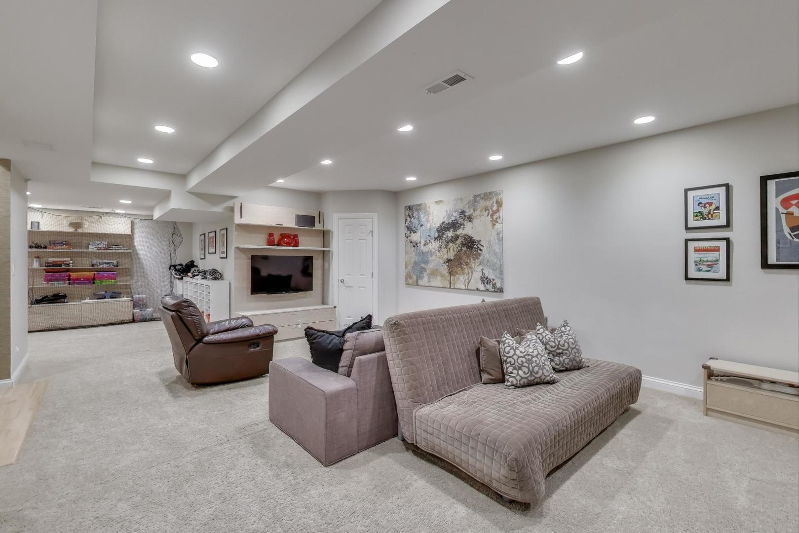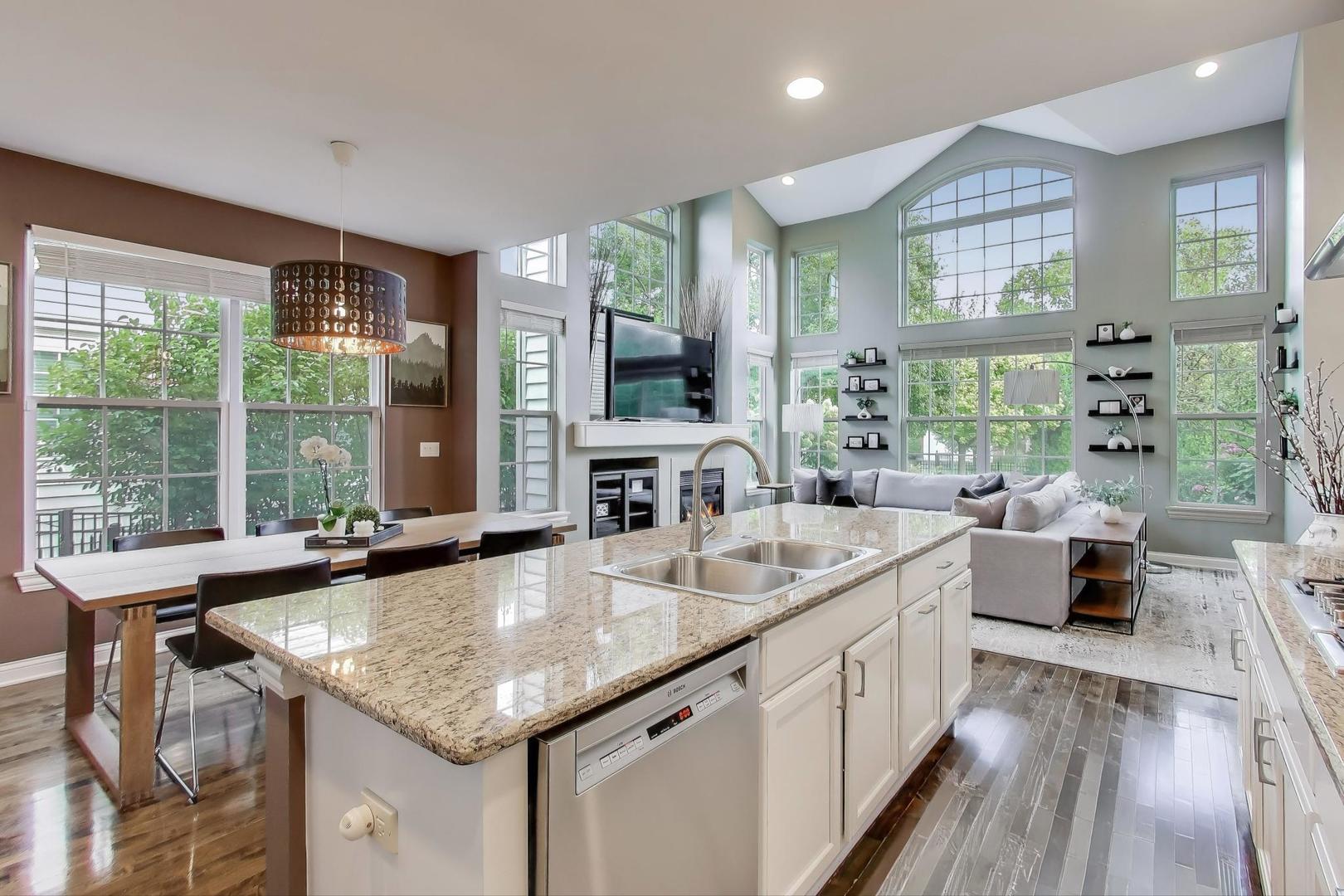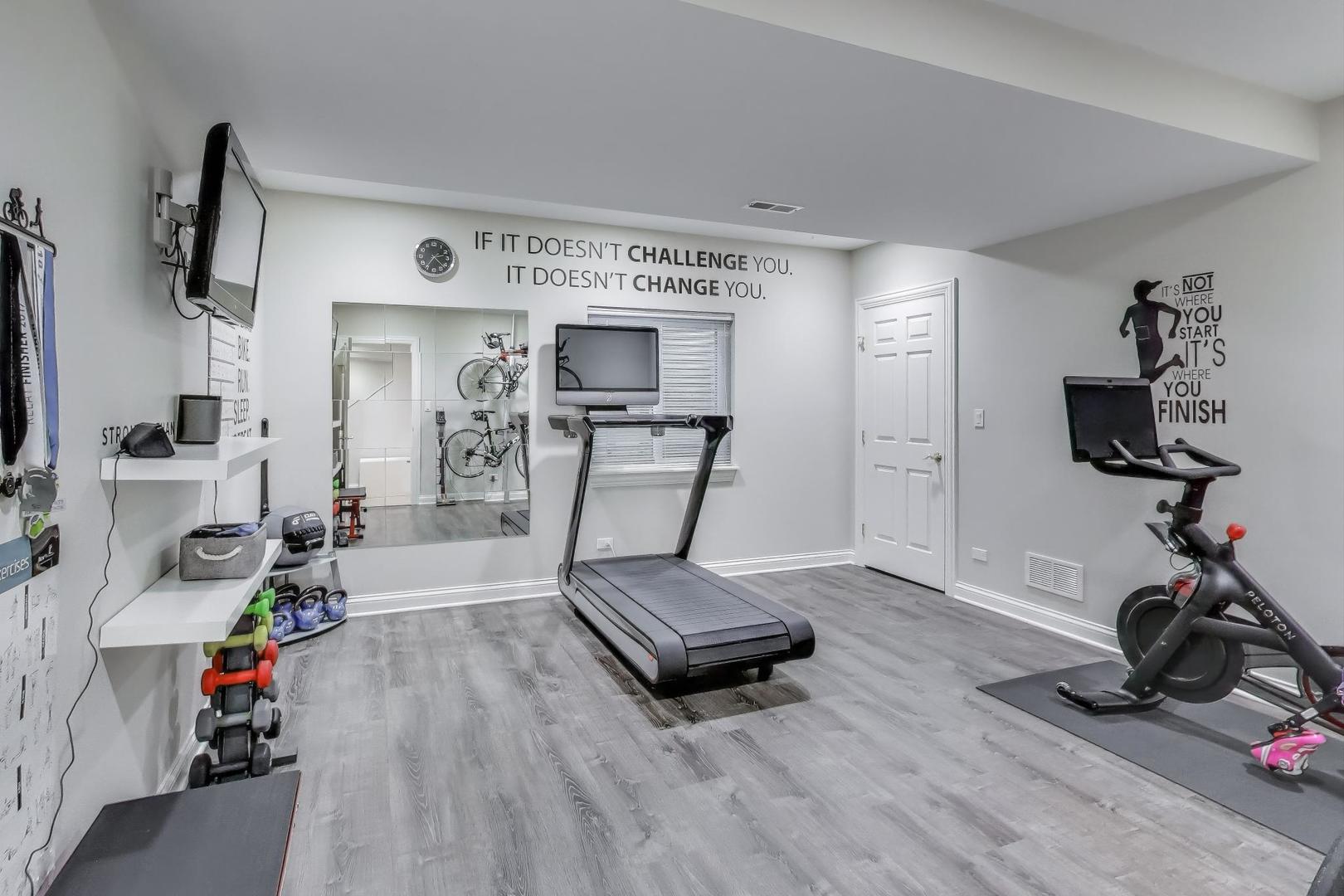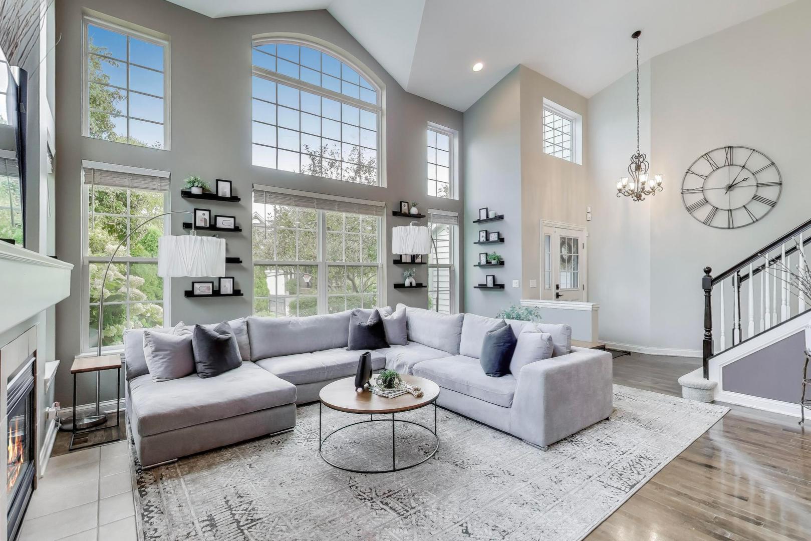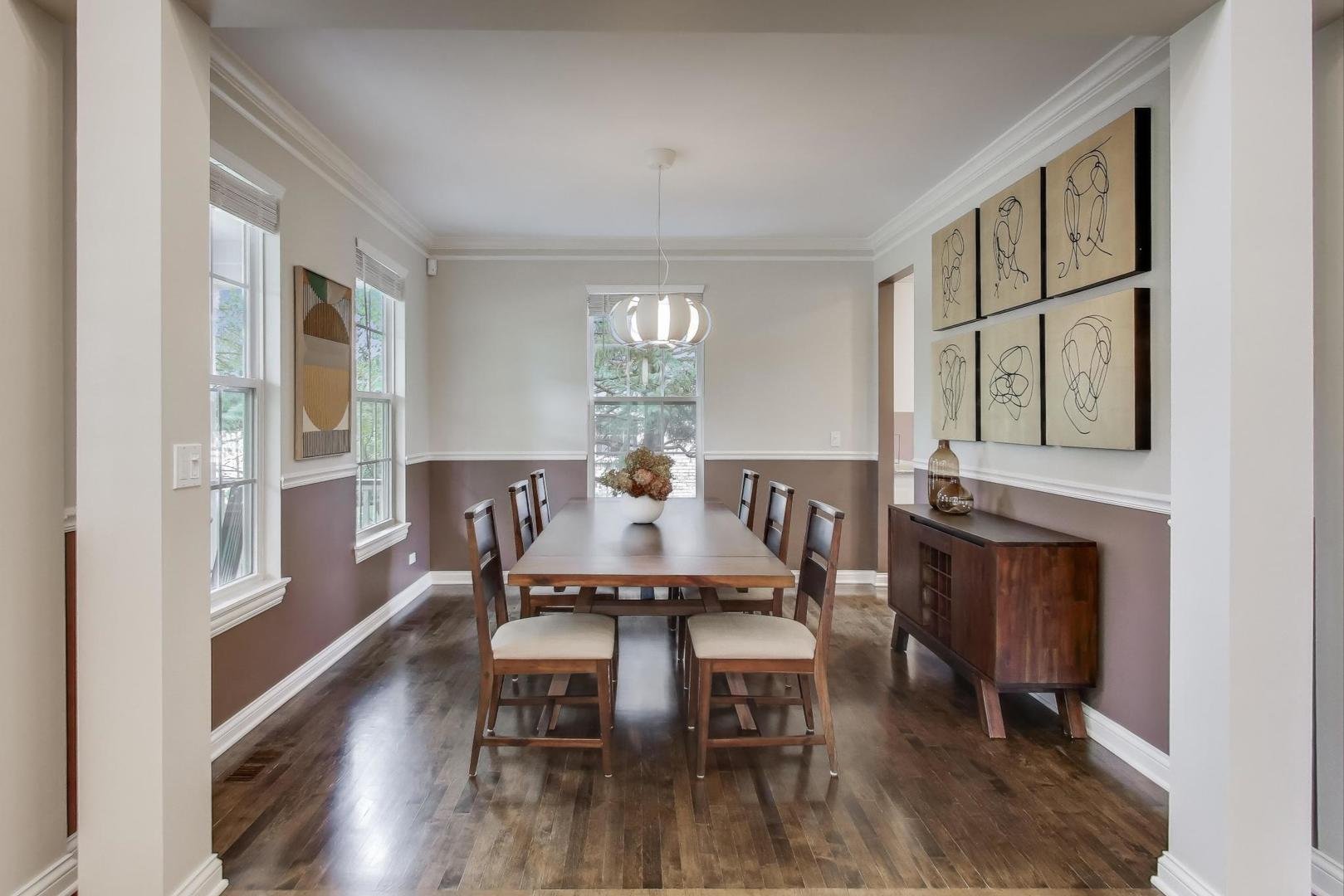 Perfectly positioned in the heart of The Glen, this residence opens with a welcoming front porch and a dramatic two-story foyer with soaring ceilings, setting the stage for elegance throughout. Expansive living and dining rooms provide the perfect backdrop for entertaining, while sleek hardwood floors and modern finishes enhance every space. The chef’s kitchen features a large center island with seating, double ovens, high-end appliances, and a pantry, flowing seamlessly into the grand family room with cathedral ceilings, floor-to-ceiling windows, and a striking fireplace overlooking the backyard. A versatile main-level office, convenient laundry/mudroom, and an elegant powder room add comfort and functionality. The primary suite is a serene retreat with cathedral ceilings, an impressive walk-in closet, and a spa bath designed for relaxation, complete with a whirlpool tub, separate walk-in shower, and dual vanities. Three additional bedrooms and a full bath complete the second level. The finished lower level offers over 1,500 square feet of recreation space with a large entertainment area, 5th bedroom currently being used as gym, full bath, and generous storage. Outdoors, a landscaped yard and paver patio provide space for entertaining, complemented by a two-car attached garage. This home blends luxury, comfort, and convenience. This home blends luxury, comfort, and convenience, situated in The Glen’s premier community just moments from parks, shopping, dining, and the Metra. It is also located within highly sought-after Districts 34 and 225, serving Westbrook and Glen Grove Elementary, Attea Middle School, and the award-winning Glenbrook South High School. Additional highlights include a new roof installed in 2021 with DaVinci Bellaforte Shake composite materials, offering timeless curb appeal and a 50-year life expectancy.
