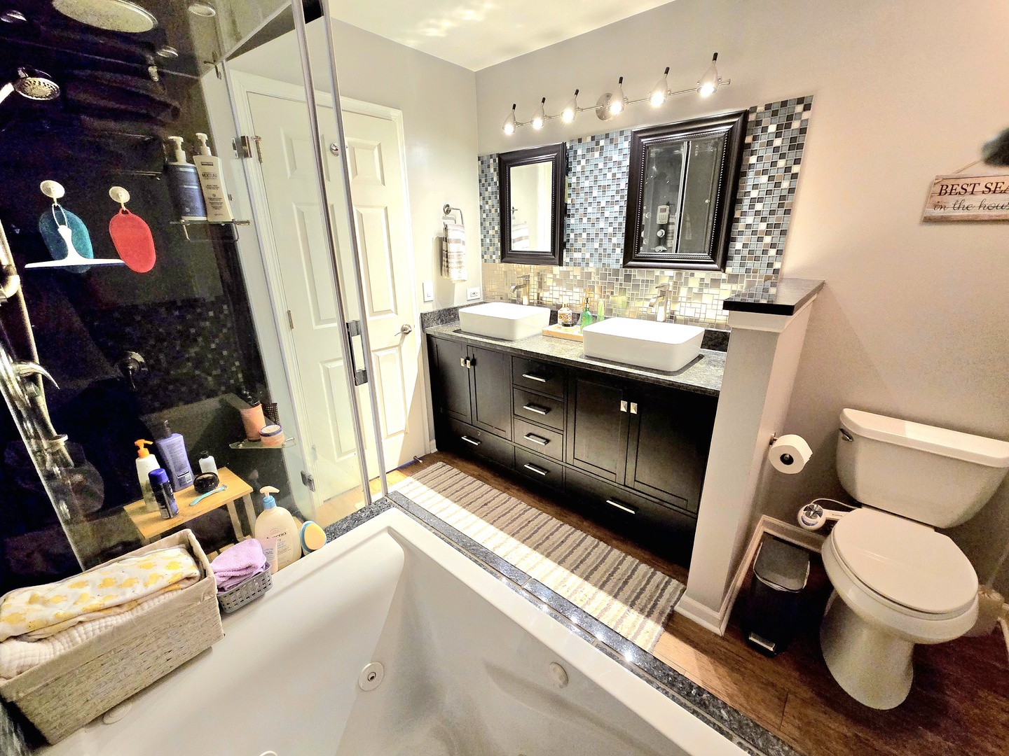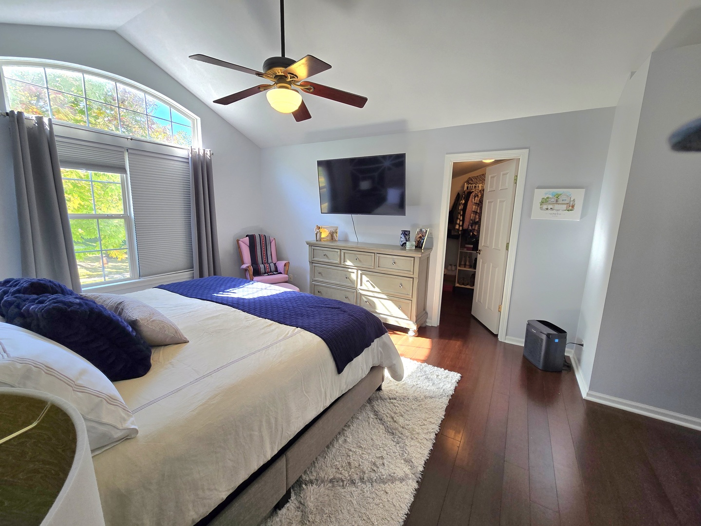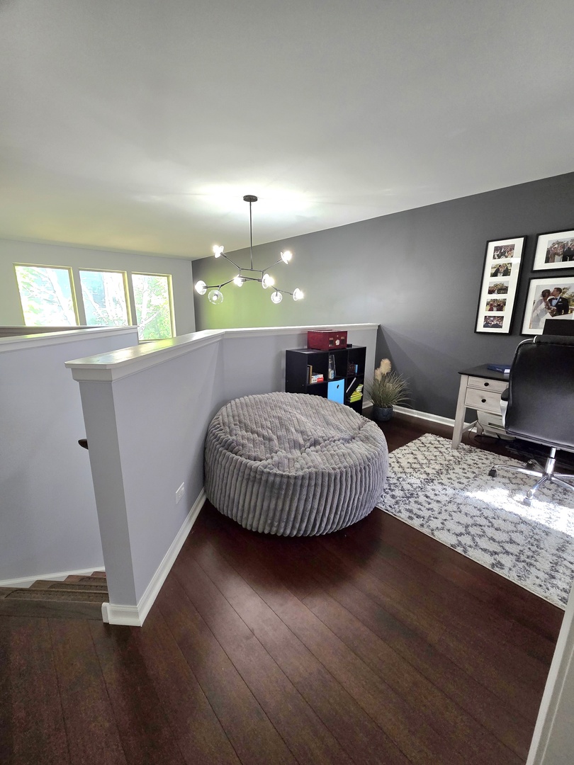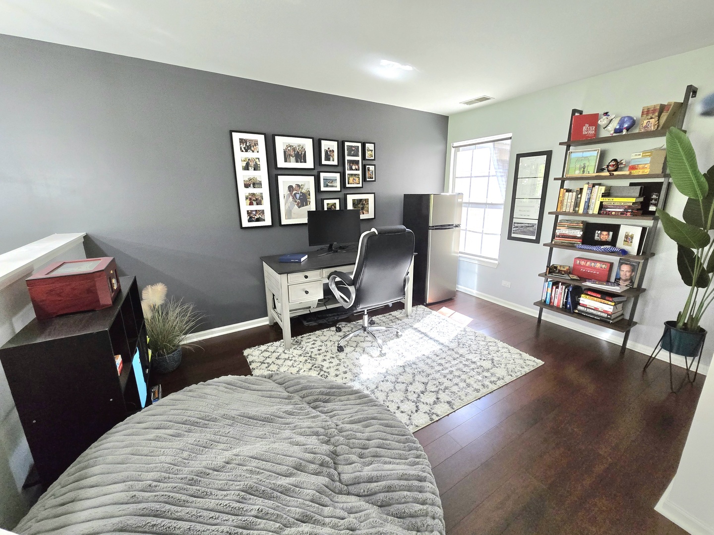 Stunning 2 story townhome in sought after Hidden Lake subdivision! Gleaming hardwood flooring throughout! Very large spacious Kitchen featuring Granite Counters, Stainless appliances, tile backsplash, prep island and a huge pantry closet. Living room has 2 story windows vaulted ceiling, electric fireplace and trendy light fixture. Large master bedroom with gorgeous custom wainscot wall design, large walk in closet with custom shelves/racks. Remodeled master bath with soaker tub, steam shower, dual vanity sinks have recessed cabinets surrounded by beautiful tile work. 2nd full hall Bath has been remodeled with trendy updates. Custom wainscot in the Dining room and Living room too. 2nd floor laundry with washer/dryer for extra convenience. 2nd floor Open area works great for a home office/loft. Full basement finished nicely! Epoxy flooring in garage! Low monthly HOA. New roof in 2022 Walking paths throughout subdivision of Green Trails. Gazebo & lake just steps from this gorgeous home. Peaceful setting tucked away near the 3rd hole of 7 Bridges 18 hole Golf Course. WoodGlen Park has 11 acres of Public park with baseball diamonds, soccer field, playground, picnic area and miles of walking/bike trails. Just minutes to the Metra trains, I355, I88 and Benedictine.