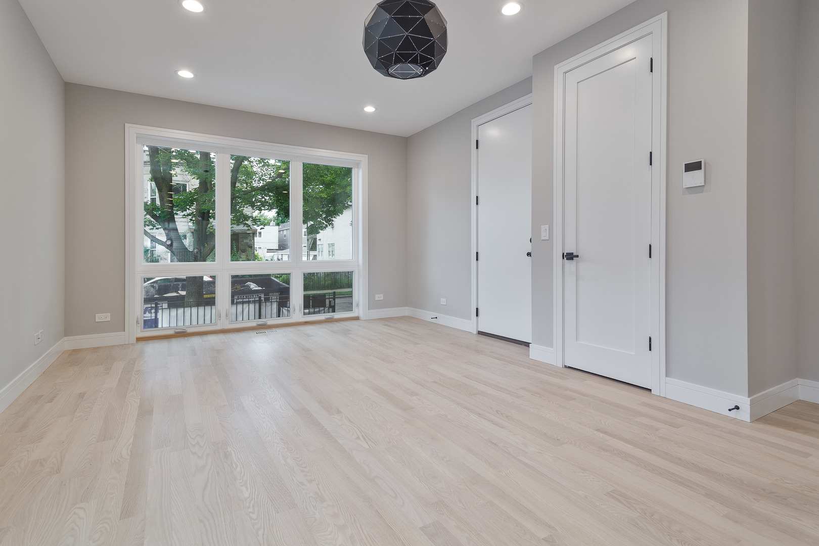 Stunning new construction 3 bed/2.1 bath duplex down with fantastic indoor and outdoor space! Expertly crafted two unit building by top Chicago developer. Main-level duplex down with open concept main-level living area, lower-level sleeping quarters, and huge covered deck with outdoor fireplace. Sun filled living/dining area with oversized front windows. Combined kitchen/family room perfect for entertaining. Eat-in kitchen features modern flat panel cabinetry, quartz countertops, island, butler pantry with sink and beverage center, and Bosch appliance package. Adjoining family room with patio doors to covered deck with outdoor fireplace. Lower-level primary suite with luxury bath featuring heated flooring, free standing tub, dual vanity, toilet room, and a frameless glass shower + WIC. Two additional bedrooms, Jack and Jill bath with dual sinks and tub, laundry with washer/dryer, and mechanicals complete the unit. Detached garage with one space per unit + option for roof deck. Awesome location in Logan/Humboldt close restaurants, shopping, groceries, the 606 trail, 200-acre Humboldt Park, other great neighborhoods, and much more!