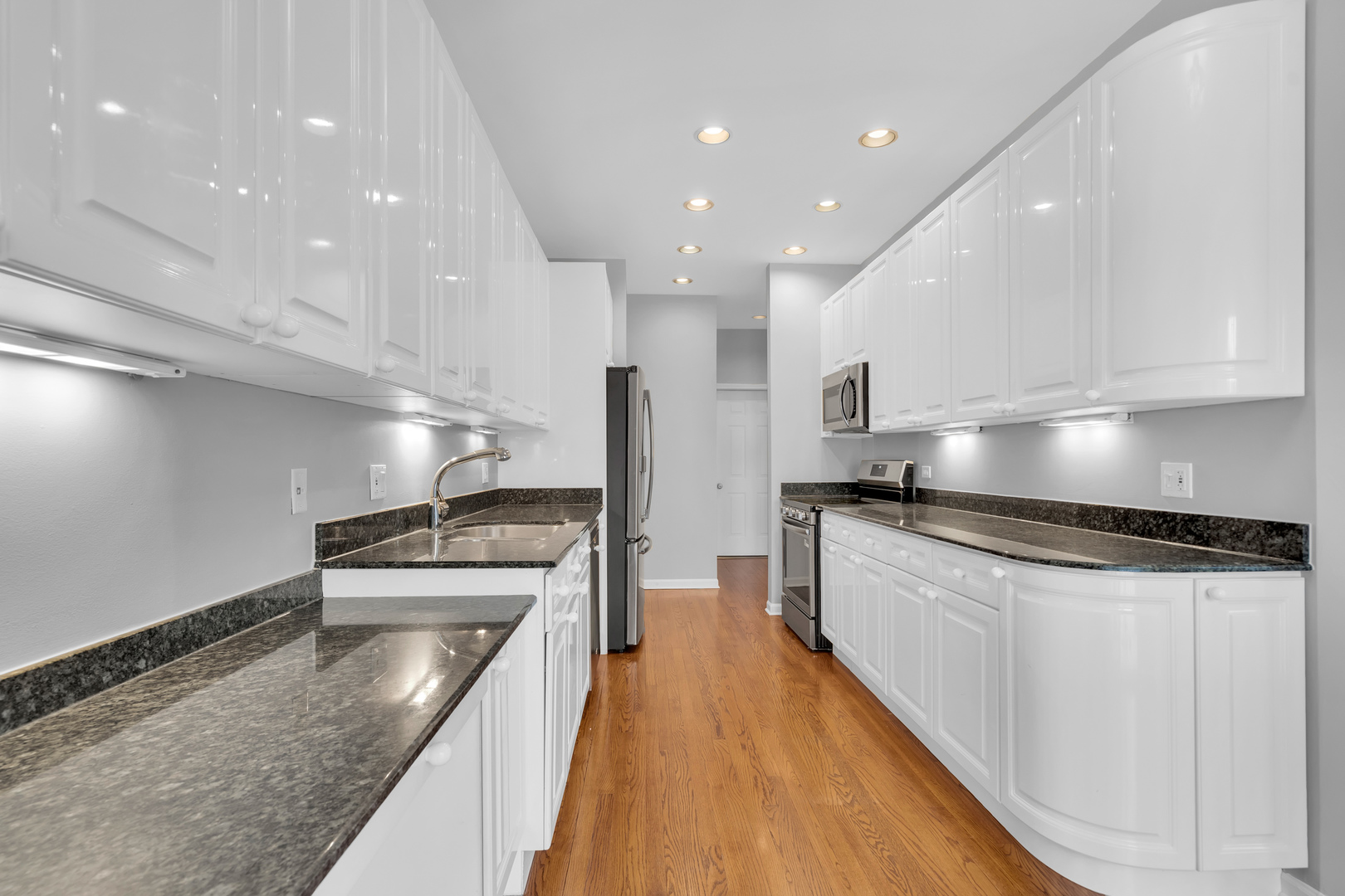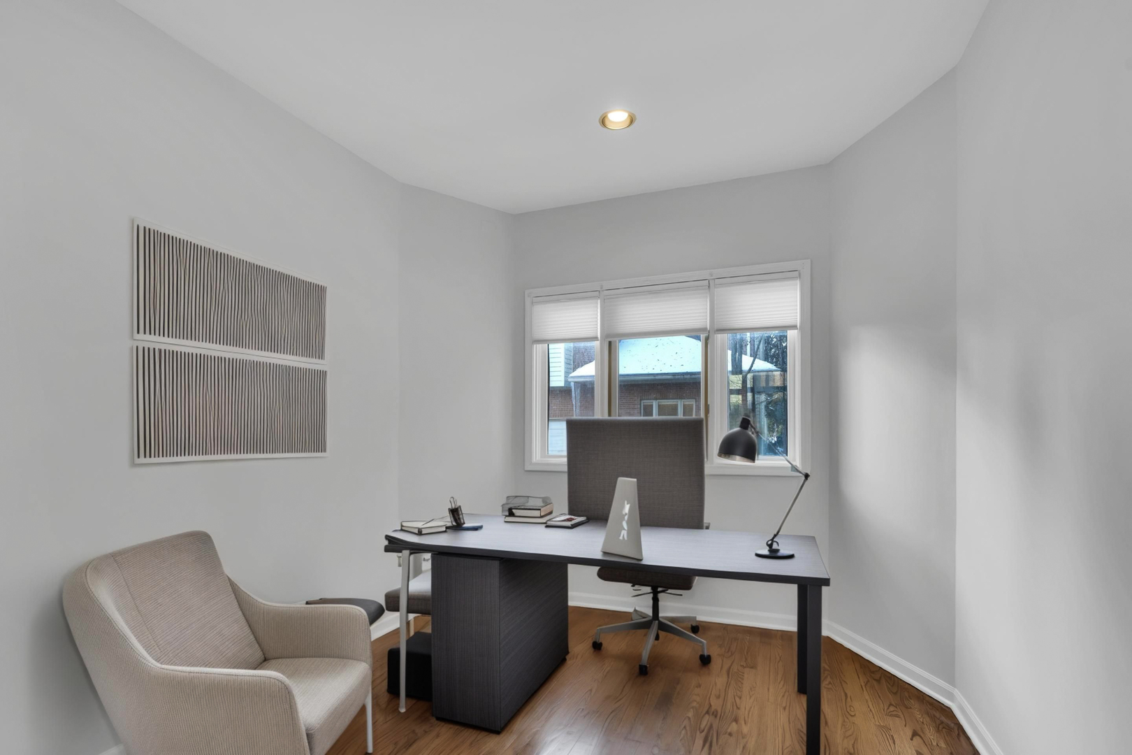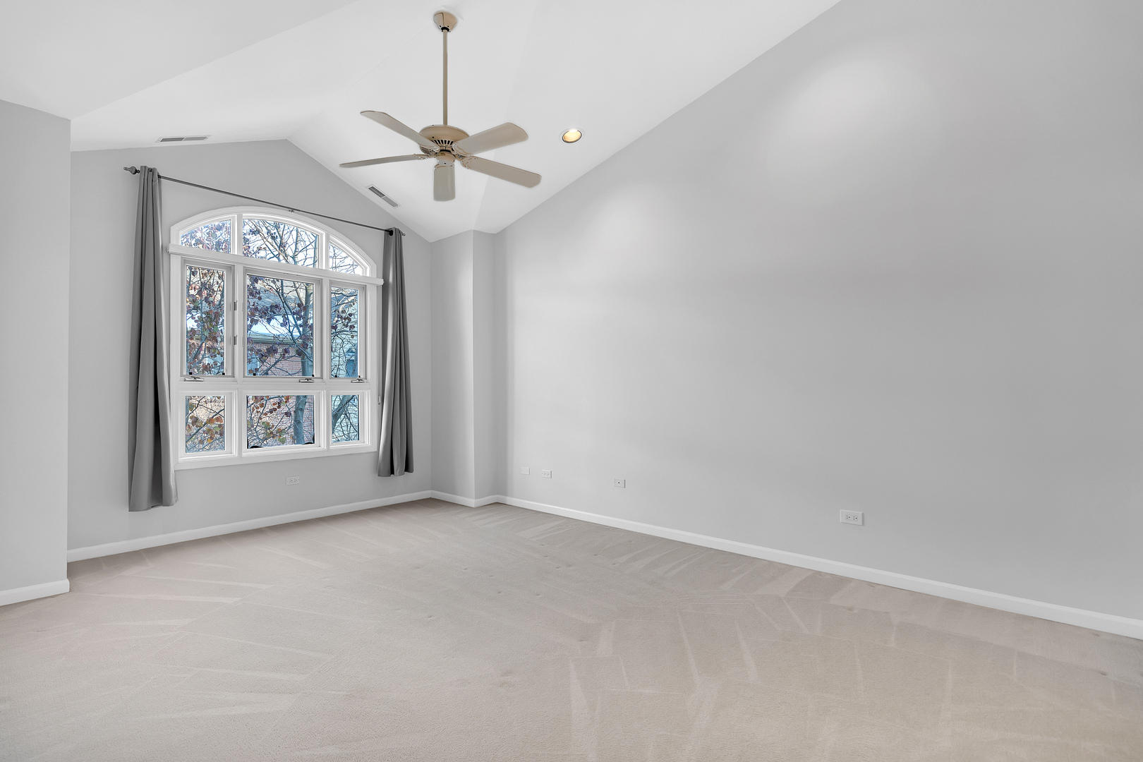 Welcome to this beautifully updated deluxe two-story townhome, ideally located in the heart of Glenview. The open-concept main level features an inviting foyer with a double guest coat closet, leading to a spacious living and dining area highlighted by dramatic 25-foot ceilings, a gas fireplace, and a stunning Palladian window that fills the home with natural light and offers a seamless connection to the outdoors. The bright, all-white kitchen is appointed with granite countertops, stainless steel appliances, abundant cabinetry with under-cabinet lighting, and a pantry. A charming breakfast area with sliding glass doors opens to a private patio, perfect for indoor-outdoor living. Gleaming hardwood floors extend throughout the main level, complemented by a versatile first-floor den or home office. The primary suite features vaulted ceilings, a walk-in closet, and a spa-inspired bath with double vanity, whirlpool tub, and separate shower. Convenient second-floor laundry adds everyday ease. The fully finished basement offers a spacious recreation or family room, a full bath with shower, and a large storage area. The entire home has been freshly painted and is truly move-in ready. Ideally located near shopping, dining, parks, The Glen, Metra, and within award-winning school districts. A pleasure to show.