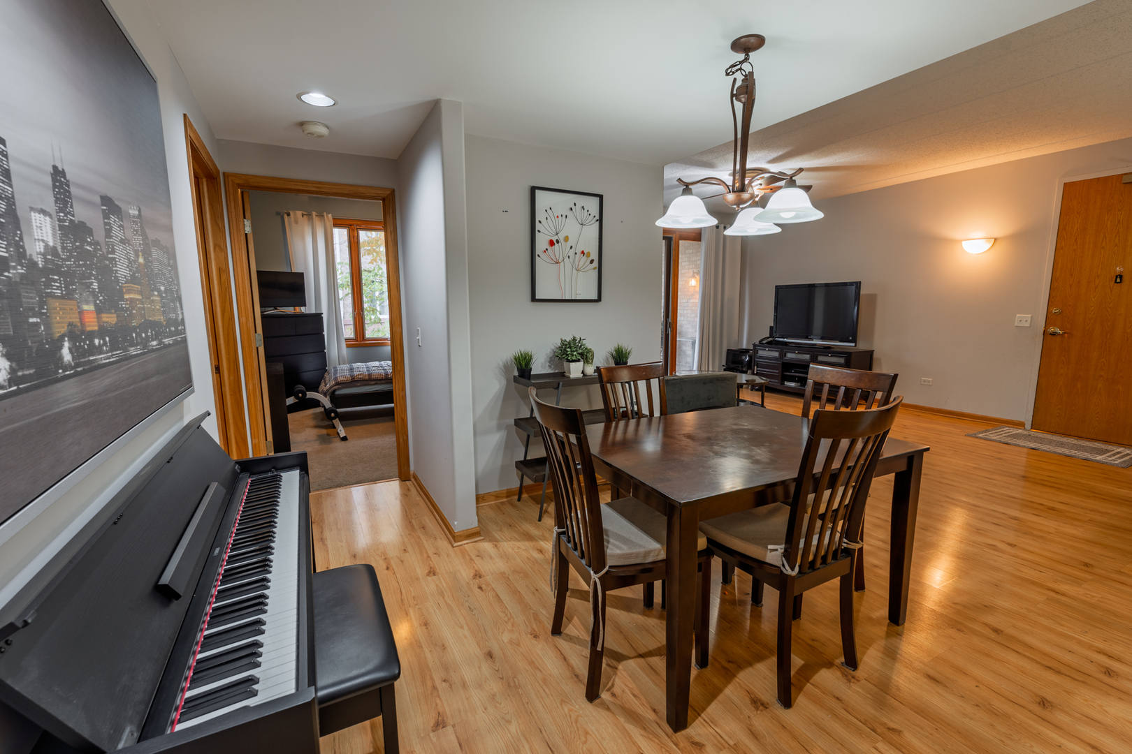 Pride of Ownership Shines in This Beautifully Maintained Aspen Model! Welcome home to this bright and spacious 2-bedroom, 2-bath condo in the highly desirable Park Ridge Pointe community. Impeccably cared for, this clean and move-in ready home features a modern open layout with 42″ oak cabinets, ceramic tile floors in the kitchen, and newer laminate flooring in the dining and living areas. The home showcases solid oak doors and trim throughout, adding warmth and charm to every room. Step out onto your private balcony off the living room-perfect for relaxing or enjoying morning coffee. The primary suite offers great space and a private bath, while the second bedroom is ideal for guests or a home office. Enjoy the convenience of an in-unit full-size washer and dryer, heated garage parking, and extra storage. Located close to guest parking in a beautifully landscaped, pet-friendly complex, this unit offers the perfect blend of comfort, convenience, and community. Minutes from shopping, dining, expressways, and everything Park Ridge has to offer. A true pleasure to show-clean, bright, and move-in ready!