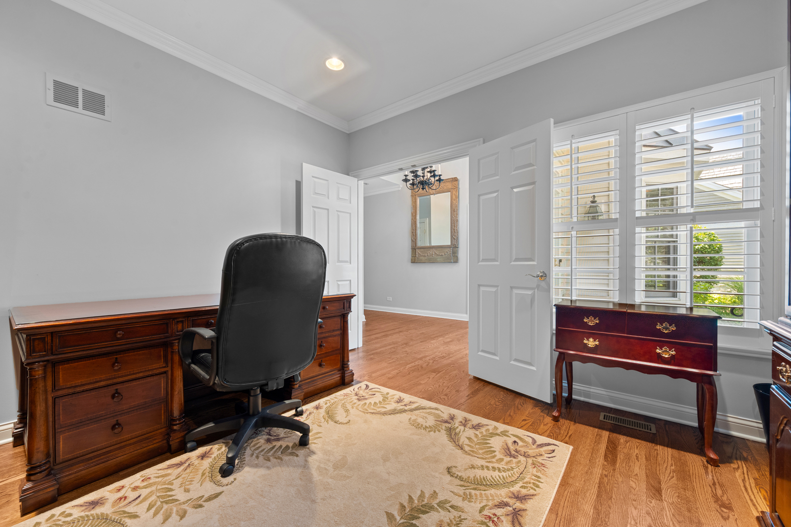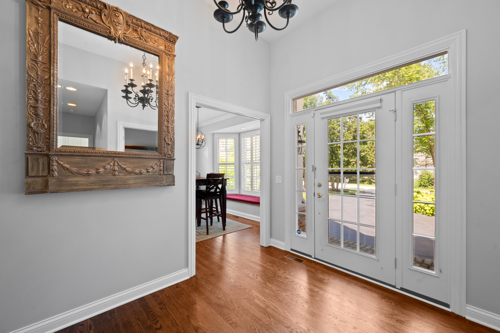 Rarely available ranch-style townhome in the sought-after Stonebridge at Conway Farms community. This fresh, meticulously maintained townhome has a thoughtful open floor plan w/soaring ceilings, refinished hardwood floors, rich crown moldings, plantation shutters & many updates. The well-appointed kitchen has a center island, separate eating area & a breakfast bar opening to the expansive living/great room w/vaulted ceilings, fireplace & access to the private patio. The primary suite has an extra large walk-in closet & bath w/separate shower & double sinks. The main level also features a second bedroom & full bath, a well-located private office & a recently redone laundry/mudroom. The finished lower level adds an additional 1300 SF of living space including a large recreation room, a 3rd bedroom & full bath. Nestled on one of the neighborhood’s premier lots, you’ll enjoy privacy & lovely naturalized views from the back patio. This is truly one-story living at its best!