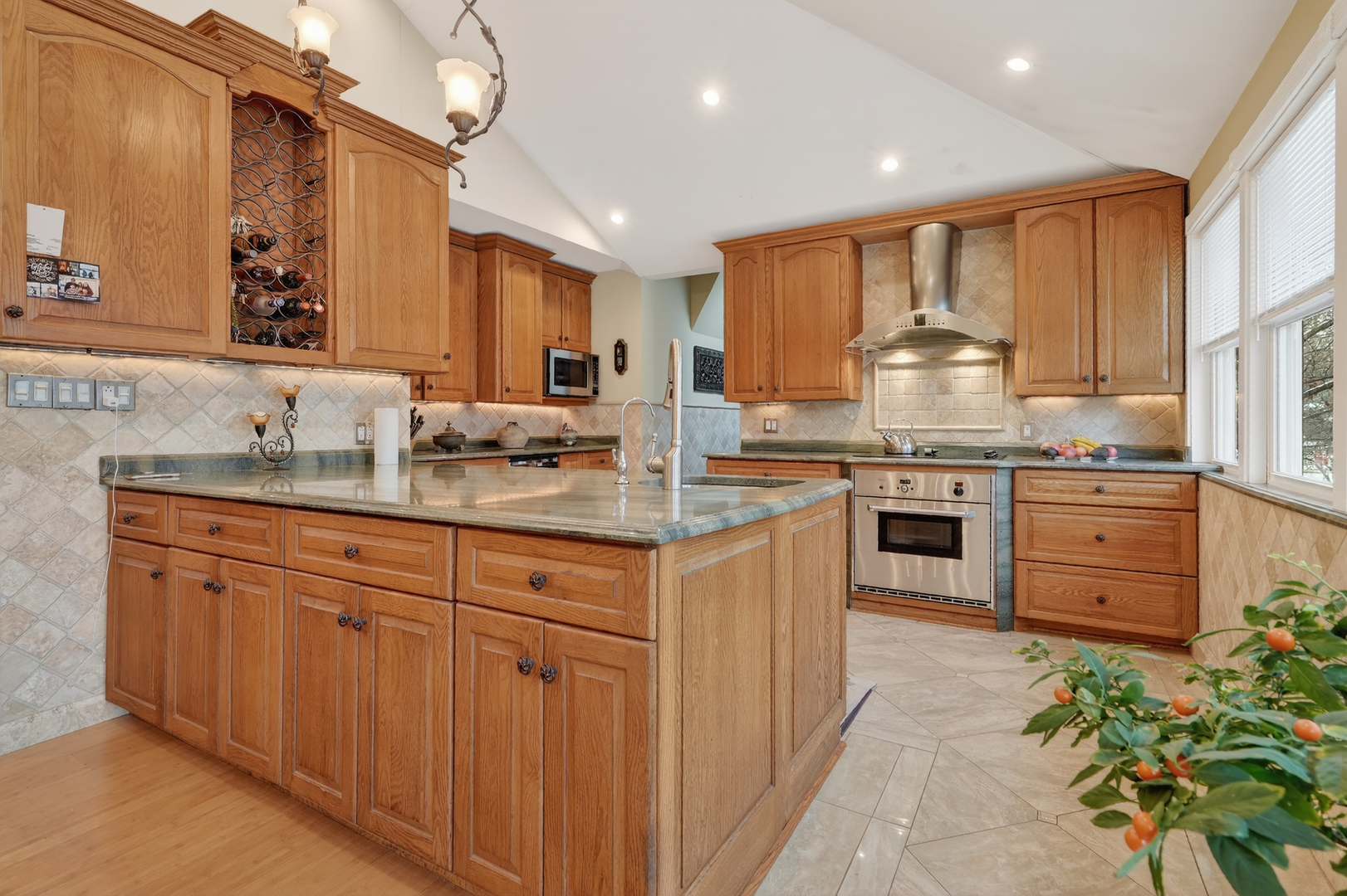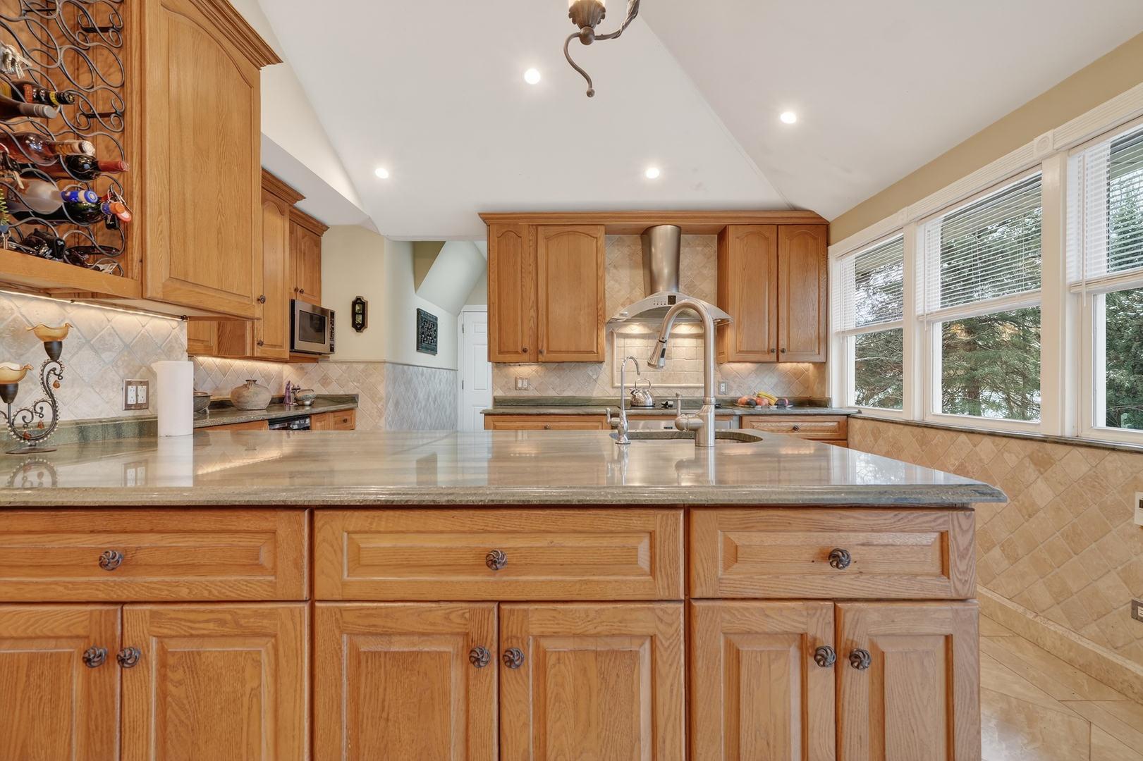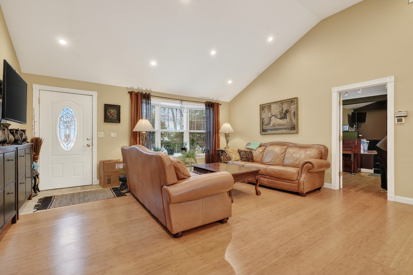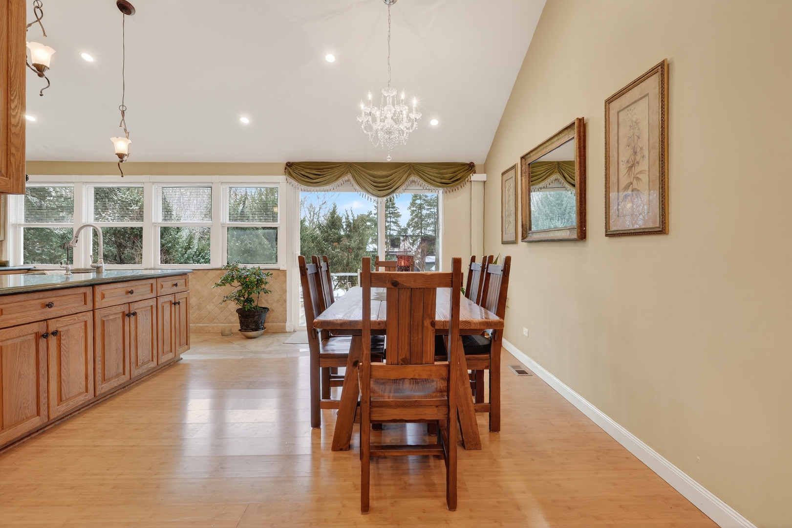 Welcome to this charming home on a 0.64 acre lot. This home futures on open concept kitchen with a breakfast bar. The kitchen has granite countertops, backsplash and SS appliances. Living room, dining room and kitchen has vaulted ceilings and access to a large deck which leads to enormous fenced yard perfect for gardening, outdoor relaxation and entertaining. The owner is using the garage as a storage space witch can be converted back. Additional parking in the driveway or on the side. Great location close to schools and shopping. This wonderful home is being sold as-is, Do not miss opportunity to make this home yours!