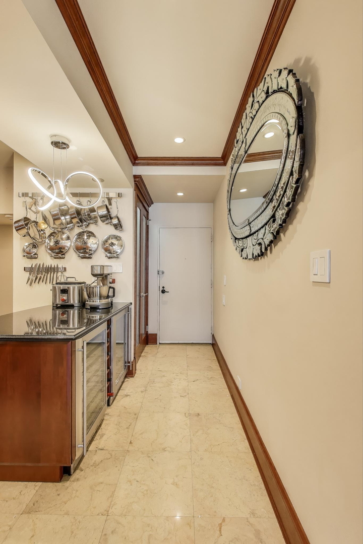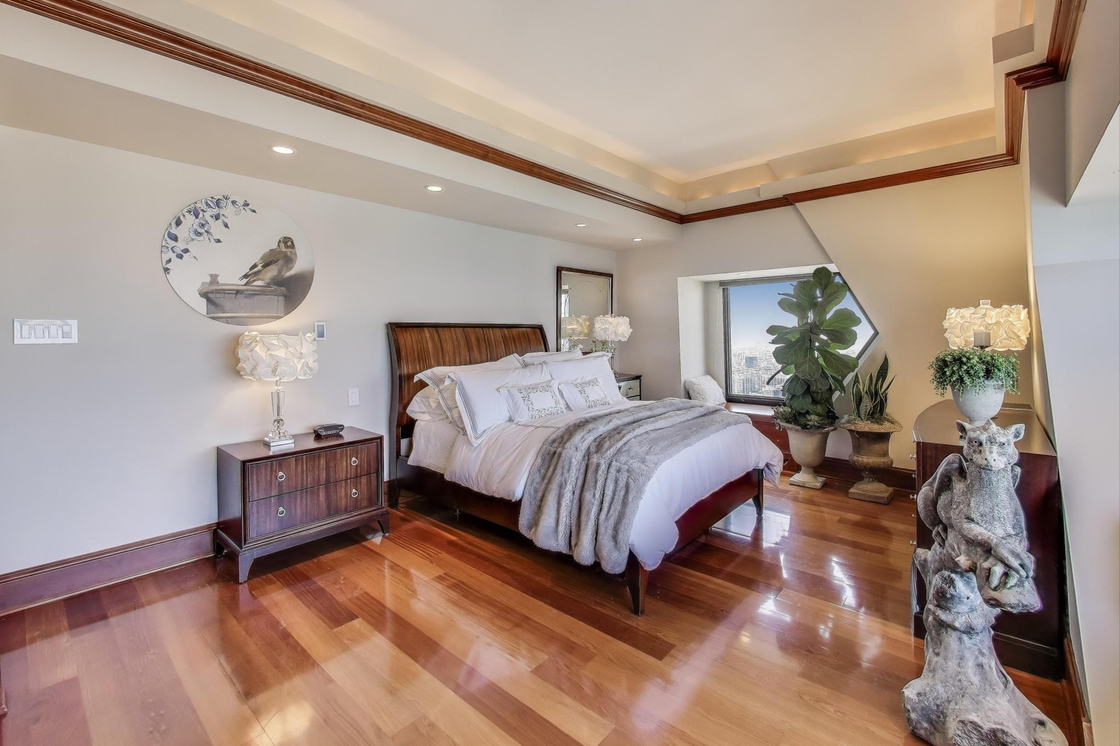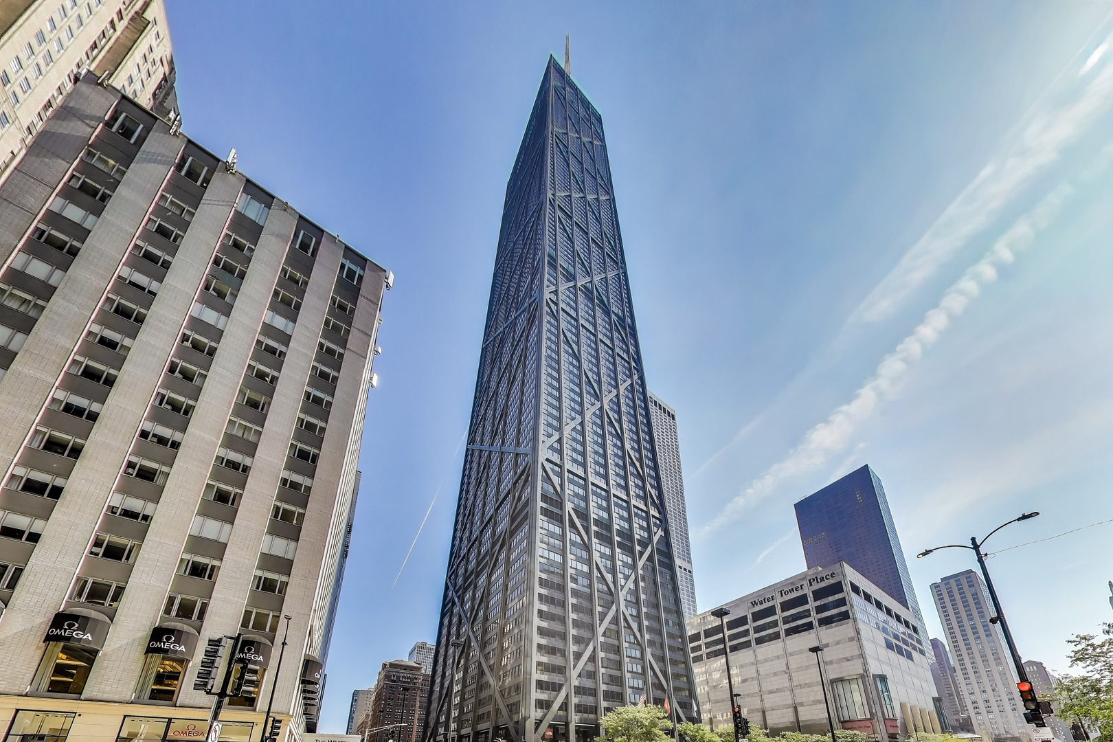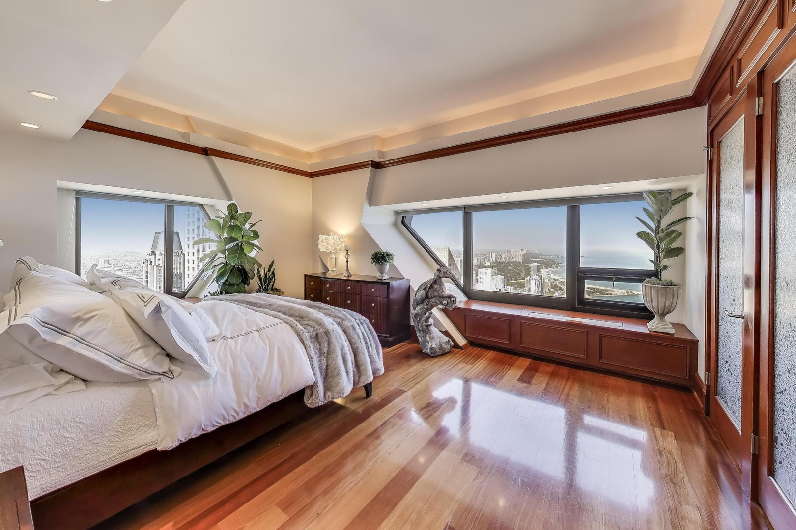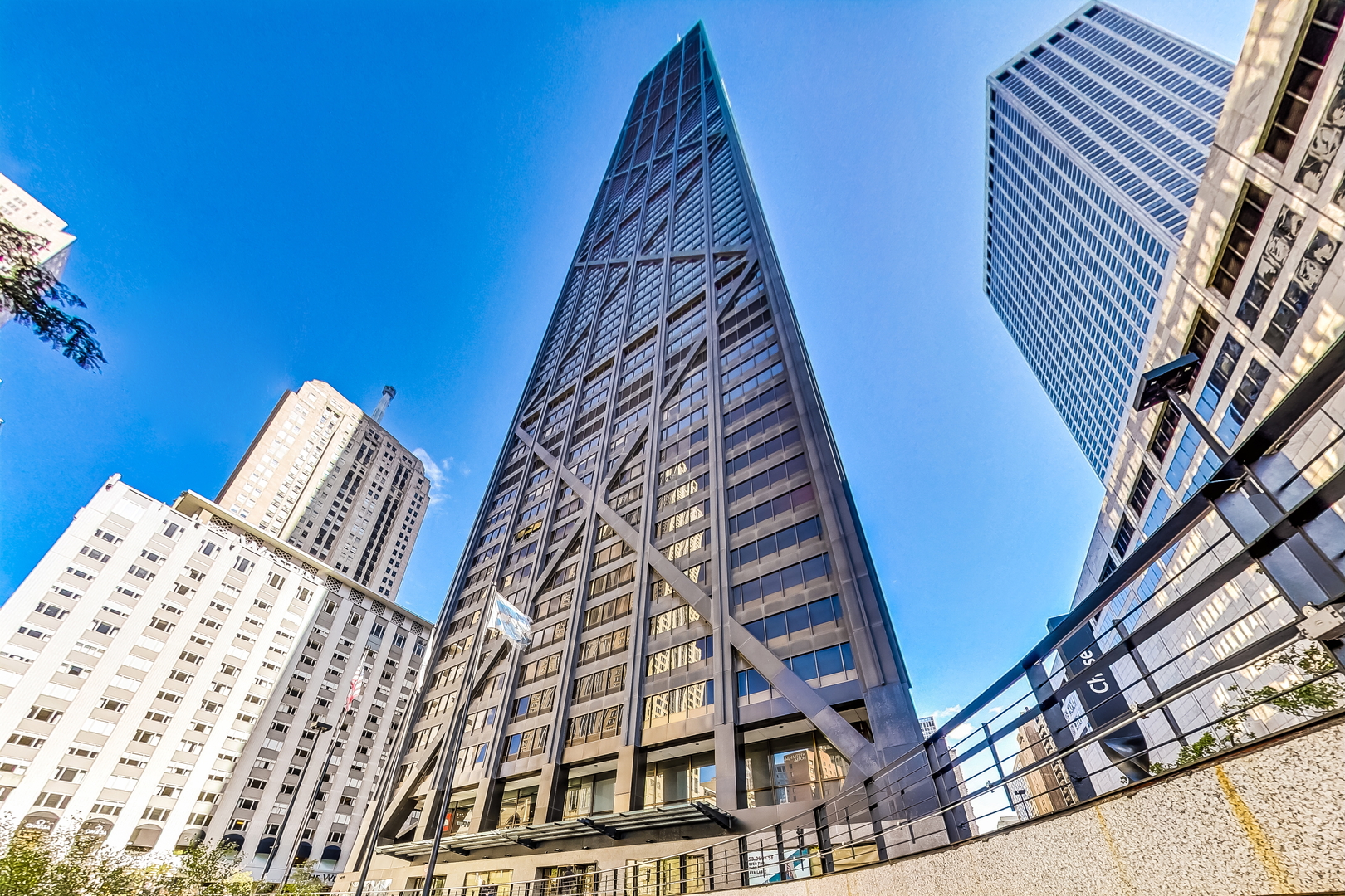 Luxury Elevated! – 55th Floor Corner Residence at the John Hancock private residences with Iconic Chicago city Views! Marvel on the spectacular, unobstructed city and north Lake Michigan views and sunsets from the tall 10′ windows with dazzling cityscapes from the living room and both bedrooms. This residence has been fully reimagined with high-end finishes throughout including wood and stone flooring, paired with custom millwork, creating a warm yet sophisticated ambiance. The luxurious stone bathrooms include heated floors, a spa-quality steam shower in the primary suite, and a whirlpool tub in the guest bath. The chef-inspired kitchen is perfect for home entertaining, boasting top-of-the-line appliances including Sub-Zero, Miele, and Wolf (induction cooktop and double oven), along with fitted wine and beverage coolers and a pantry room storage . Floor-to-ceiling custom cabinetry, recessed lighting , granite counters, a breakfast bar with modern pendants, and designer sconces complete this entertainer’s dream kitchen. The versatile guest bedroom doubles as a den, hobby room or office, featuring a custom millwork hidden Murphy bed that allows the space to transform with ease. Custom closets and window storage too. Located just steps from the Magnificent Mile’s premier shopping and dining, the lakefront pathway, and a short walk to Oak Street Beach, this home offers both luxury and convenience. The Hancock private residences provide unmatched amenities: 24-hour door staff, on-site engineer, state-of-the-art fitness center, indoor pool, Potash grocery store, and dry cleaner & receiving room -all within the building – no need to leave ! A truly must-see residence for those seeking elevated luxury living at one of Chicago’s most iconic addresses.