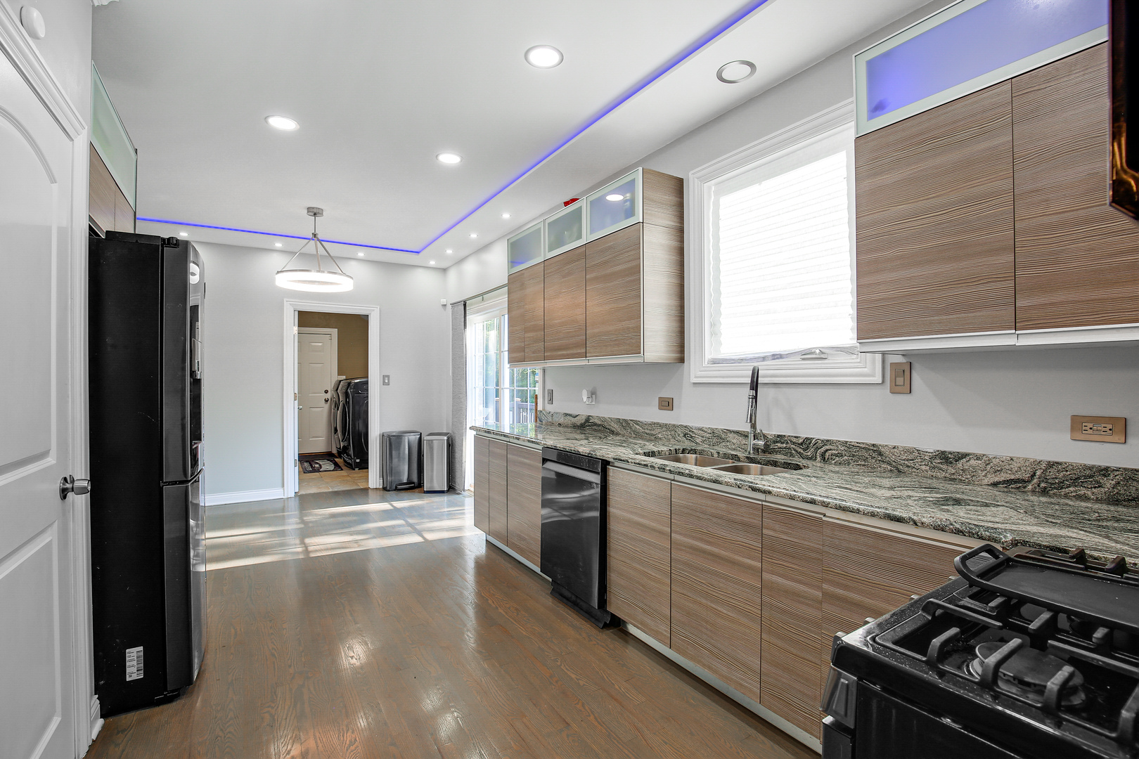 Welcome to your dream home where timeless elegance meets modern sophistication located in sought after Homewood-Flossmoor School District.. This beautifully updated 4-bedroom, 3.5-bathroom residence offers the perfect balance of luxury, comfort, and functionality. Gleaming hardwood floors flow throughout the main level, seamlessly connecting the separate formal living and dining rooms with the heart of the home. The gourmet kitchen showcases exquisite granite countertops, custom soft-close wood cabinetry, and ample space for culinary creations. The primary suite is a true retreat, featuring a serene sitting room with sauna (negotiable), an expansive walk-in closet, and a spa-inspired bathroom adorned with custom granite stone porcelain, a steam shower, and a jacuzzi tub designed for ultimate relaxation. The fully finished basement extends the living space, complete with recessed lighting and a premium custom speaker system-perfect for entertaining. Additional speakers are thoughtfully installed on the second floor, ensuring exceptional sound throughout. Step outside to your private oasis: a newly renovated 3-tier deck (2025), a fenced backyard ideal for gatherings, and a brand-new concrete expanded driveway with space for up to 4 vehicles. Additional upgrades include an RV charging port in the garage and a new roof (2025), offering peace of mind for years to come. From its luxurious finishes to its thoughtful modern amenities, this home is designed to impress. A true dream come true-ready to welcome you home.