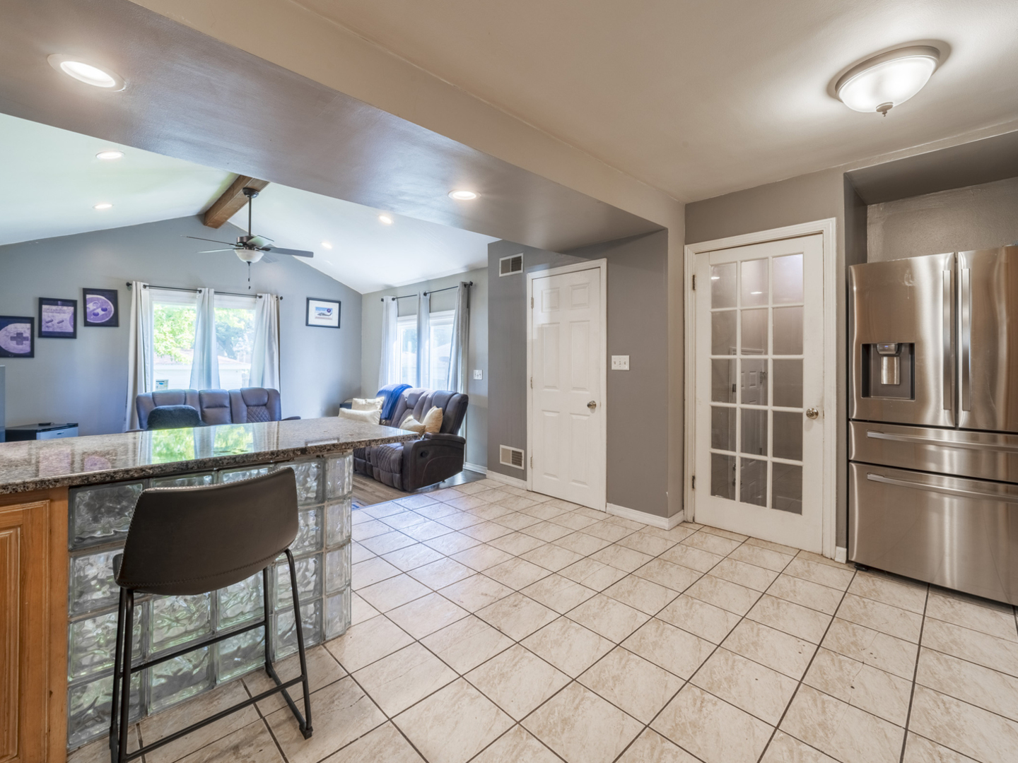 Beautifully updated and well-kept, this charming Lansing bungalow is move-in ready and filled with thoughtful upgrades. Step inside to discover a spacious layout featuring a large recreation room with soaring vaulted, wood-beamed ceilings and sliding glass doors that open to a covered patio and fenced backyard-perfect for entertaining or relaxing year-round. The remodeled kitchen is a true highlight, showcasing granite countertops, abundant cabinetry, a breakfast bar, and new stainless steel stove and refrigerator (2025). Enjoy peace of mind with modern updates including upgraded bathroom plumbing (2021), new electrical box (2021), water heater (2021), washer/dryer (2021), new ceiling fans in two bedrooms (2021), and new windows in much of the home (2022). The finished basement offers even more living space, complete with a rec room ideal for a TV room or home office, plus two additional rooms that were previously used as bedrooms. You’ll also appreciate the plentiful storage and detached garage with alley access. Roof is approximately 8 years old.The location is another standout feature-just minutes from Lansing’s Main Park with walking trails, sports fields, a dog park, playgrounds, and community events, including fireworks. Enjoy the convenience of downtown Lansing’s shops and restaurants, local schools, and nearby Lansing Public Library. Commuters will love the easy access to I-94 and I-80/294, making travel to Chicago or Northwest Indiana quick and convenient. This home combines modern updates, flexible living space, and a sought-after location-truly the total package! Ask about this home’s assumable mortgage rate of 3.37%.