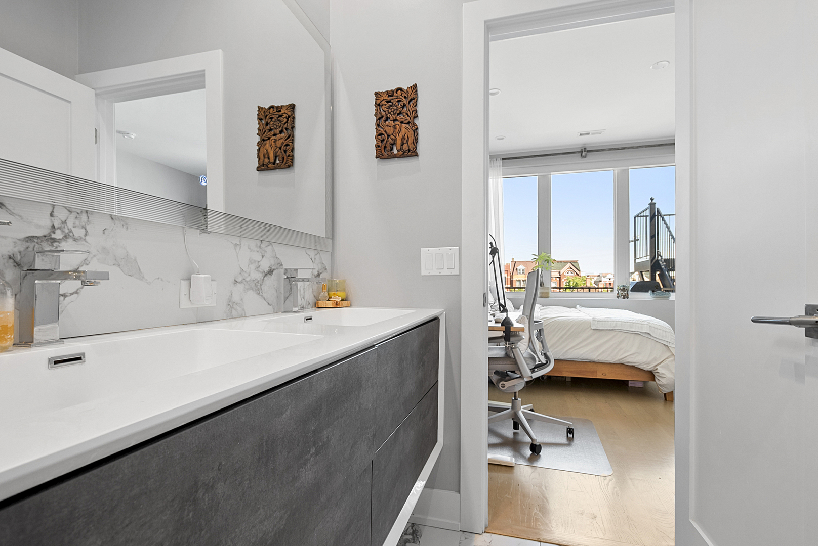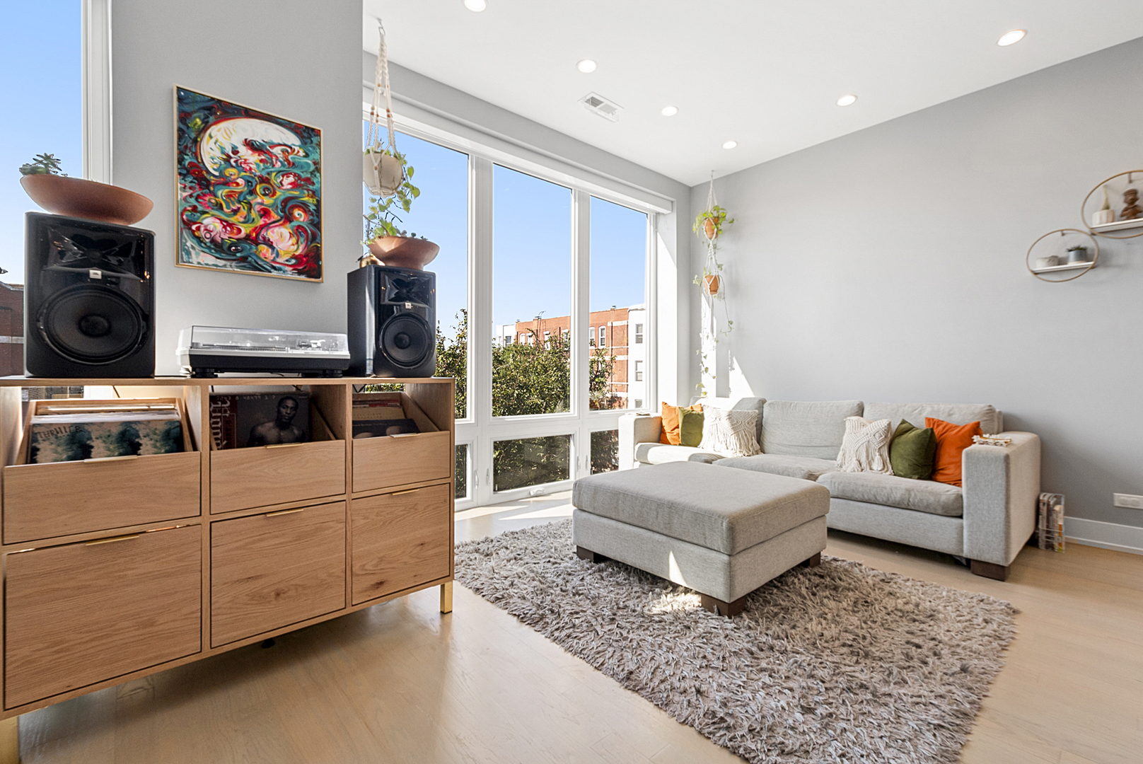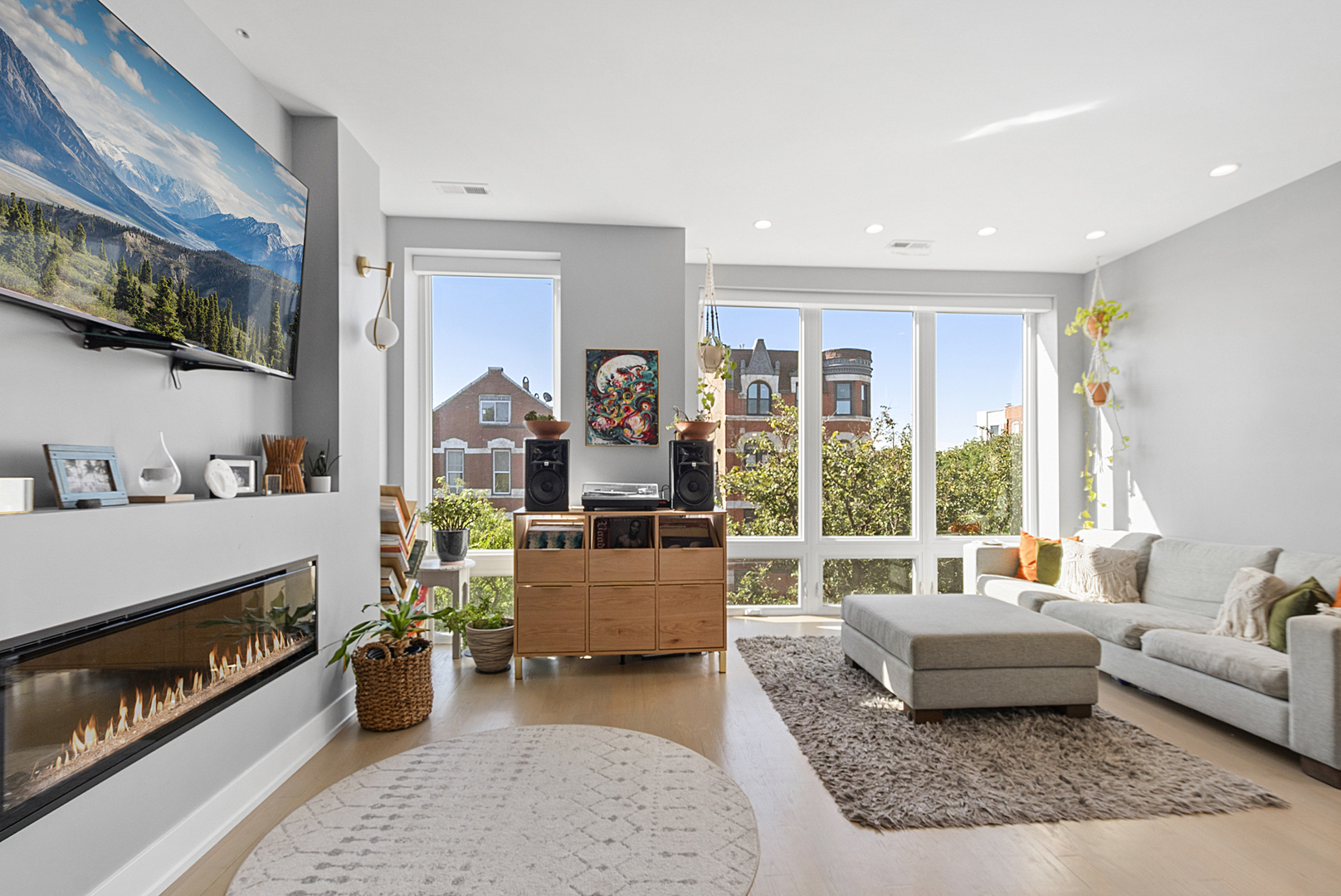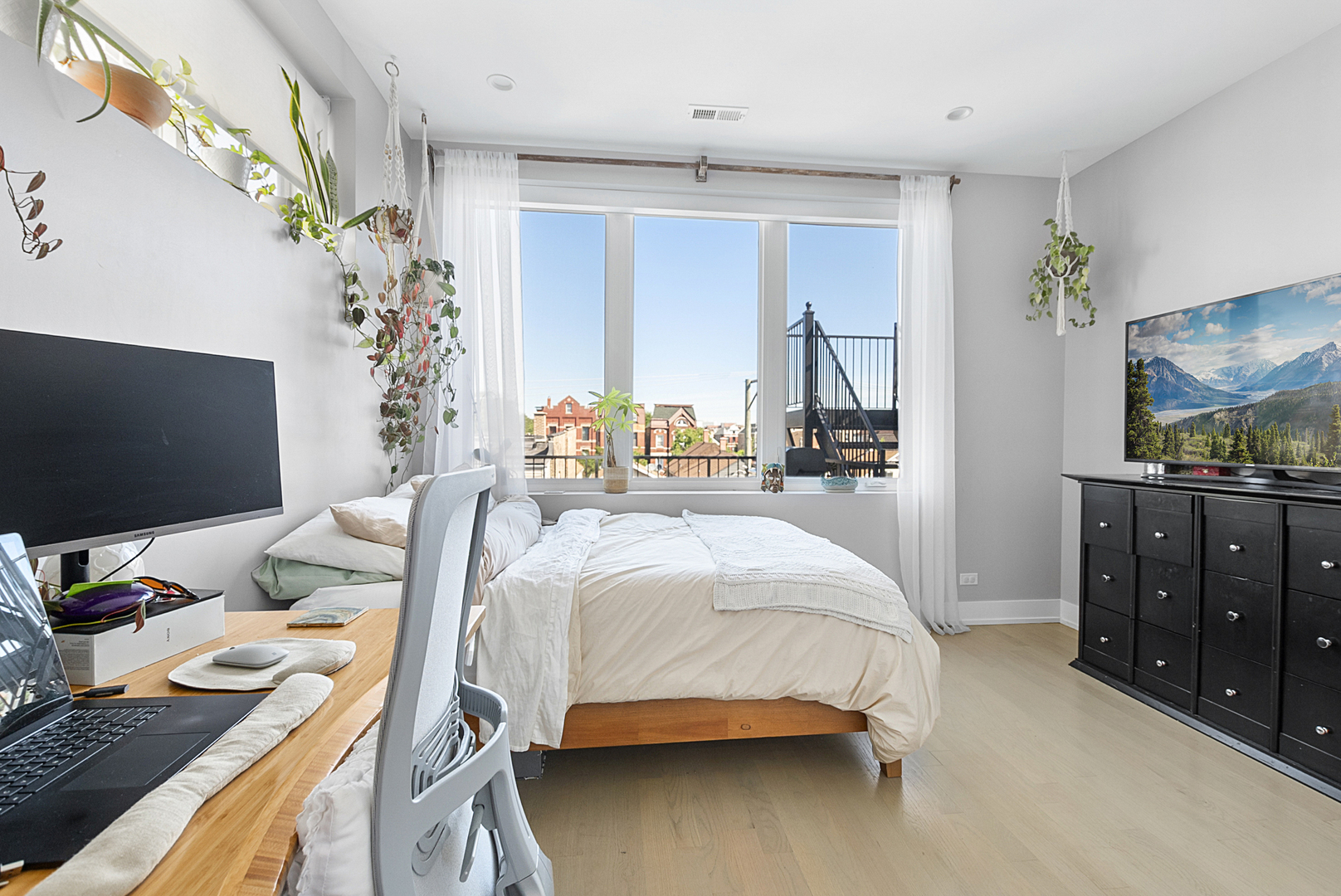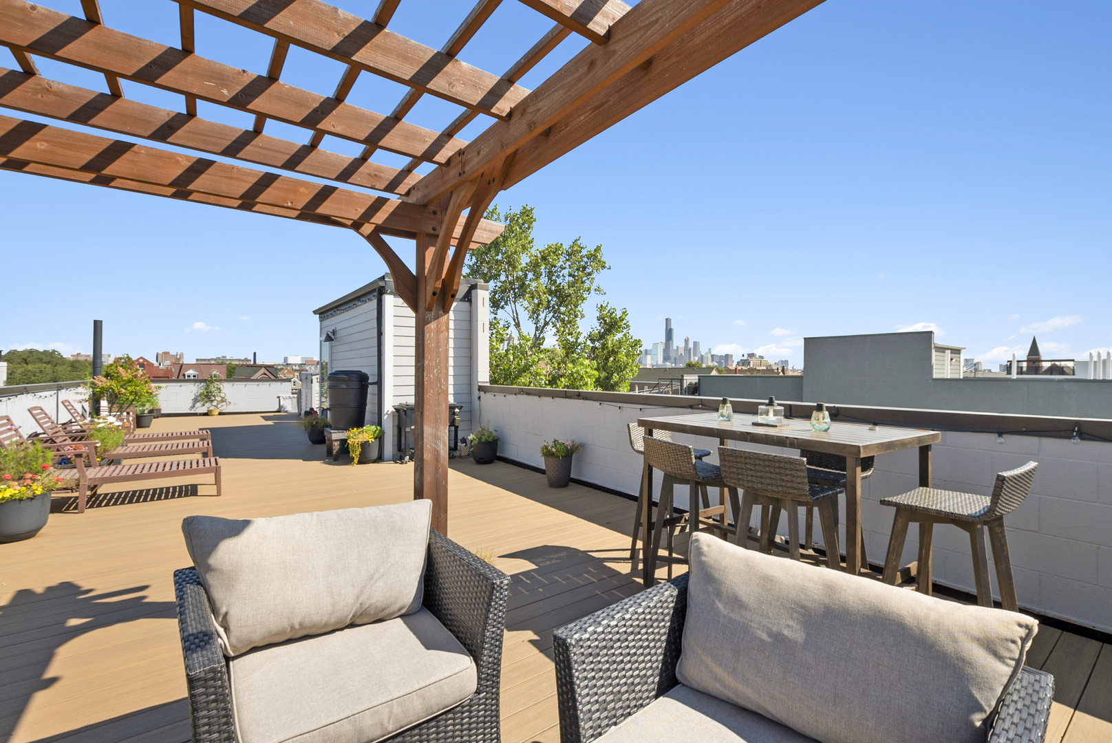 Welcome to 1756 W. Cullerton Street, an exquisite 2 bedroom, 2 bath penthouse condo located in Chicago’s beloved Pilsen neighborhood. Originally constructed in 2020, this third floor unit features top of the line luxury finishes throughout over 1,250 square feet of smartly-designed living space. The modern kitchen and living area are spacious and inviting, with an idyllic Southern exposure providing consistent natural sunlight and warmth throughout the day. The beautiful floor to ceiling windows not only illuminate the space with natural light, but are also outfitted with custom remote-operated shades for easy control and privacy. The built-in electric fireplace sets the vibe with a simple click of a button, the perfect way to elevate the atmosphere while entertaining or simply cozying up on a chilly night. The kitchen is a culinary dream, featuring gorgeous flat-panel cabinetry and quartz countertops, custom tile backsplash, under-cabinet lighting, high-end stainless steel appliances, and peninsula. If desired, the main living area is spacious enough for a dedicated dining area/banquette for additional seating. Beautiful hardwood floors flow from the living room and kitchen down the hallway leading to the 2nd bedroom, an elegant full guest bath, and finally to the primary suite, featuring a walk-in closet and spa-like bath with a dual vanity and marble walk-in shower with rain shower head. Through the rear exit of the unit is a lovely deck perfect for stepping out to enjoy your morning coffee, one of two private outdoor spaces. The very best is saved for last as you travel up to your stunning, private rooftop terrace, the ultimate outdoor retreat for year-round enjoyment. No detail was spared in the creation of this urban oasis, complete with maintenance free Timber Tech composite flooring, a Pergola to relax under, and generous space for gardening, outdoor dining and entertaining, all while taking in sweeping skyline views. Additional notable features/improvements include: 4 inch recessed lighting, touch sensor dimmer lights, touch sensor mirror lighting in bathrooms, spray foam insulation for sound proofing, video intercom, private storage room, tankless water heater, new storm doors, secure entries in both front and rear with faab and code access, all new exterior lighting, and newly painted/finished front and rear stairwell gates. Take in all that the culturally vibrant Pilsen community has to offer, from the collection of dozens of brilliant public murals and The Mexican Museum Of Art, to the celebrated culinary scene with local favorites including Carnitas Uruapan, 5 Rabanitos, and Novel Pizza Cafe… all steps from your front door! Extremely commuter friendly location within minutes to public transportation (18th Street, Pink Line, I-55, I-90) and shopping (Aldi, Costco, Jewel). This unit checks every box… refined modernity coupled with comfort and function, creating a home that feels both curated and effortless. One of the best values in Pilsen!