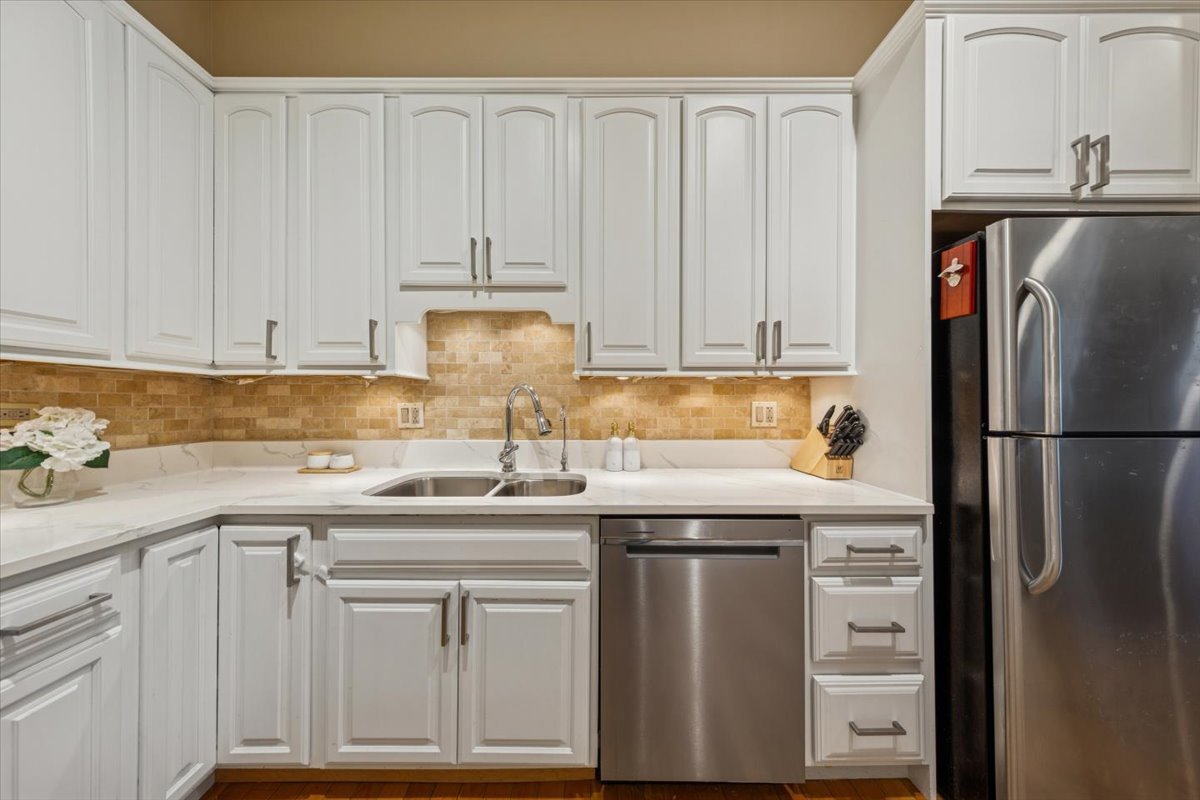 OFFERS RECEIVED – HIGHEST AND BEST DUE BY MONDAY 11/3 AT 3PM – NO ESCALATION CLAUSES Welcome to the heart of Chicago’s Old Town Triangle! This stylish 2 bed, 1.5 bath duplex-up has all the charm of a boutique building with the perks of modern updates-and yes, it even comes with a tandem 2-car parking spot. Step inside to soaring 10′ ceilings, hardwood floors, and big windows with leafy treetop views overlooking historic Wells St. Entertaining is easy with the open layout flowing from entry, to dining and living, to kitchen. The kitchen got a fresh facelift in 2021 with crisp white cabinets & quartz countertops The subway tile backsplash & new stainless steel dishwasher (2023) complete this lovely kitchen. A large entry closet, hardwood floors, a convenient main-level half bath, and the most exquisite exposed brick wall complete this fabulous main level. Upstairs, the large primary bedroom features that same stunning exposed brick, a walk-in California Closet, and an ornamental fireplace. A spa-like bath with double vanity, slate flooring, and a quartz-tiled shower WITH A SKYLIGHT sits just off the primary. The second bedroom is roomy as well with a great closet, exposed brick, and a window overlooking Wells. plus You’ll love the new in-unit washer/dryer (2023) and peace of mind with a newer furnace (2018). Skylights bring in tons of natural light throughout. When it’s time to kick back, head just out the door to the massive shared deck-perfect for grilling, hanging out, and summer nights under the stars. Add in a large storage cage and two partially covered tandem parking spots, and you’re set. Best of all? You’re right on Wells Street & steps from the lakefront, the zoo, farmers market, and everything Lincoln Park has to offer. City living doesn’t get better than this!