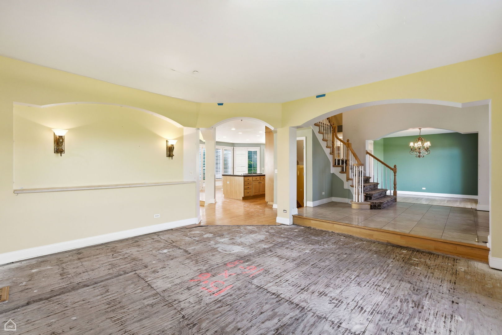This 4,030 SQFT Long Grove home has incredible potential and is awaiting your design ideas to revive it’s former grandeur. Enjoy sunrises every morning with beautiful views across 1.5 acres along with serene sounds of wildlife from the pond area. Guests are first welcomed into an inviting 2 story foyer with symmetrical coat closets and flanked by formal living/dining rooms with curved archways. The family room is sure impress with a handsome fireplace mantle which stretches up to the tall cathedral ceilings. Perfect panoramic views from the kitchen through wall-to-wall glass doors/windows. The first floor features a convenient laundry/mud room and an office that could easily be converted into a 5th bedroom with the adjacent full bathroom nearby. Up on the second floor, all 4 bedrooms feature trey/vaulted ceilings and access to a full bathroom. The master bedroom features a decorative alcove and magnificent trey ceiling with molding for ambient rope lighting. The master bathroom boasts a vaulted ceiling, dual walk-in closets with custom organizers, dual vanities, jetted bathtub, and a proper shower with 4 sprayers and built-in seat. The second bedroom is another en-suite with full private bathroom and the 3rd/4th bedroom share a Jack and Jill bathroom featuring another vaulted ceiling. The full English basement offers plenty of open space to accommodate your future dream plans including 8′ and 9′ ceilings, a roughed in bathroom and fireplace. High efficiency HVAC including 2 water heaters, 2 furnaces and 2 air conditioners. The updated composite roof is an expensive upgrade offering peace of mind for many, many years! Award winning schools in Kildeer Countryside School District #96 and Stevenson High School #125. Excellent location in the Country Club Meadows neighborhood just 1 block away from the recently renovated 408 acre Buffalo Creek Forest Preserve, 1 mile from IL-53 for commuting, and 2 miles from shopping at the Deer Park Town Center. The current HOA dues are $320 per year which may increase to $395 per year if the Flock cameras are approved by the village. The seller does not provide a survey or well/septic inspection. Tax proration 100%. Sold as is.