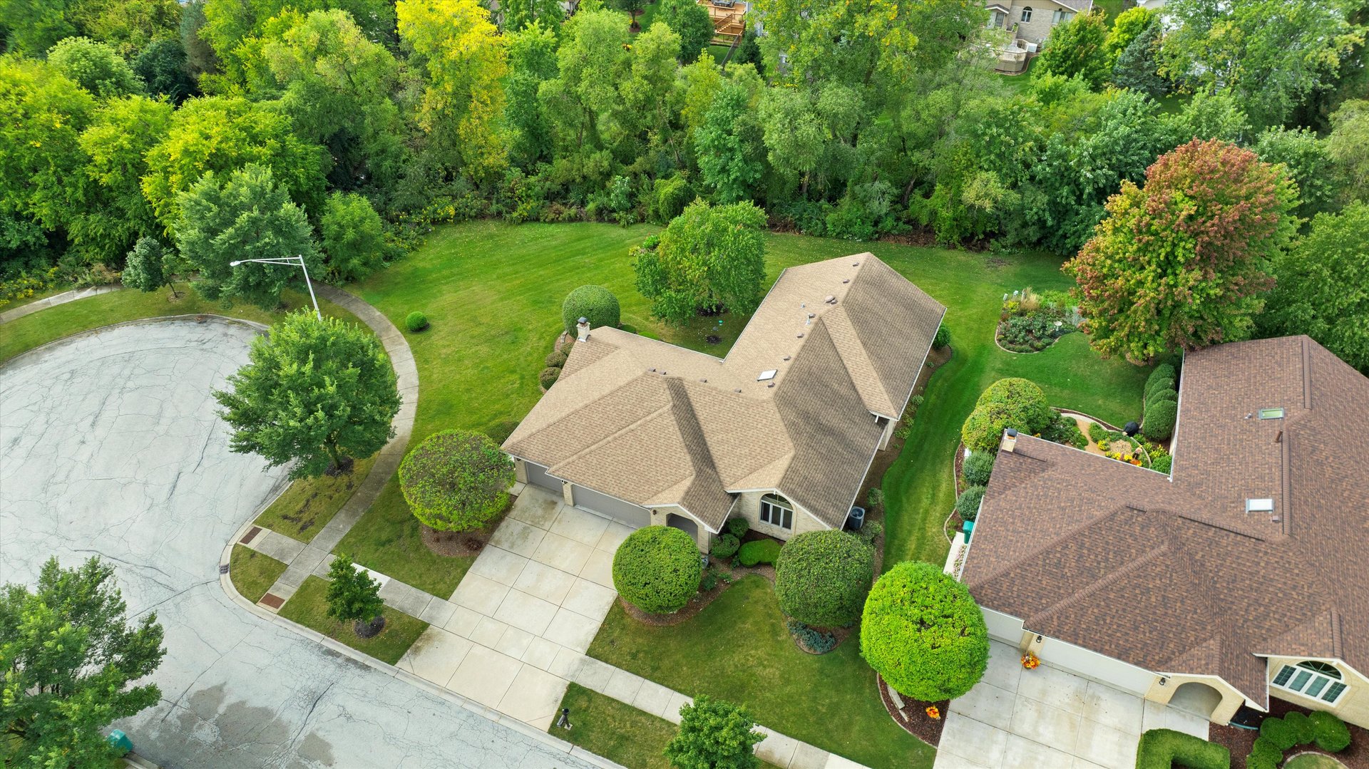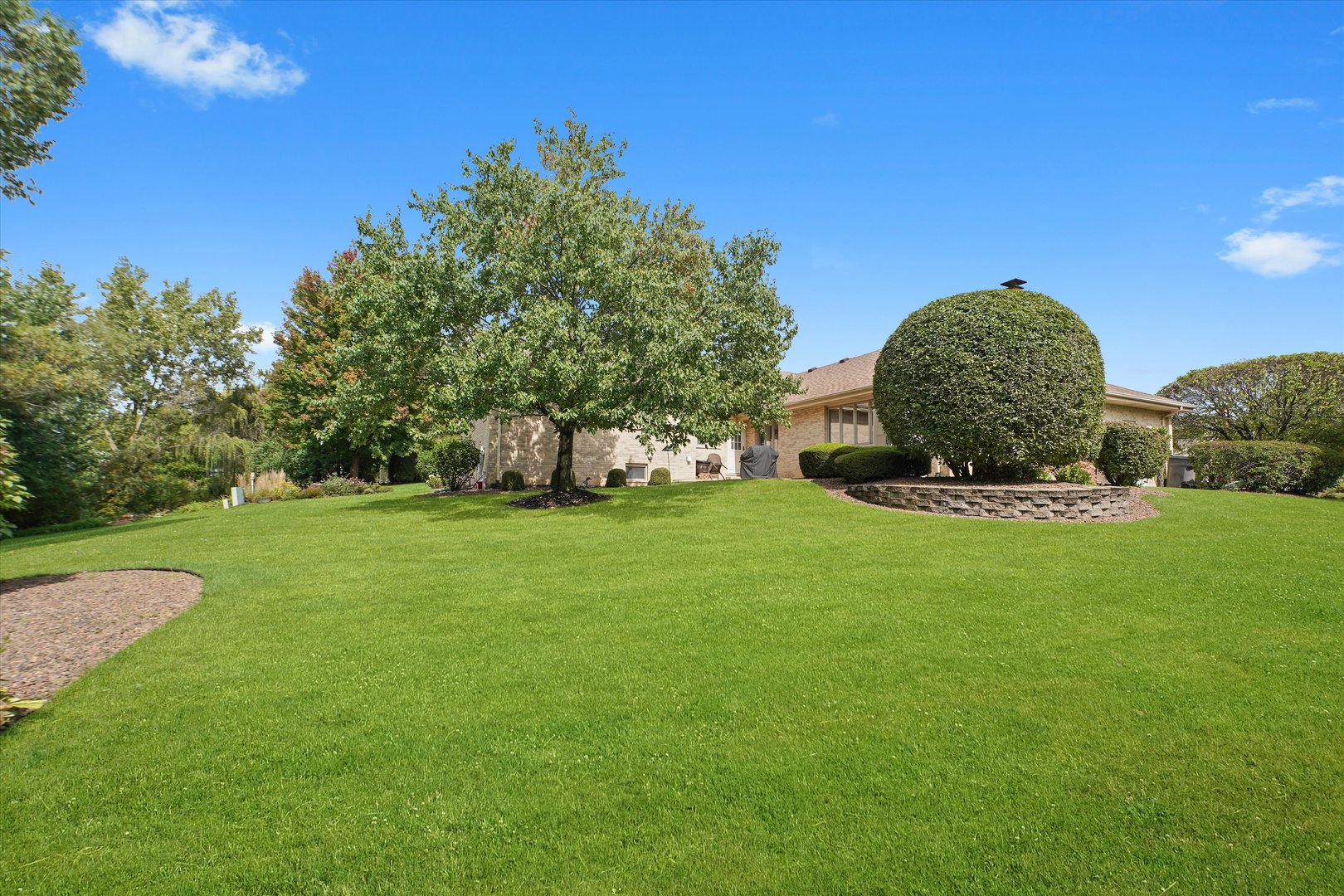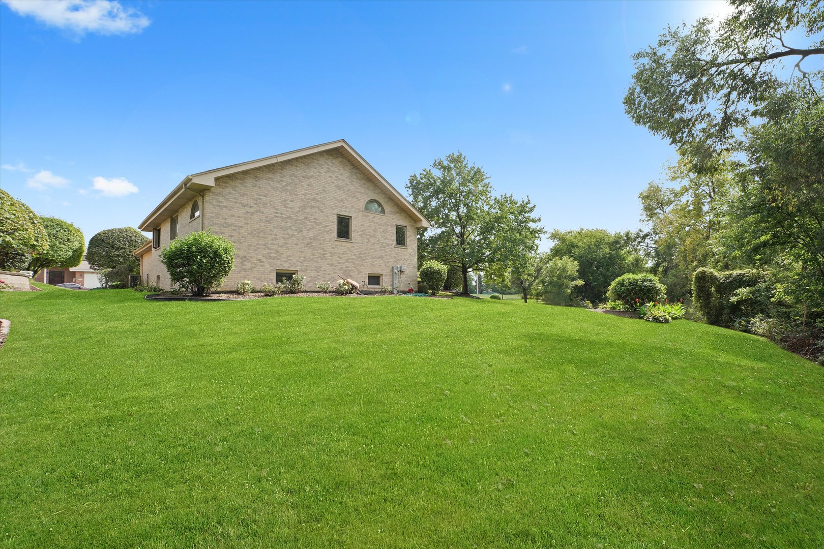 Quality Built All Face Brick 3-Step Ranch featuring 3 bedrooms, 2 1/2 baths, a finished basement, and a 3-car garage. The open-concept floor plan is perfect for entertaining! The master suite offers a vaulted ceiling, huge walk-in closet, and private bath with whirlpool tub and separate shower. The light-filled kitchen boasts raised panel cabinets, a center island, custom ceramic backsplash, built-in desk, and a large skylight-opening directly to the main-level family room. Peace of mind comes with the furnace & central air new in 2020 and a tear-off roof in 2012. All this is set at the end of a cul-de-sac with an open field and a private backyard!
