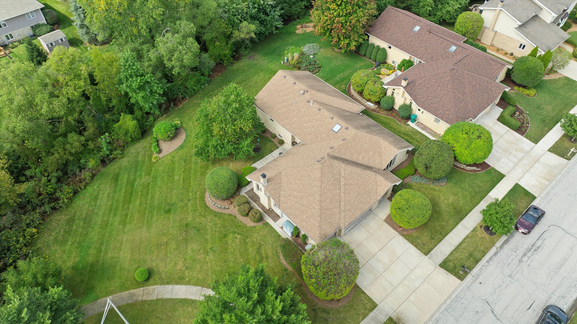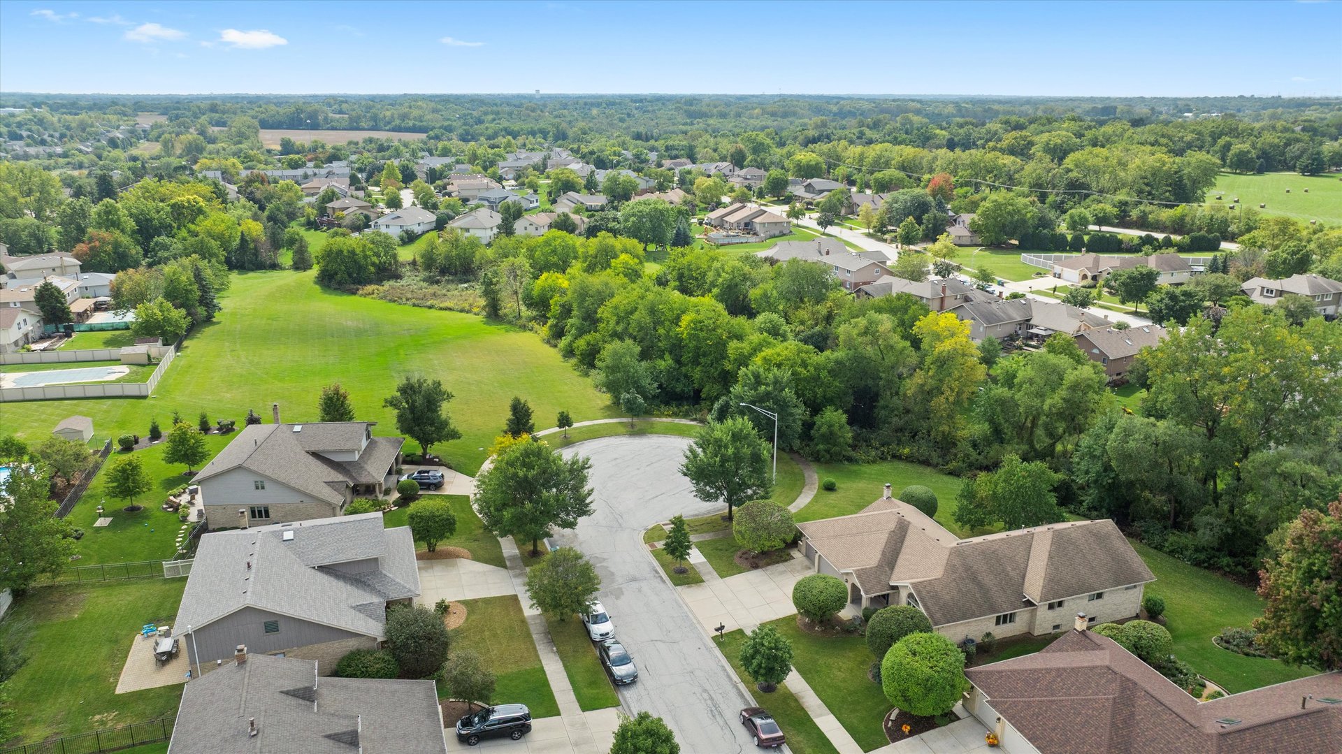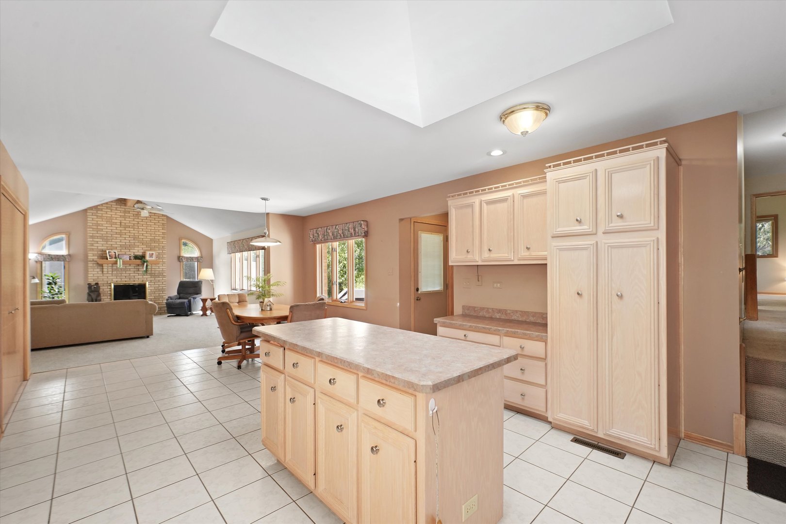 Quality Built All Face Brick 3-Step Ranch featuring 3 bedrooms, 2 1/2 baths, a finished basement, and a 3-car garage. The open-concept floor plan is perfect for entertaining! The master suite offers a vaulted ceiling, huge walk-in closet, and private bath with whirlpool tub and separate shower. The light-filled kitchen boasts raised panel cabinets, a center island, custom ceramic backsplash, built-in desk, and a large skylight-opening directly to the main-level family room. Peace of mind comes with the furnace & central air new in 2020 and a tear-off roof in 2012. All this is set at the end of a cul-de-sac with an open field and a private backyard!