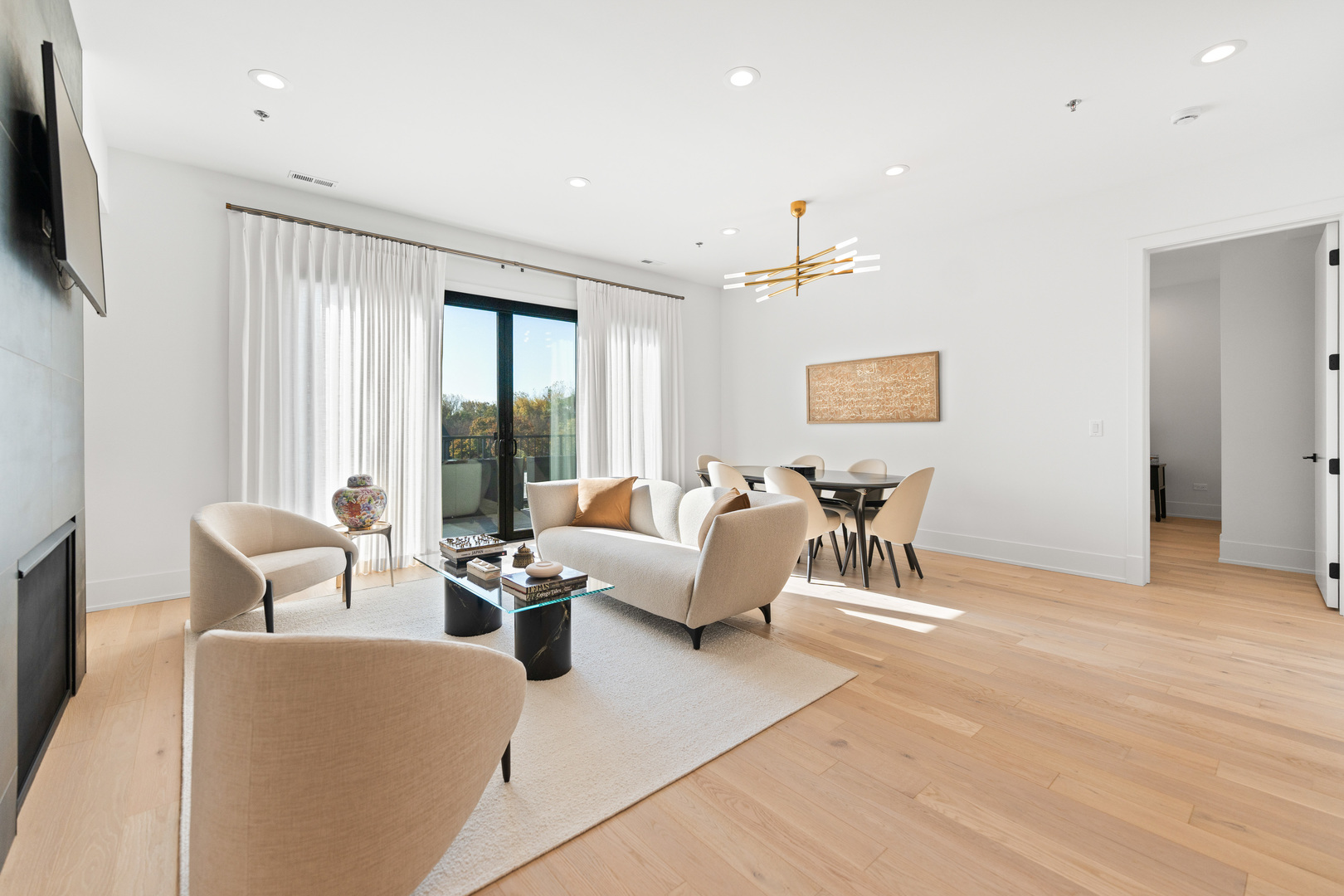 This gorgeous 3 bed, 2 bath Andersonville home offers the rare combination of new construction quality and meticulous owner improvements that elevate every detail. Built just over a year ago, the home has been maintained in pristine condition and thoughtfully customized with designer lighting from Visual Comfort and others, curated finishes, and timeless style throughout. The open-concept living and dining area features French white oak floors, 10-foot ceilings, a fireplace with custom built-ins, and a striking light fixture above the dining space. Floor-to-ceiling pleated drapery opens to a private balcony that fills the room with natural light. The chef’s kitchen showcases Calacatta quartz waterfall countertops, a custom tile backsplash, premium appliances, and a dramatic range hood with brass accents. The spacious primary suite includes an oversized walk-in closet with custom built-ins and a statement chandelier, along with a serene bath featuring heated floors, a stone steam shower with bench, a private water closet, and a double vanity. Down the hallway are two additional bedrooms, each offering generous closet space and access to a beautifully designed full bath with custom tile, modern fixtures, and a double vanity. Additional highlights include a large laundry room, an oversized storage room, a separate kitchen pantry, and a coat closet. Heated attached garage parking and an additional storage cage complete the home. All in a boutique elevator building perfectly positioned on a quiet tree-lined street in a prime Andersonville location just steps from the new Metra station, Clark Street’s vibrant shops and restaurants, the lakefront, and more!