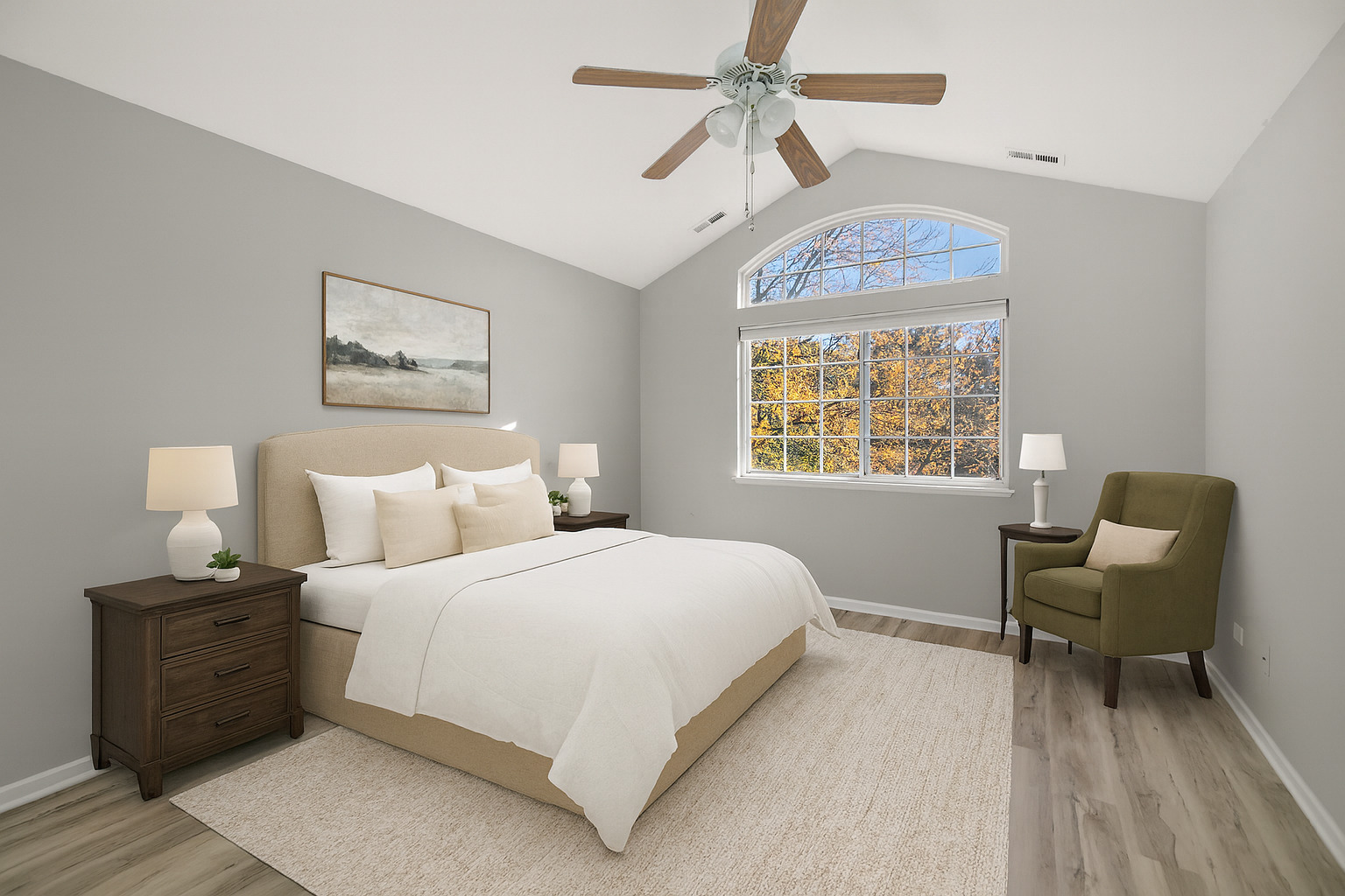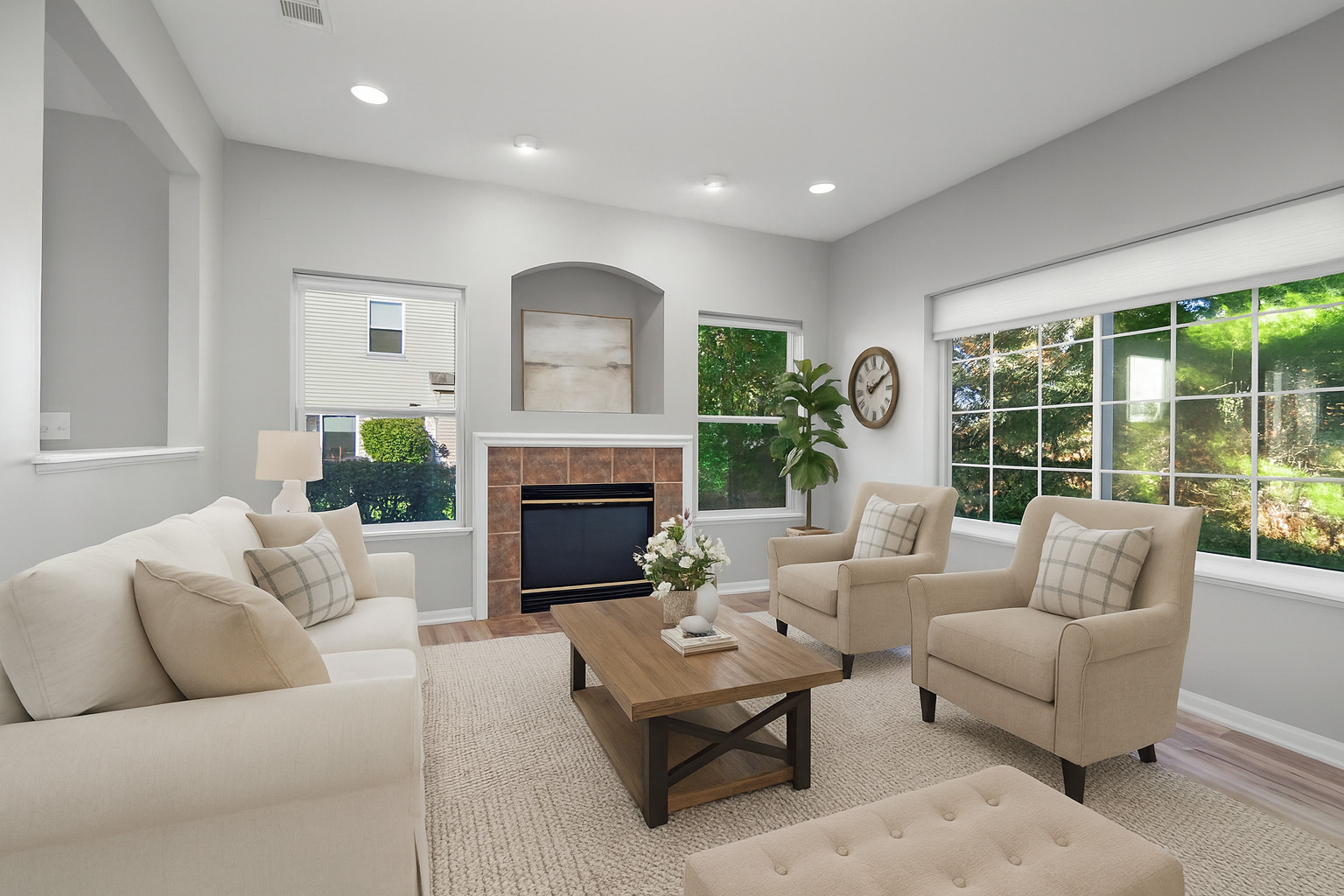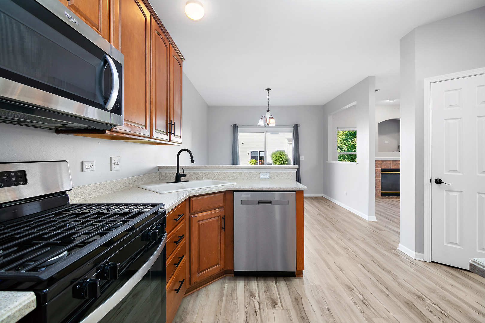 Welcome to this stylish and private end unit located in the highly desirable Willow Walk community! Step inside to discover vaulted ceilings and an abundance of natural light that enhance the open and airy feel of the main level. The spacious living room flows effortlessly into the family room, complete with a cozy fireplace-perfect for relaxing on cool evenings. The modern kitchen features beautiful cabinetry, granite countertops, a pantry, a convenient half bath, and an inviting dining area, creating the ideal space for entertaining or everyday living. Recent updates include fresh paint and new vinyl flooring throughout, adding a crisp and contemporary touch. Upstairs, you’ll find three spacious bedrooms and a second-floor laundry room for added convenience. The primary suite offers vaulted ceilings, a walk-in closet, and a private full bath for a true retreat experience. This townhome is perfectly situated next to a peaceful wooded area, offering beautiful views, enhanced privacy, and a serene natural backdrop rarely found in similar homes. Enjoy outdoor living on the large rear patio, perfect for morning coffee, gatherings, or summer barbecues. Completing this exceptional home is a two-car garage and a prime central location close to shopping, dining, and major highways.
